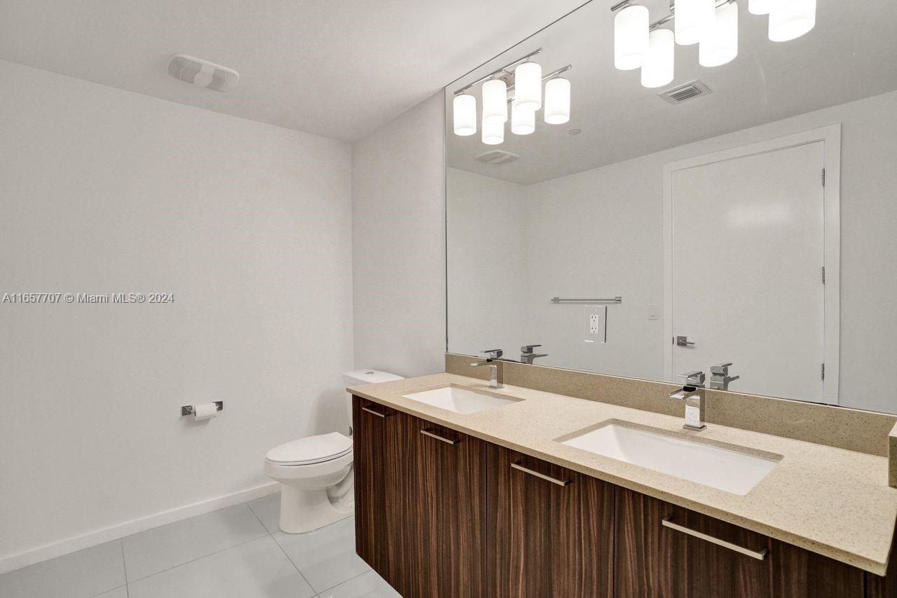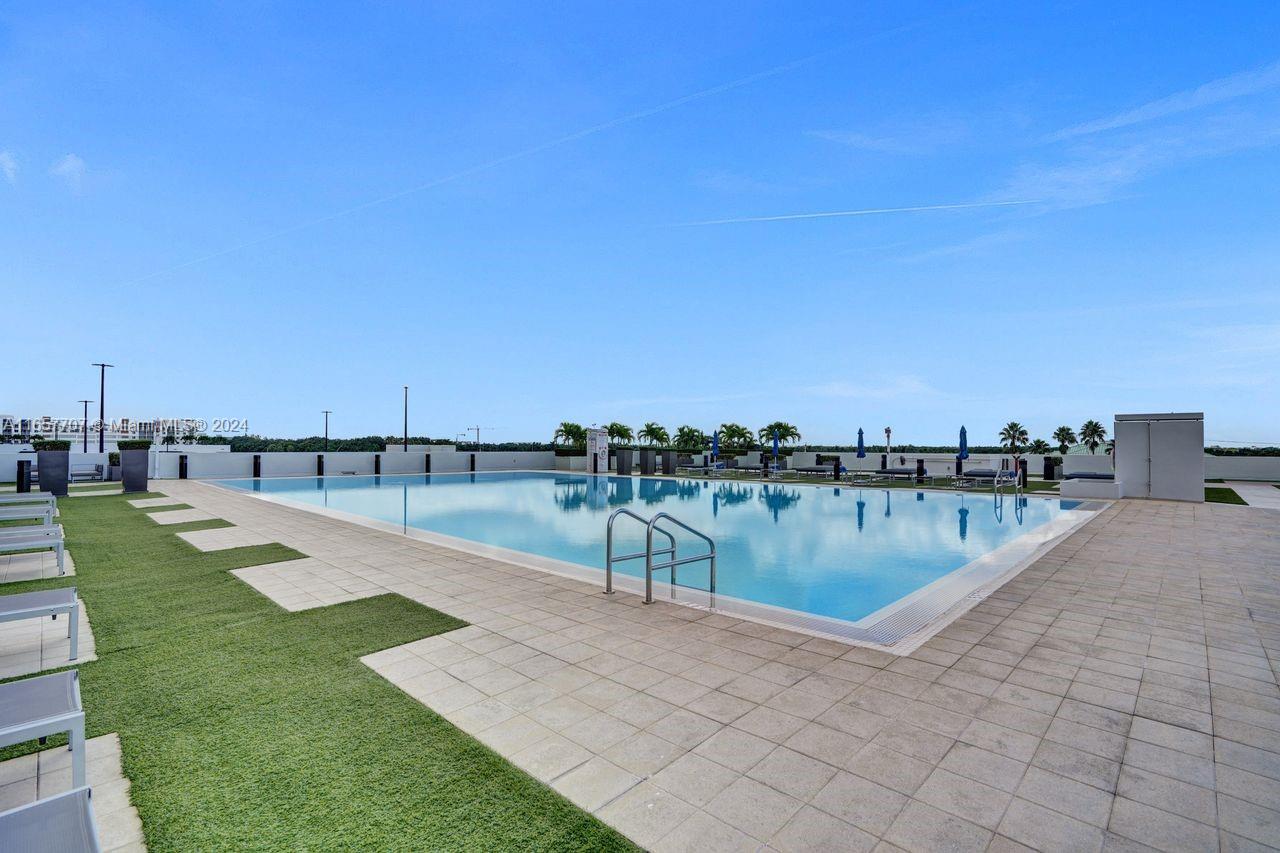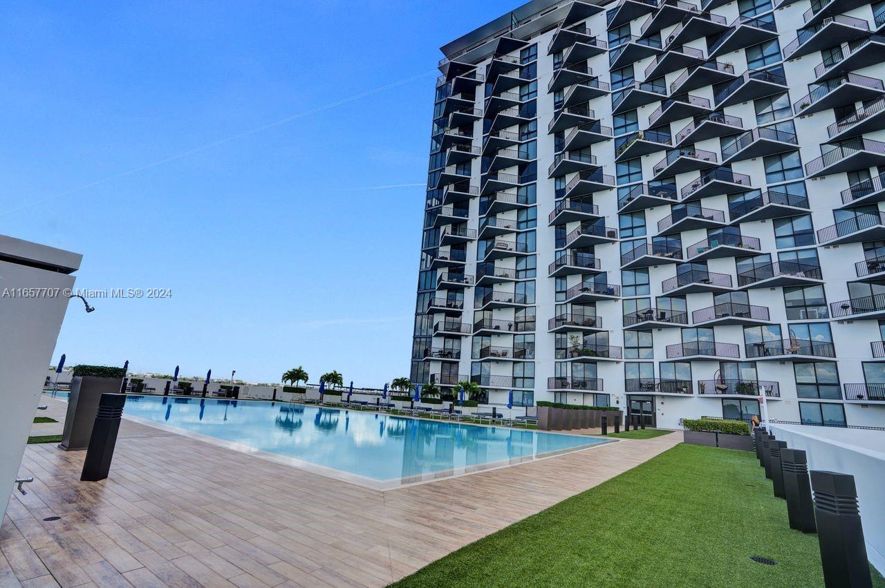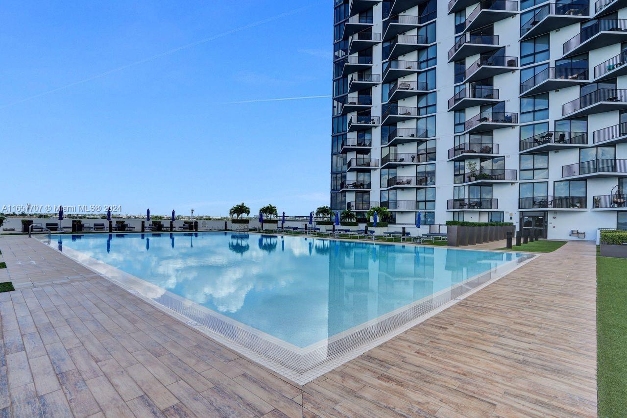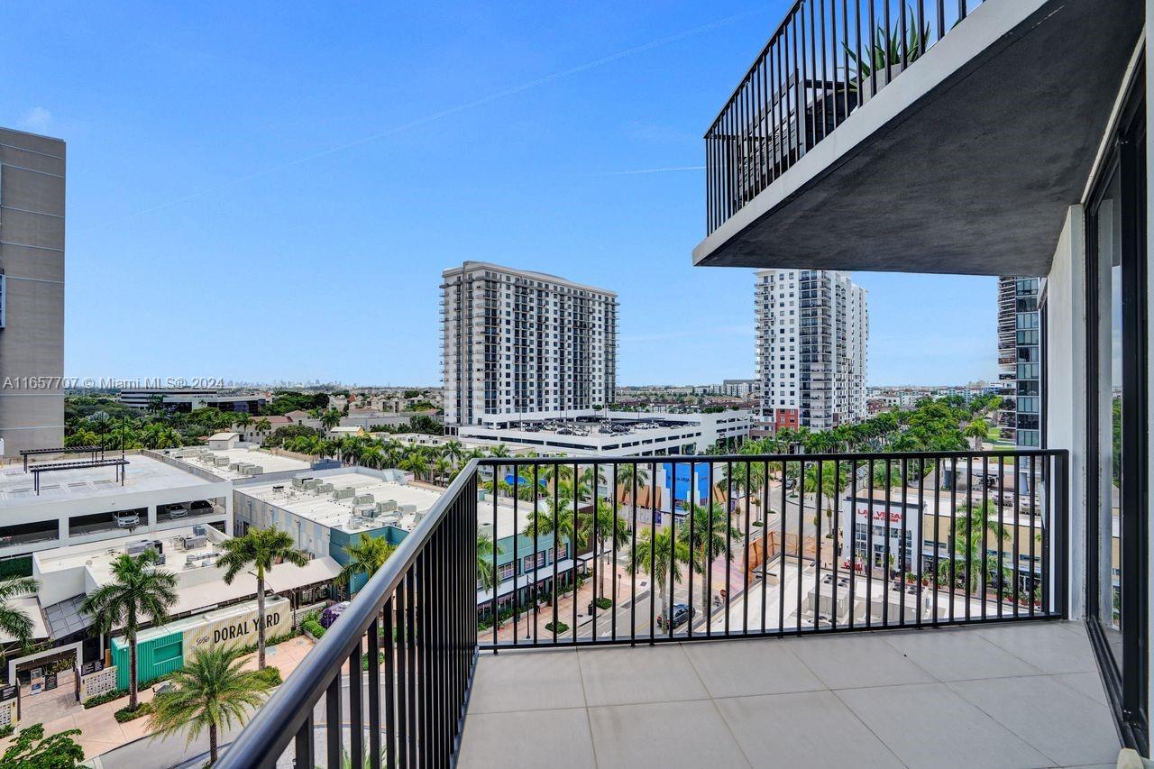 Elegant modern architectural style located in the heart of Downtown Doral offering panoramic views of the surrounding shops, beautiful landscaped of brand shops, exquisite restaurants, offices, modern condominiums, picturesque park. This amazing corner unit condo features 2 bedroom, 2 bath, great amenities in the building, resort-style outdoor pool deck with lounge daybeds and cabanas. Out-of-the-art fitness facilities, a yoga room, on site massage rooms and sauna. Also the building provides for a children's play area, 24hrs security, high speed internet in common areas and much more!! 1 parking assigned plus valet service 24 hrs.