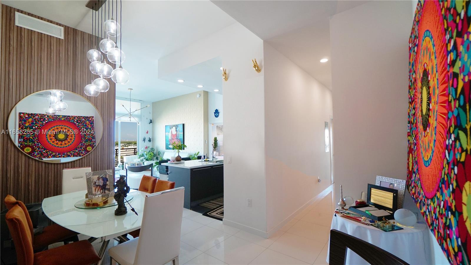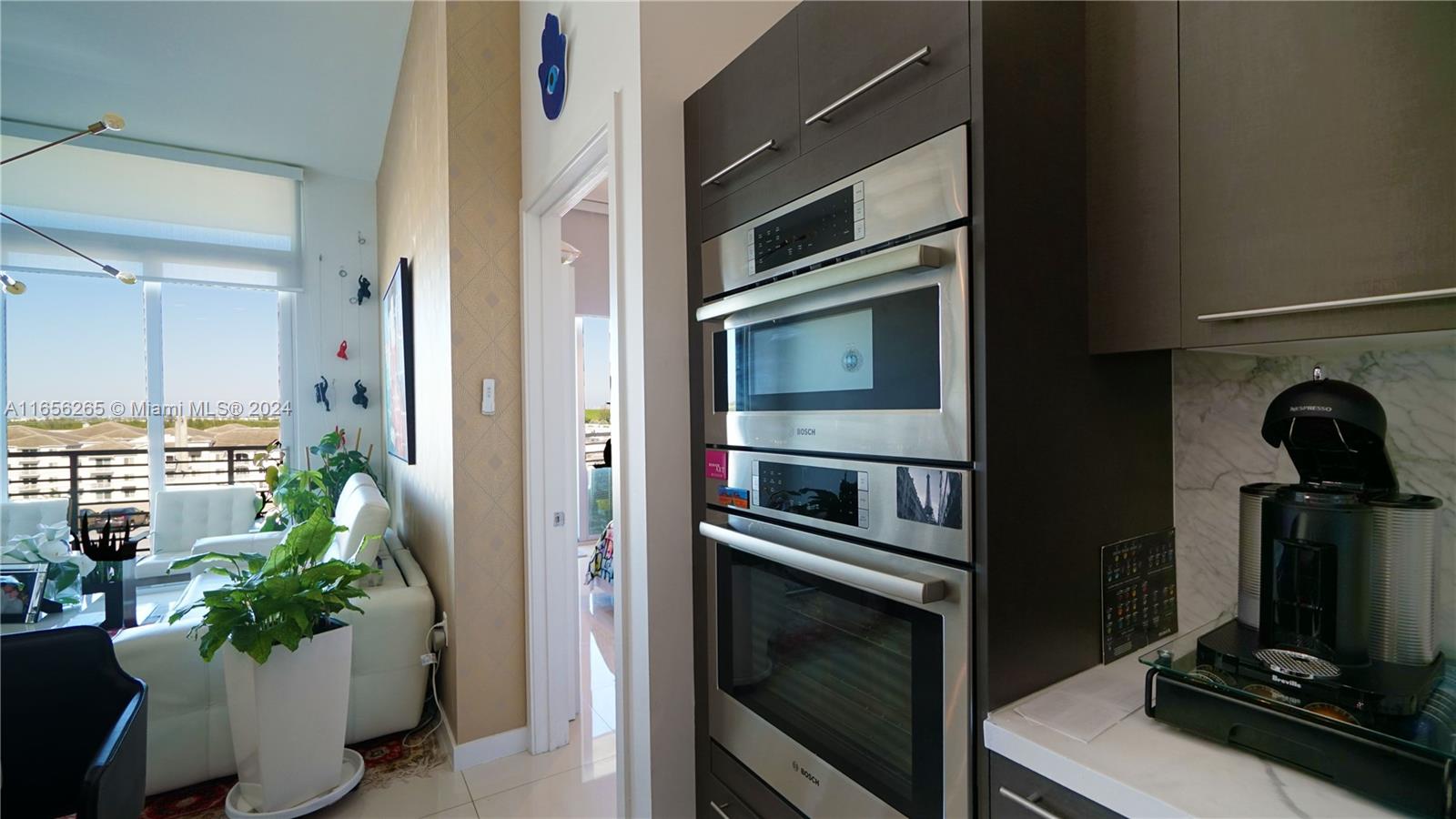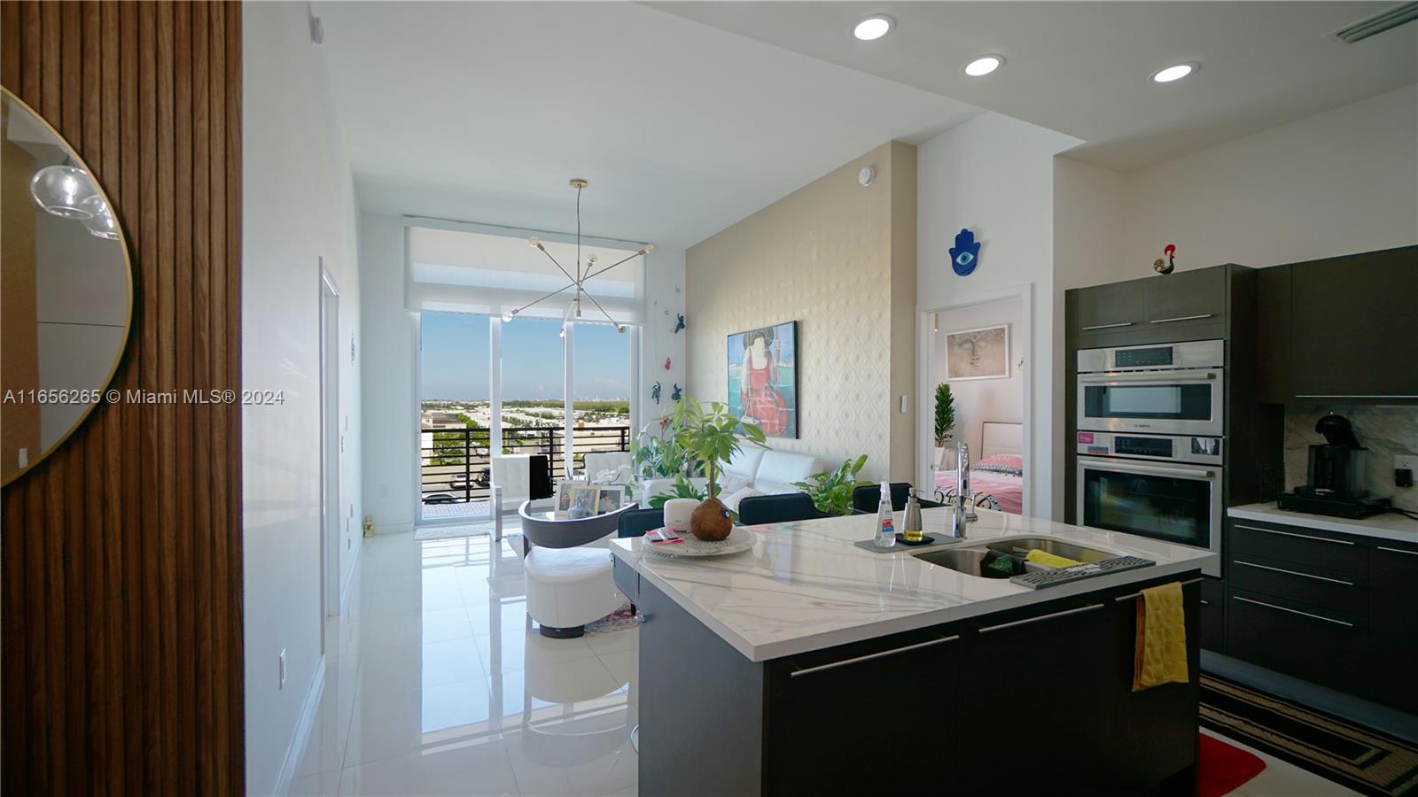 Enjoy living in this sophisticated corner unit in Midtown Doral, features tile floors, a renovated open kitchen with SS Bosch appliances, epoxy countertops and Carrara backsplash.3 bedrooms with 3 complete bathrooms. High ceilings,full of light, impact resistant windows, full of closets. Large and wide balcony ideal for family gatherings and friends. This is a modern mixed-use complex with restaurants, gym, supermarkets, etc. The unit has automatic blinds, smart home. Top floor so there's no neighbor above. 2 assigned parking . Espectacular Club house will be ready this month will include gym, pilate , spa , ballroom, pool ,etc. Easy access to freeways, Dolphin and Palmetto, very close to parks, restaurants, entertainment and shopping centers. A-rated schools.