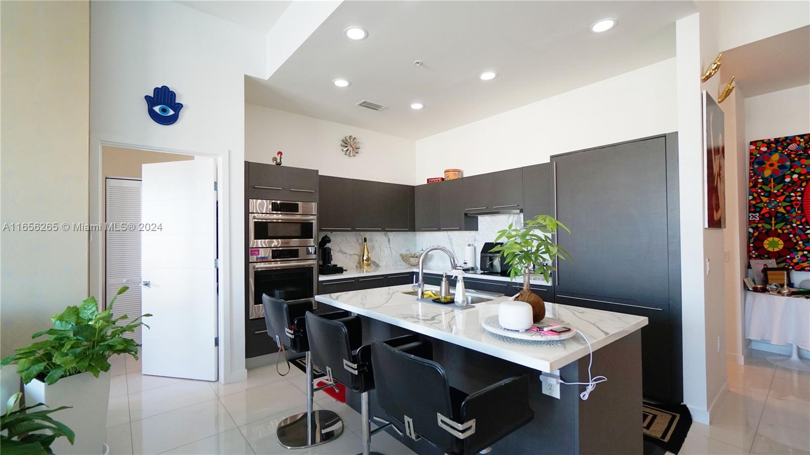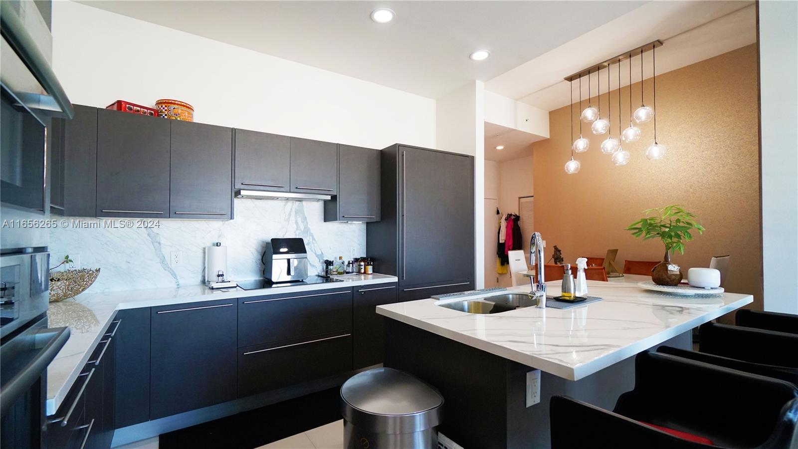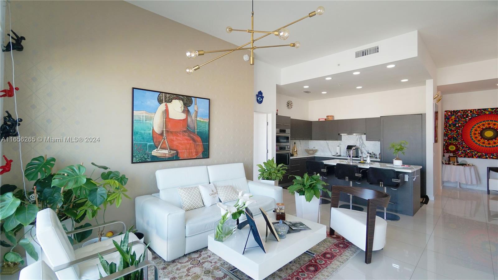 Enjoy living in this sophisticated corner unit in Midtown Doral, features tile floors, a renovated open kitchen with SS Bosch appliances, epoxy countertops and Carrara backsplash.3 bedrooms with 3 complete bathrooms. High ceilings,full of light, impact resistant windows, full of closets. Large and wide balcony ideal for family gatherings and friends. This is a modern mixed-use complex with restaurants, gym, supermarkets, etc. The unit has automatic blinds, smart home. Top floor so there's no neighbor above. 2 assigned parking . Espectacular Club house will be ready this month will include gym, pilate , spa , ballroom, pool ,etc. Easy access to freeways, Dolphin and Palmetto, very close to parks, restaurants, entertainment and shopping centers. A-rated schools.