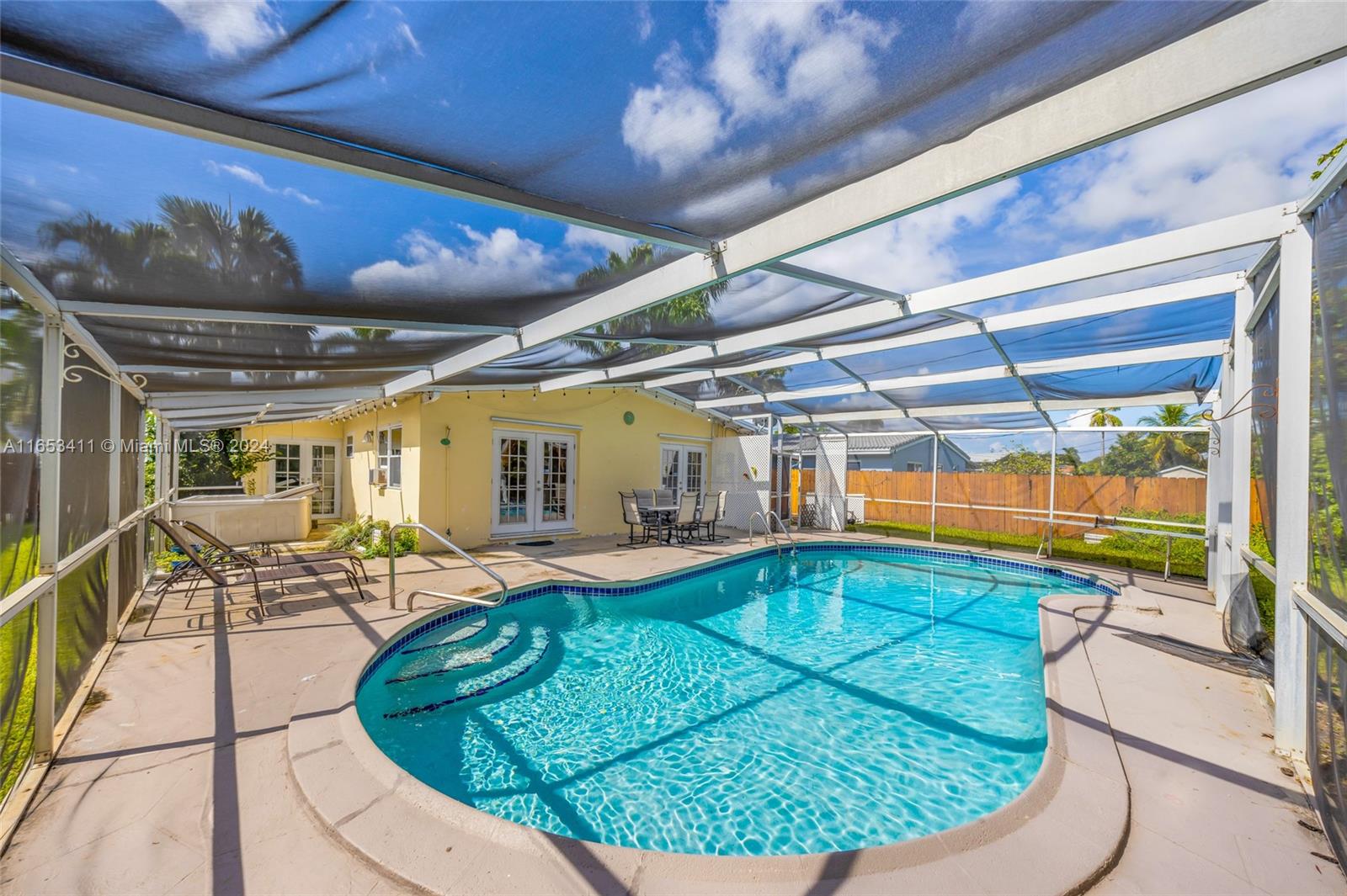 Centrally located in a heart of Hallandale Beach, beautifull specious house with 2 large bedrooms with french doors facing the pool, and 3rd room can be used as a bedroom or an office. Have it as your home or income producing property. House has Airbnb and local municipality approval.