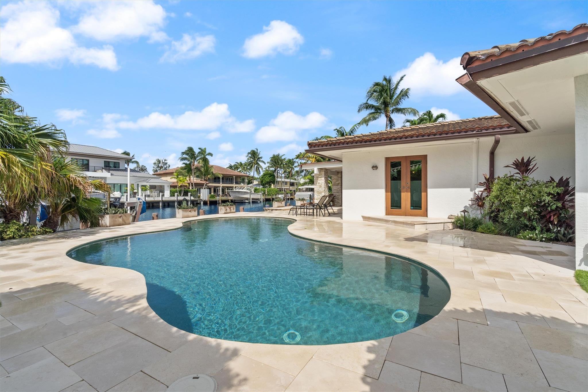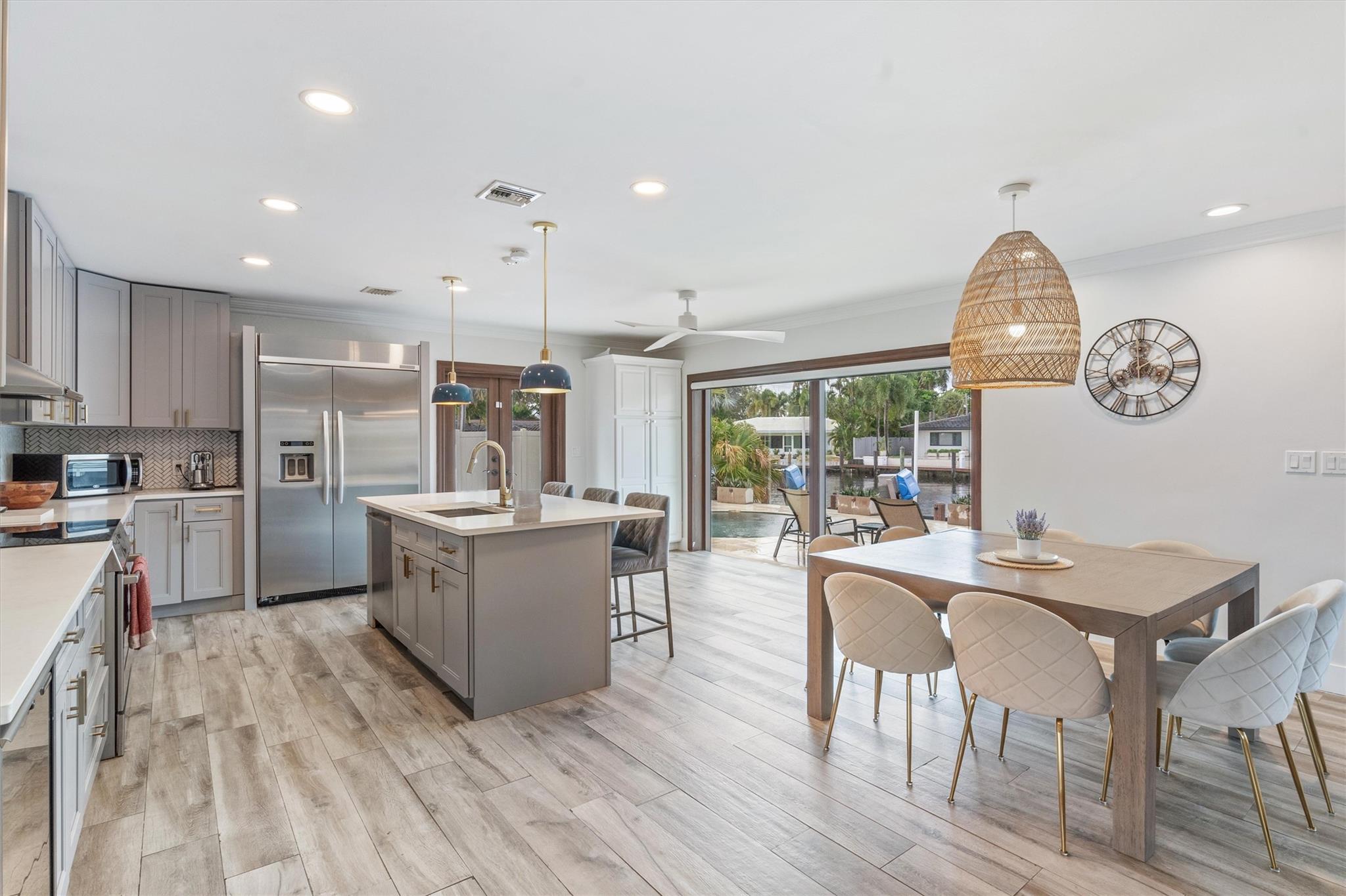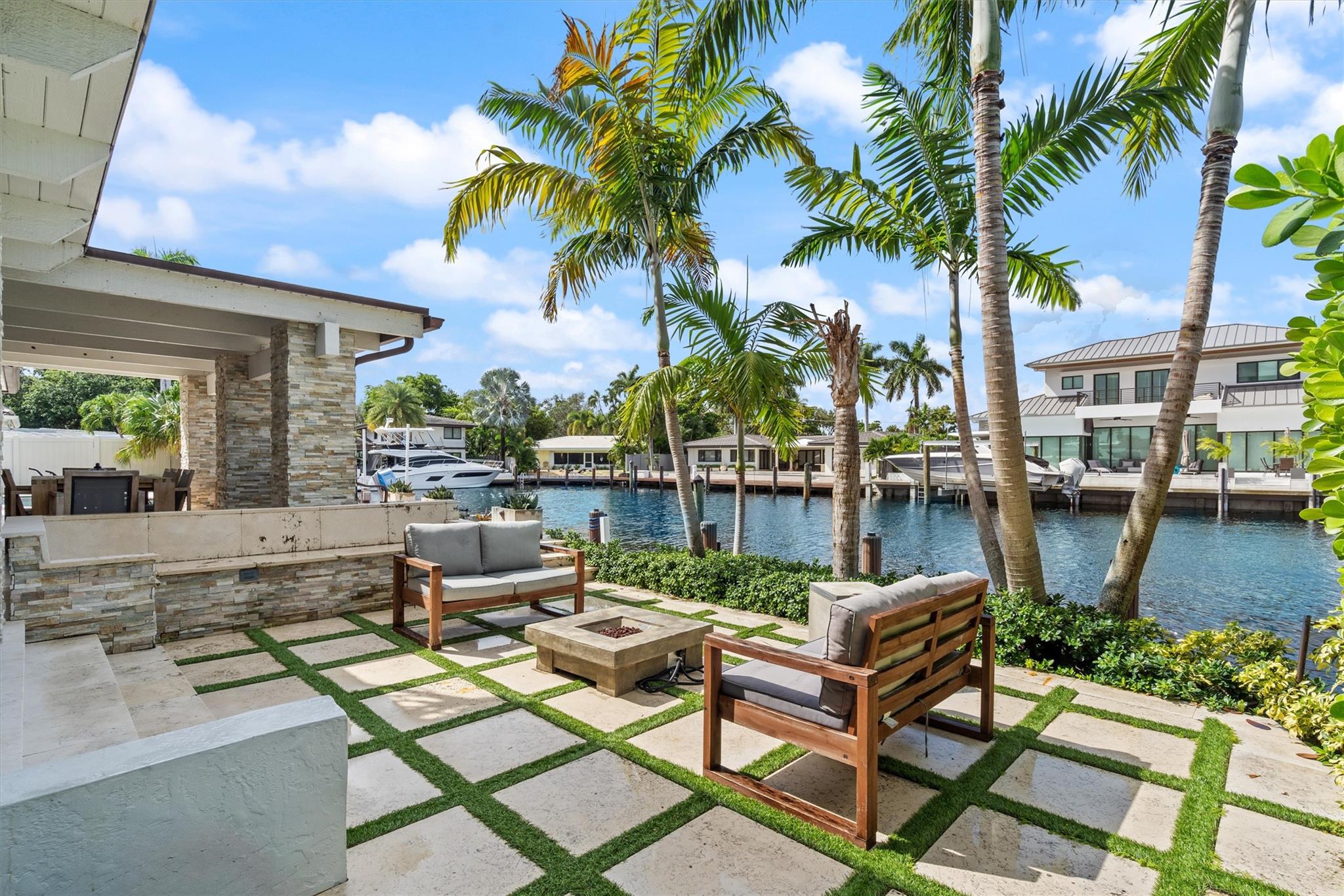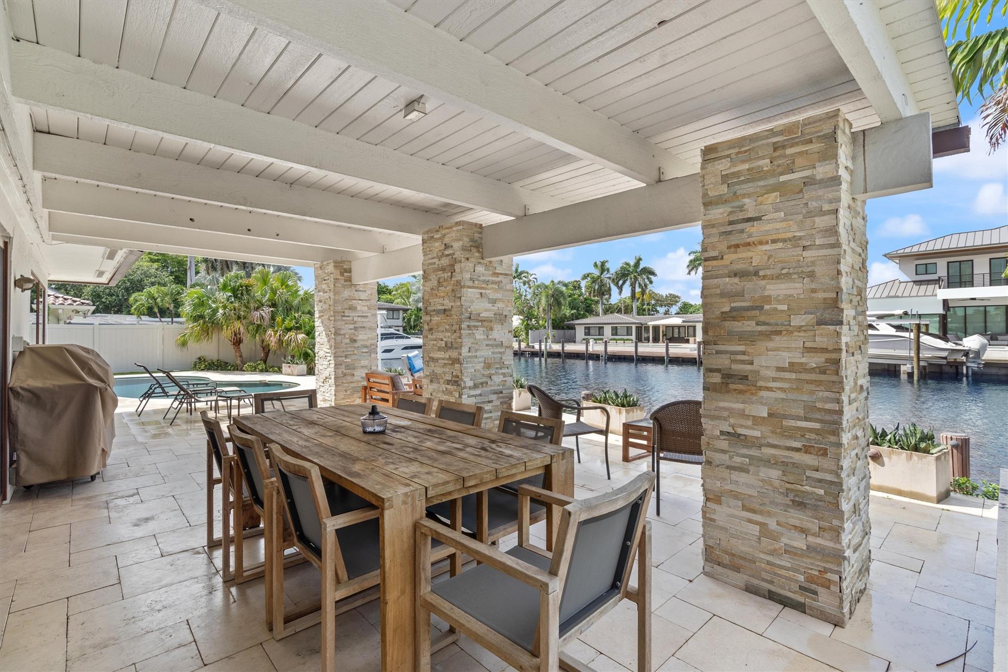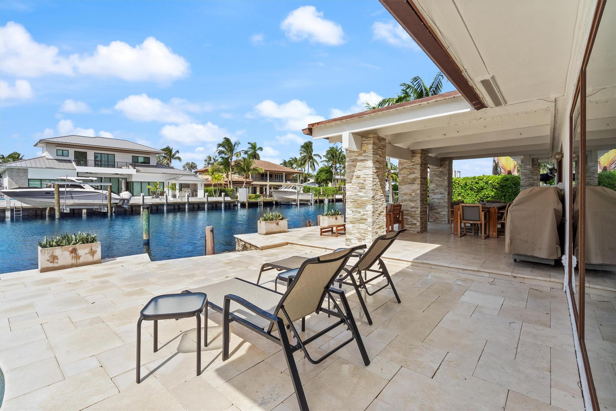 100FT on the water|No Fixed Bridges|Bayview School District|One of Coral Ridge's Widest Canals|Boat Lift|Impact Windows/Doors|Extensive Updates|Welcome home to beautiful coastal living here in paradise with a mix of soft blues, grays & whites & natural accents that create a cozy organic environment. Additional features include inviting porcelain stone floors throughout the entire home, attractively updated bathrooms, electric car/RV outlet, & oversized 2-car garage. Great views of the waterway from main living, main guest quarters & upstairs primary bedroom. All bedrooms offer extensive storage along with the oversized two-car garage. Backyard is perfect for entertaining w/large covered loggia & deck, heated pool, no-maintenance turf, travertine pavers & 15K boat lift w/50amps.