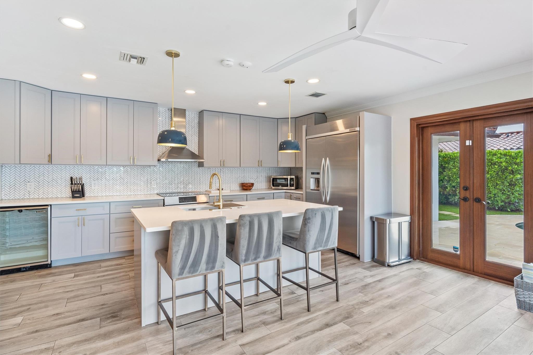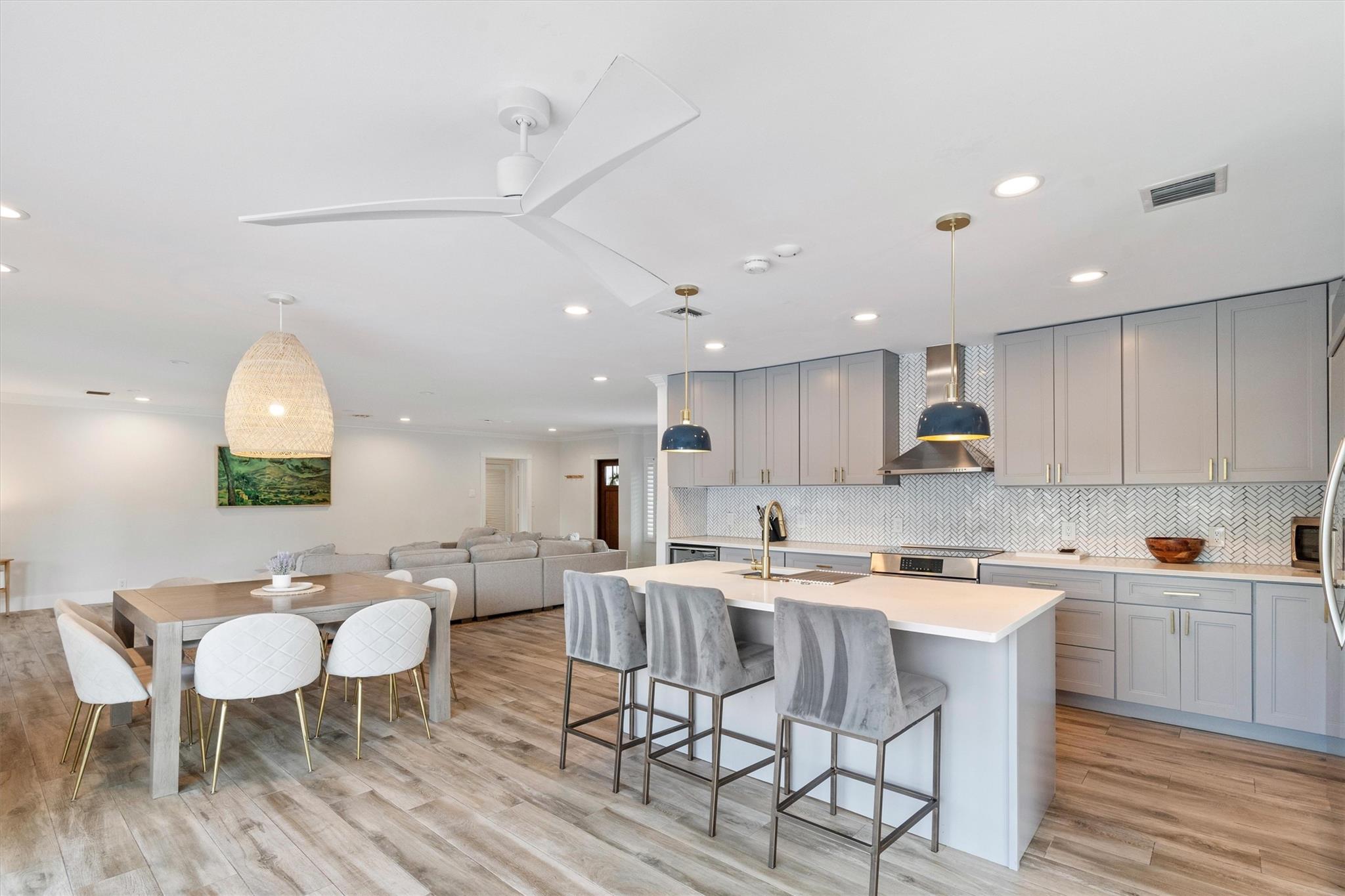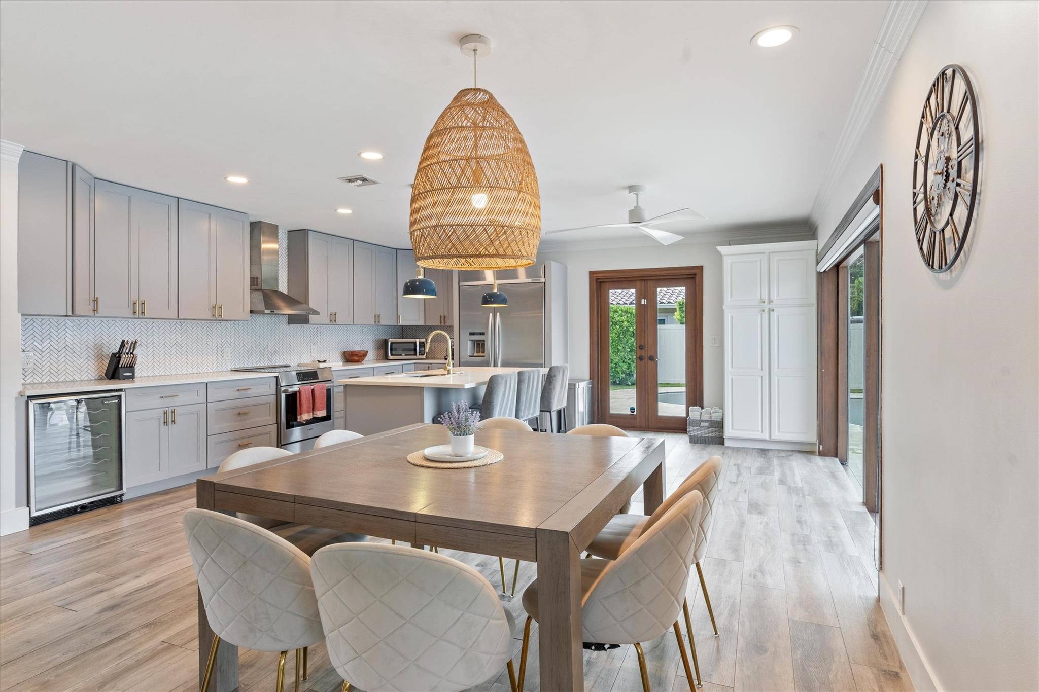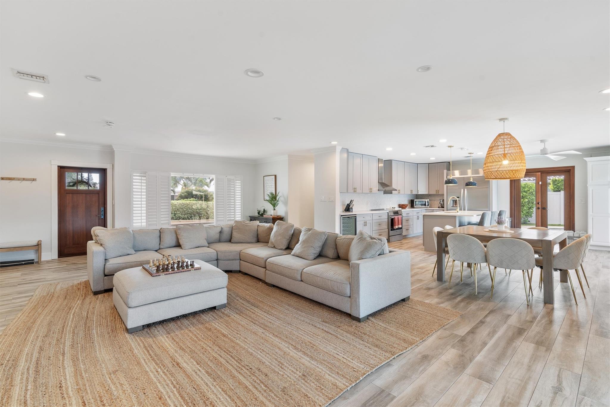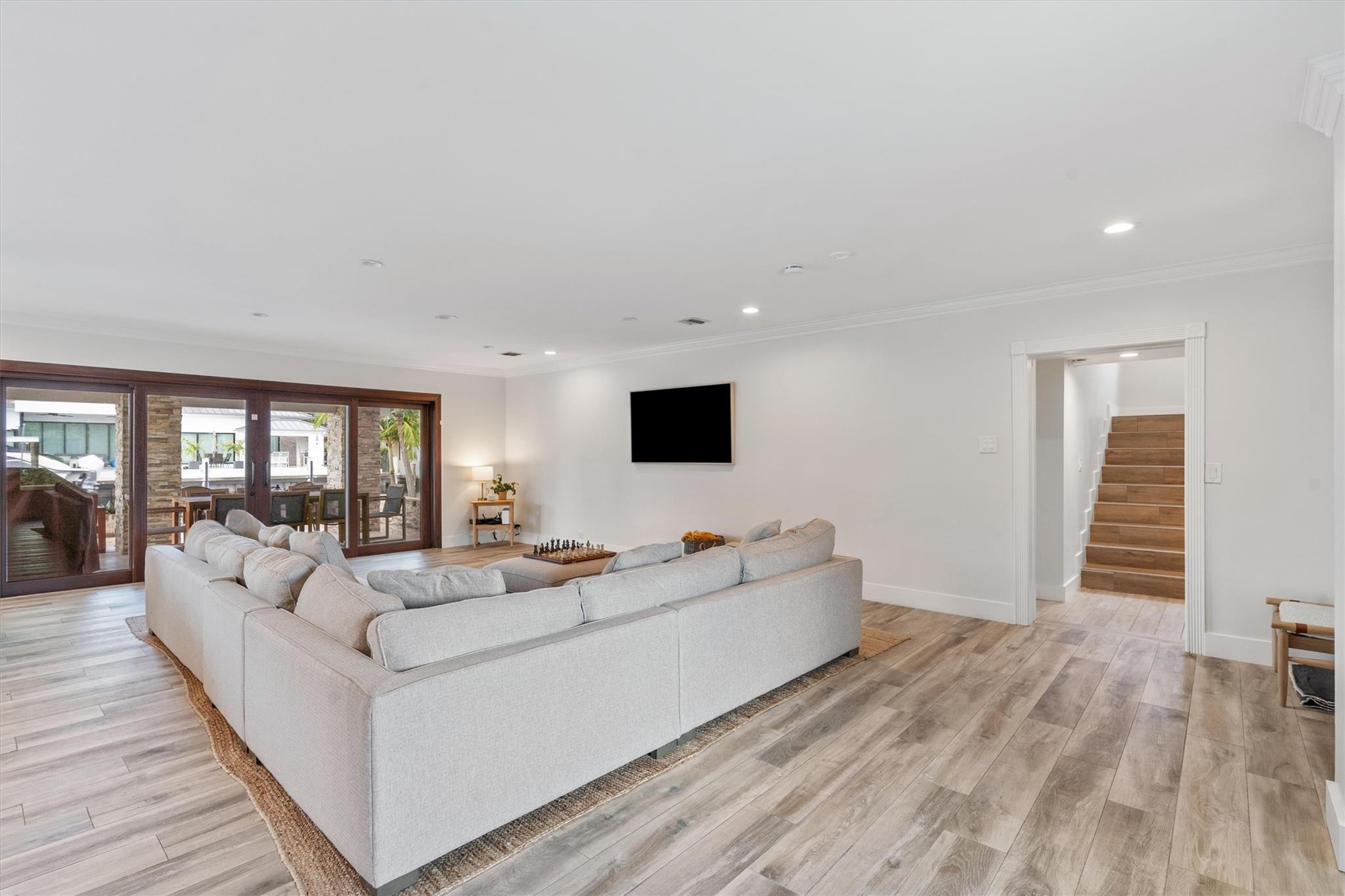 100FT on the water|No Fixed Bridges|Bayview School District|One of Coral Ridge's Widest Canals|Boat Lift|Impact Windows/Doors|Extensive Updates|Welcome home to beautiful coastal living here in paradise with a mix of soft blues, grays & whites & natural accents that create a cozy organic environment. Additional features include inviting porcelain stone floors throughout the entire home, attractively updated bathrooms, electric car/RV outlet, & oversized 2-car garage. Great views of the waterway from main living, main guest quarters & upstairs primary bedroom. All bedrooms offer extensive storage along with the oversized two-car garage. Backyard is perfect for entertaining w/large covered loggia & deck, heated pool, no-maintenance turf, travertine pavers & 15K boat lift w/50amps.