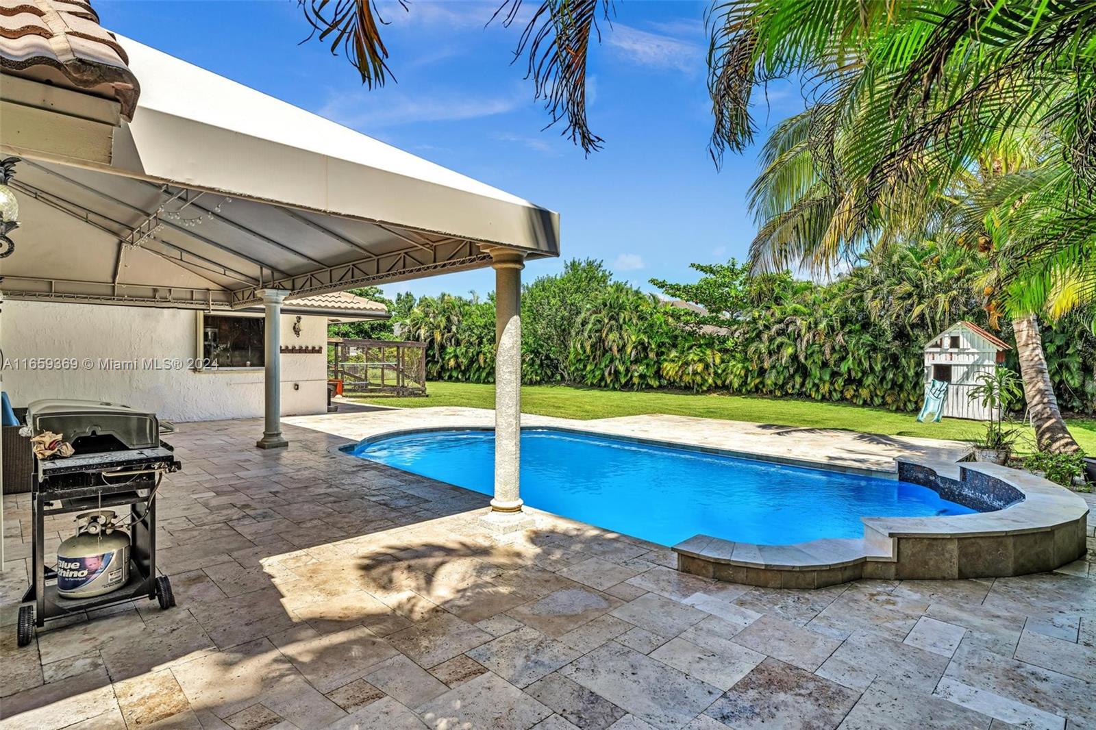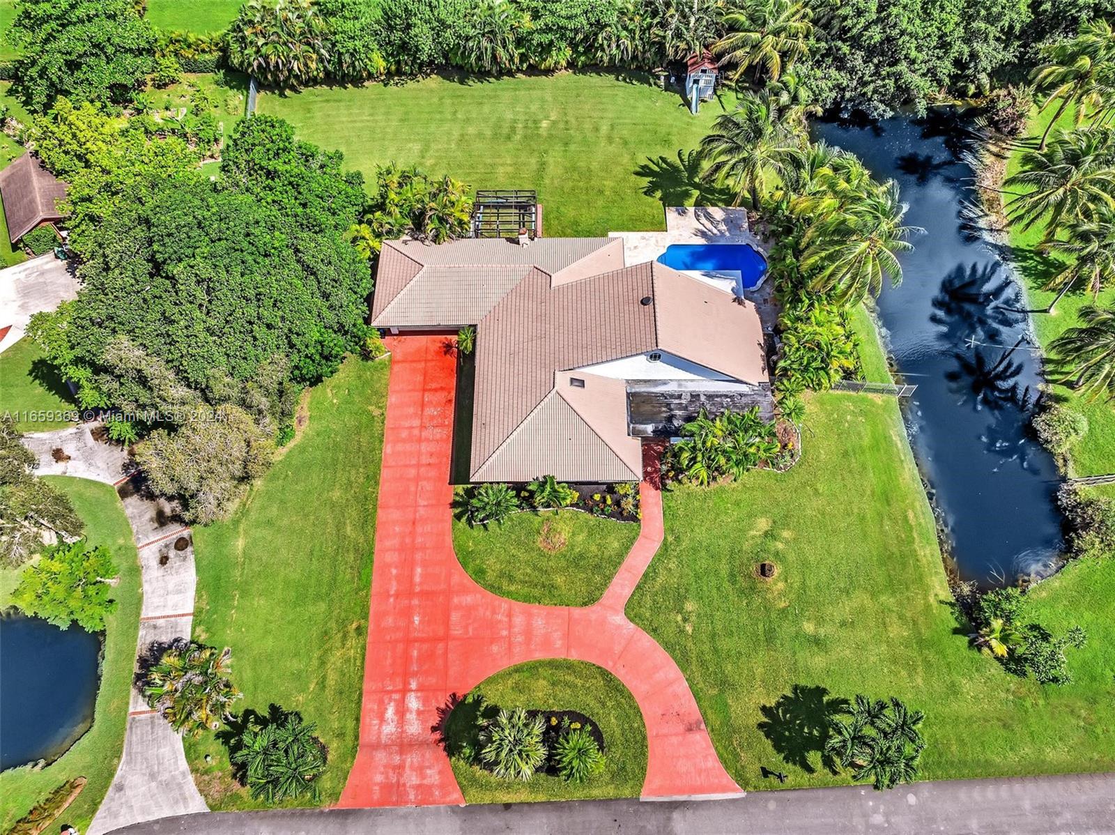 Imagine living in luxury on this prestigious acre estate, where opulence meets luxury neighbors, It Sprawling 35,837 SQ FT of land close to an acre bordered by a canal, trees, an exceptional Davie home of 4 beds and 3 baths & 2,674 living area, circular and huge driveway. Enjoy outdoor living with a welcoming patio and pool area Cozy family room, and a spacious kitchen, which offers tons of cabinets, granite counters, waterproof floors, a huge laundry room Renovated bathrooms, Recent upgrades, and 2018 AC replacement. And full-house accordion shutters for added peace of mind Plus, you'll love the easy access to nearby horse trails. Don't miss the opportunity, come and experiment and experience the charm and serenity. Easy to show, call the listing agent. 24-hour advice for appointment