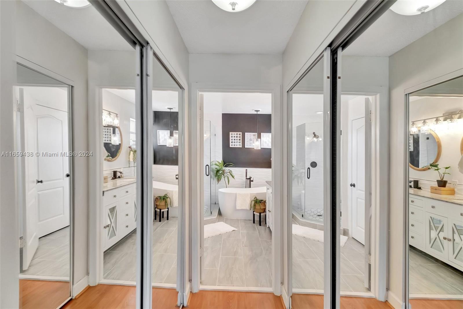 Welcome Home! This Grand 5 bedroom 3 full bathroom Single Family home is located in the wonderful gated community of Doral Landings East Enter a Grand foyer and living area featuring cathedral ceilings and plenty of natural light. One bedroom and a full bath downstairs (perfect for guests or home office). Large open concept kitchen w/plenty of room for dining and entertaining. SS appliances, granite countertops & plenty of cabinets. Spacious Master Suite with a fully remodeled en-suite bathroom & walk-in closet. Three additional bedrooms plus another remodeled bathroom upstairs. NEW ROOF, NEW AC, Accordion shouters Great backyard with pavers and landscaping ready for outdoor gatherings and BBQ. Room for a pool or use the community's private clubhouse pool. 2 car garage plus large driveway.