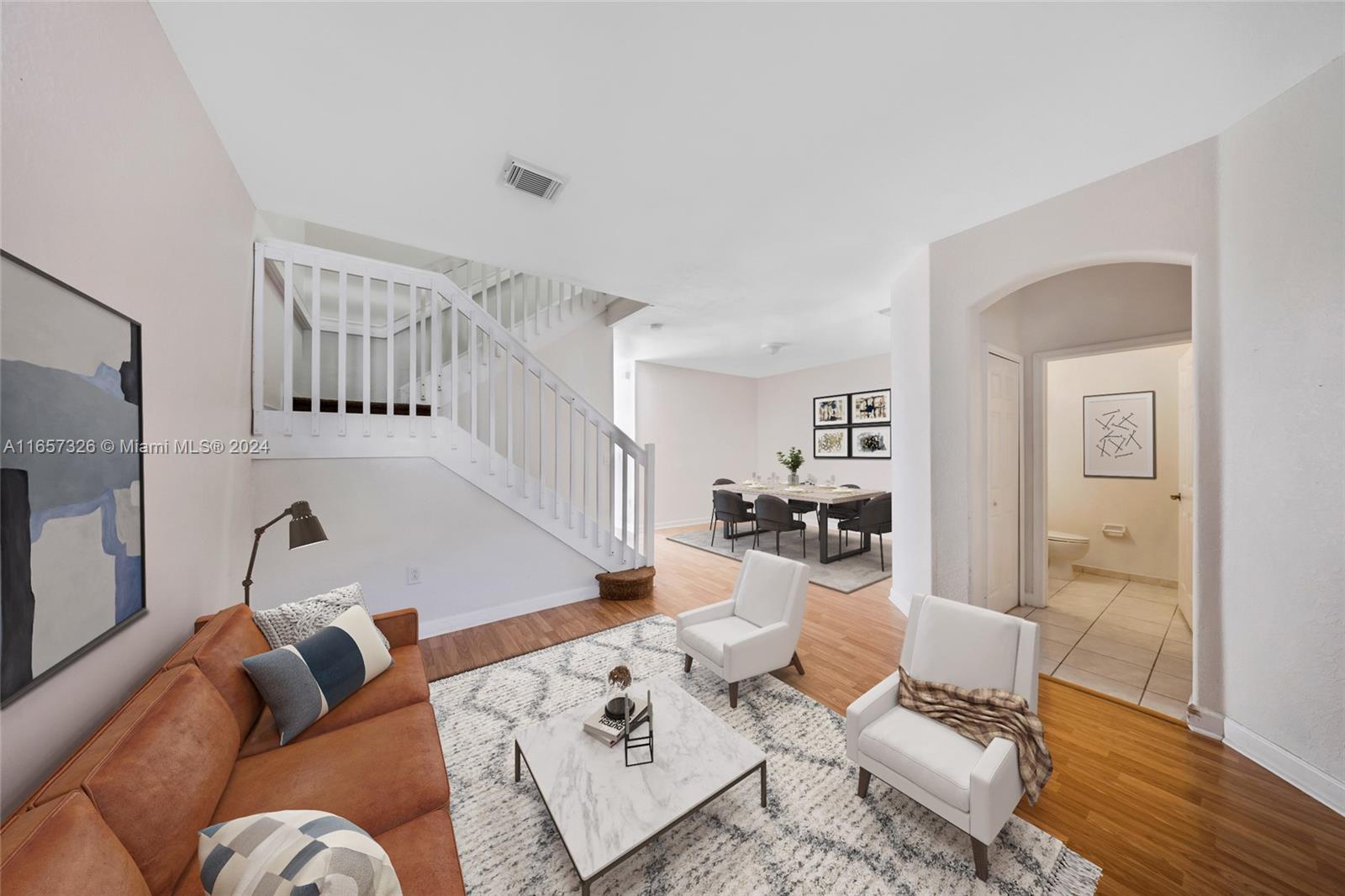 This charming 2-story townhome in the Islands of Doral community features 3 bedrooms, 2.5 baths, and 1,683 sq ft of living space. The first floor offers sleek laminate flooring, while the bedrooms upstairs are carpeted for added comfort. With a 1-car garage and a fenced-in patio, this home provides both convenience and outdoor privacy. Located in a community that boasts resort-style amenities such as a park and pool within community and larger Islands at Doral master community clubhouse with tennis & basketball courts, 2 pools, kiddy playground, fitness center, meeting/event rooms. This property offers an ideal blend of comfort and lifestyle in a prime location.