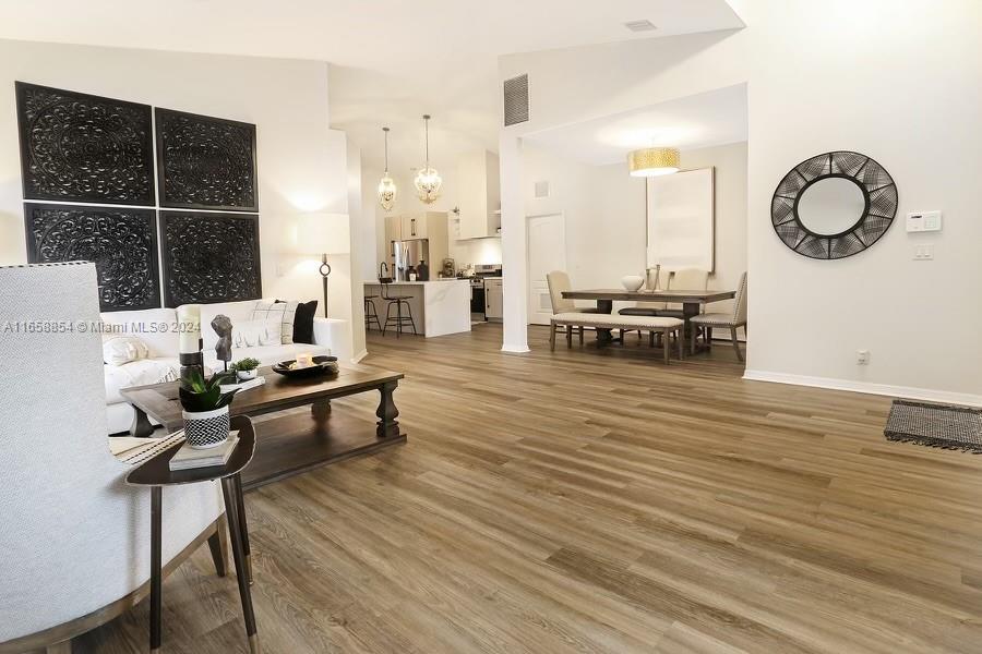 WELCOME HOME! This 3 Bedroom 2 Bath 1 story home in the desired gated community of Laguna Isles will not Last! Beautifully Remodeled and Upgraded Burbank model features vaulted ceilings, spacious family room, wood flooring in Living/Dining rooms and all bedrooms, open concept kitchen for entertaining and family dinners, laundry room, gas stove, and more. Full lawn care provided, brick paver driveway, and A rated school district. 24hr manned guard gated community with gym, pool, jacuzzi, tennis and kids playground.