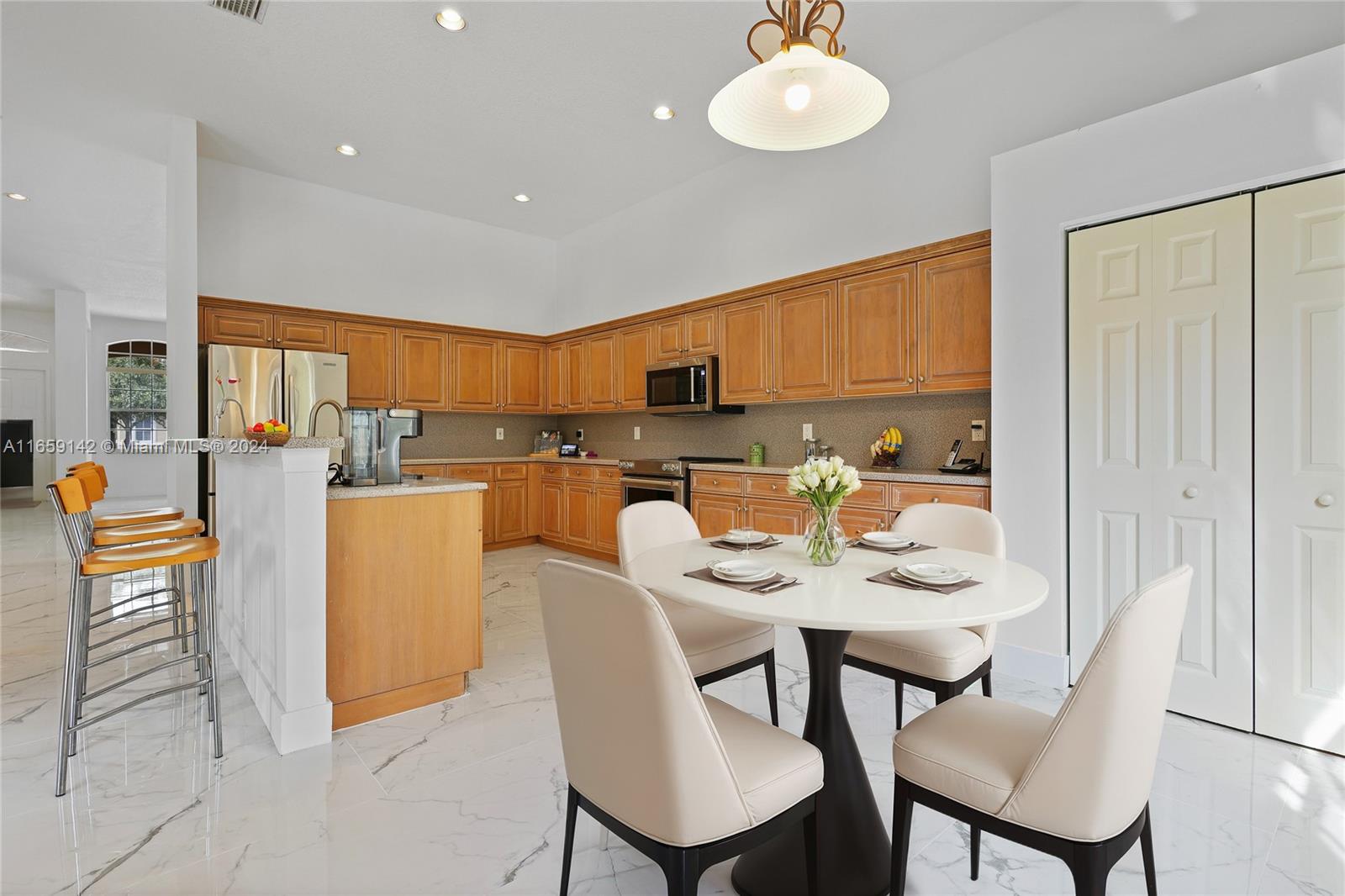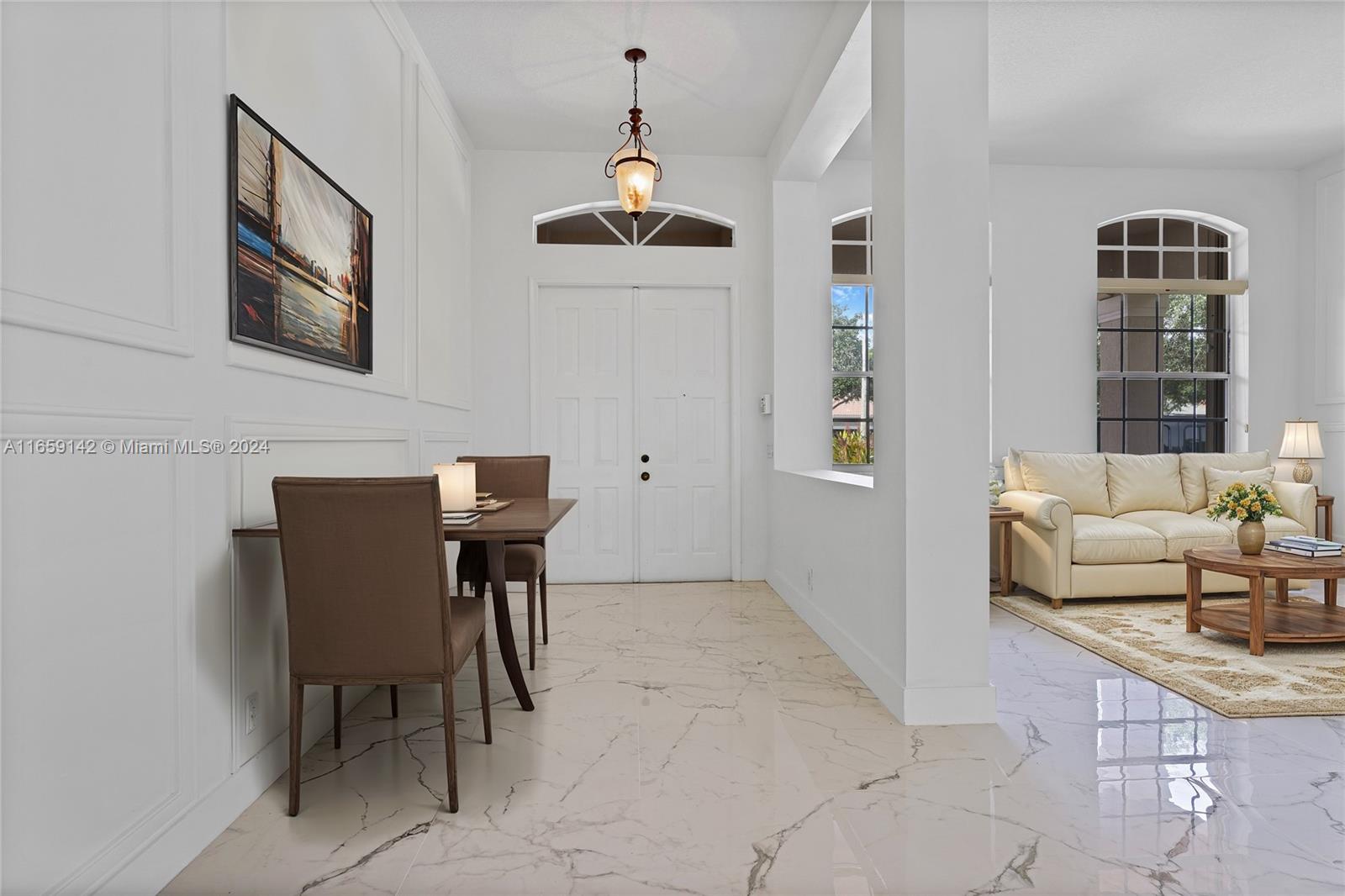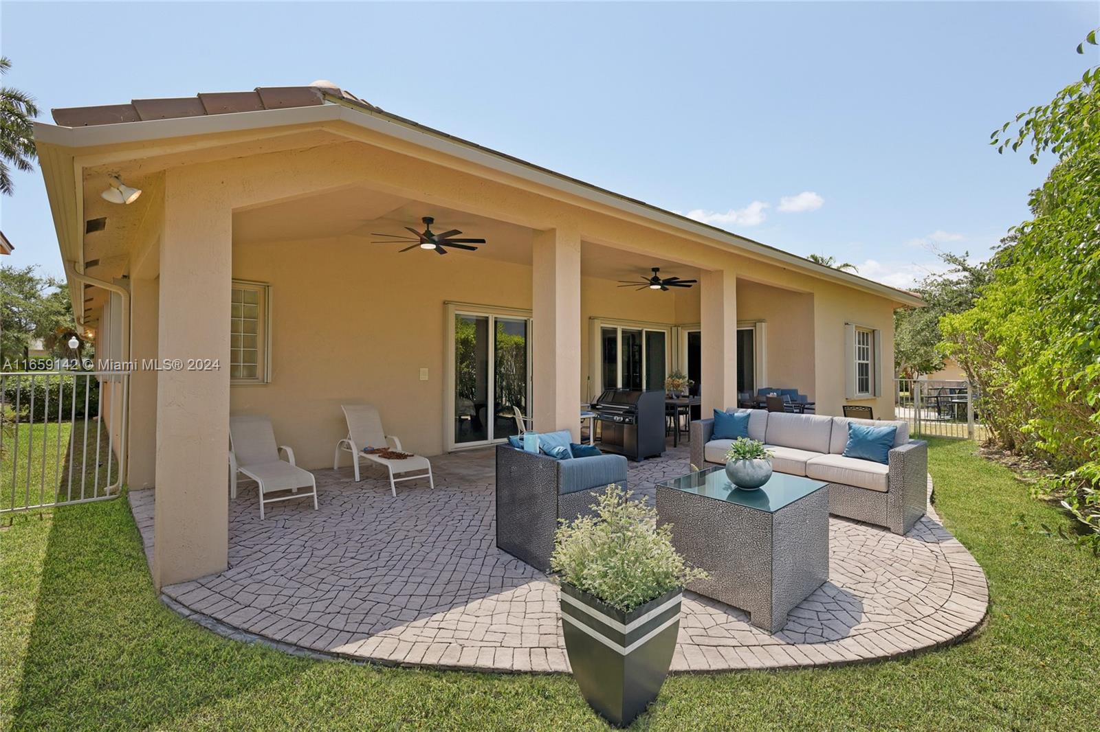 Welcome to this beautiful one-story corner house, located in the desirable neighborhood of Savanna in Weston! This stunning single-family home boasts 4 beds, 2.5 baths, and a spacious 2-car garage. The home has been meticulously maintained by its only owner. It has a new 2023 roof. New beautiful porcelain tile was installed in the floor of the entire house. The 12" ceilings allow lots of natural lighting into the house. Freshly painted using Shewing Williams high quality paint. Open kitchen with wooden cabinets. Updated master bathroom with a porcelain tile. Accordion hurricane shutters all-around. Close to "A+" top-ranked schools nearby, ensuring an exceptional education for your family. This prime location also provides convenient access to major highways, making commuting a breeze.