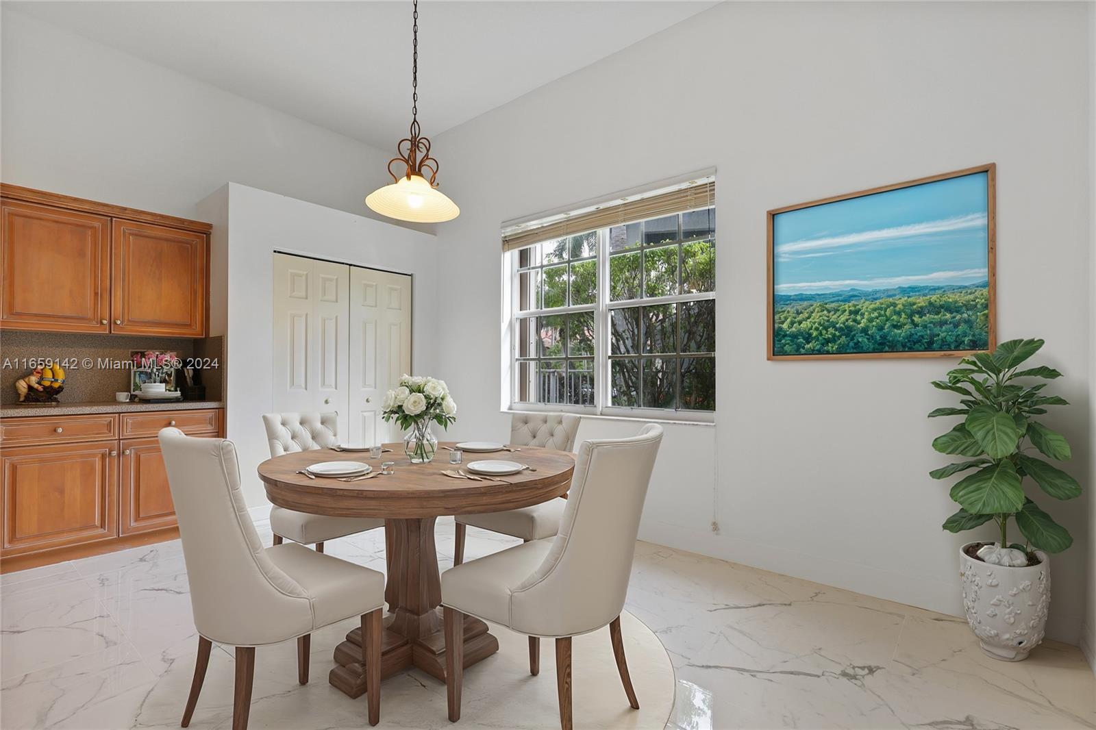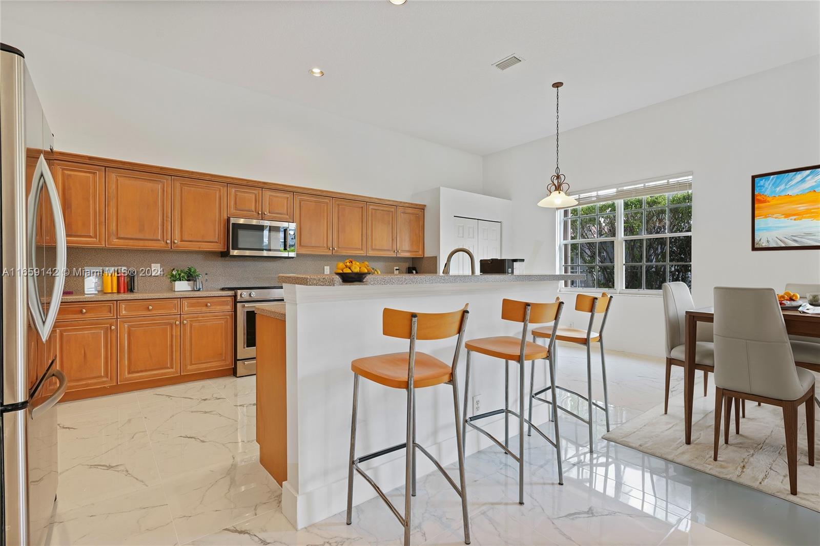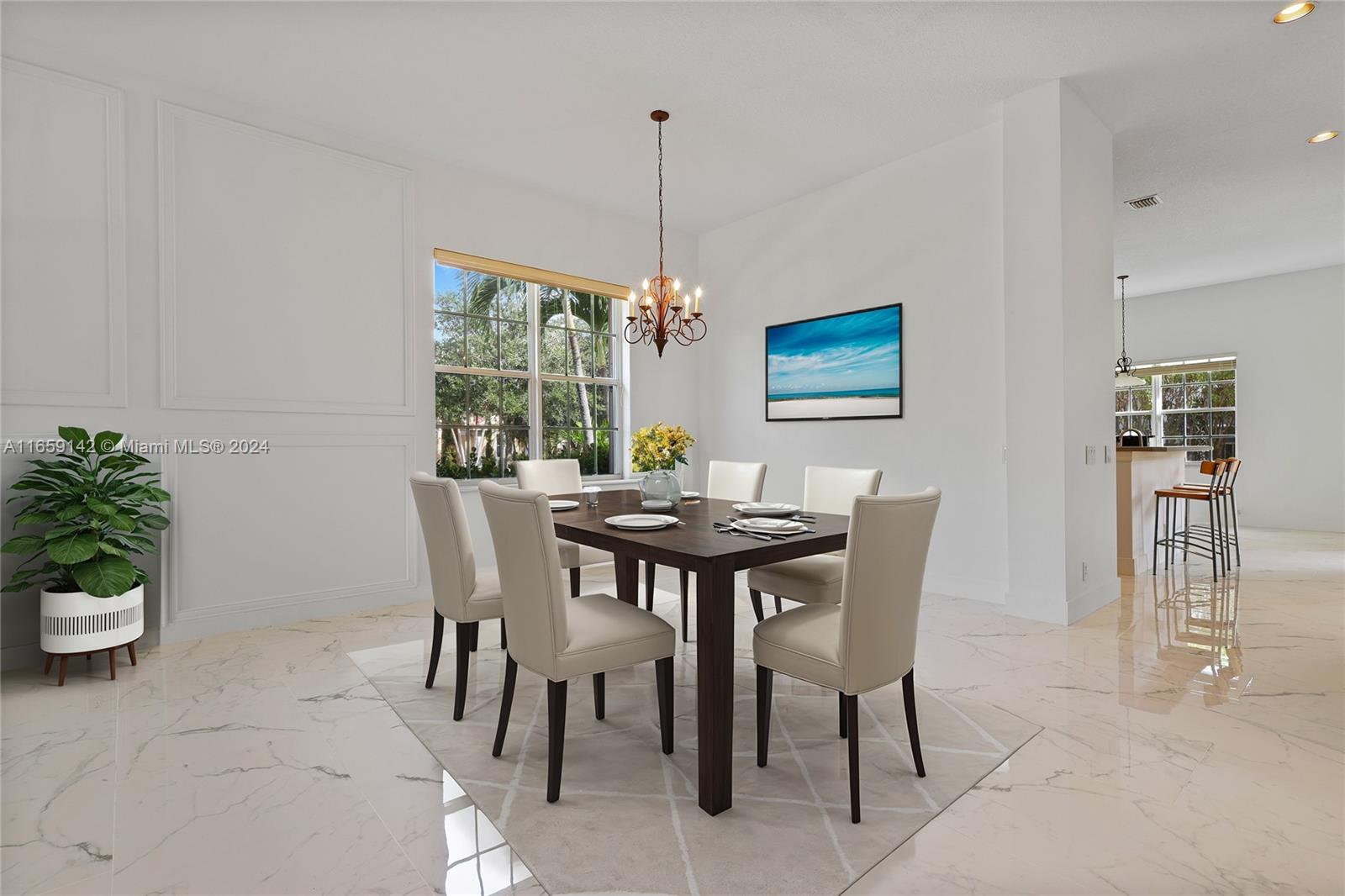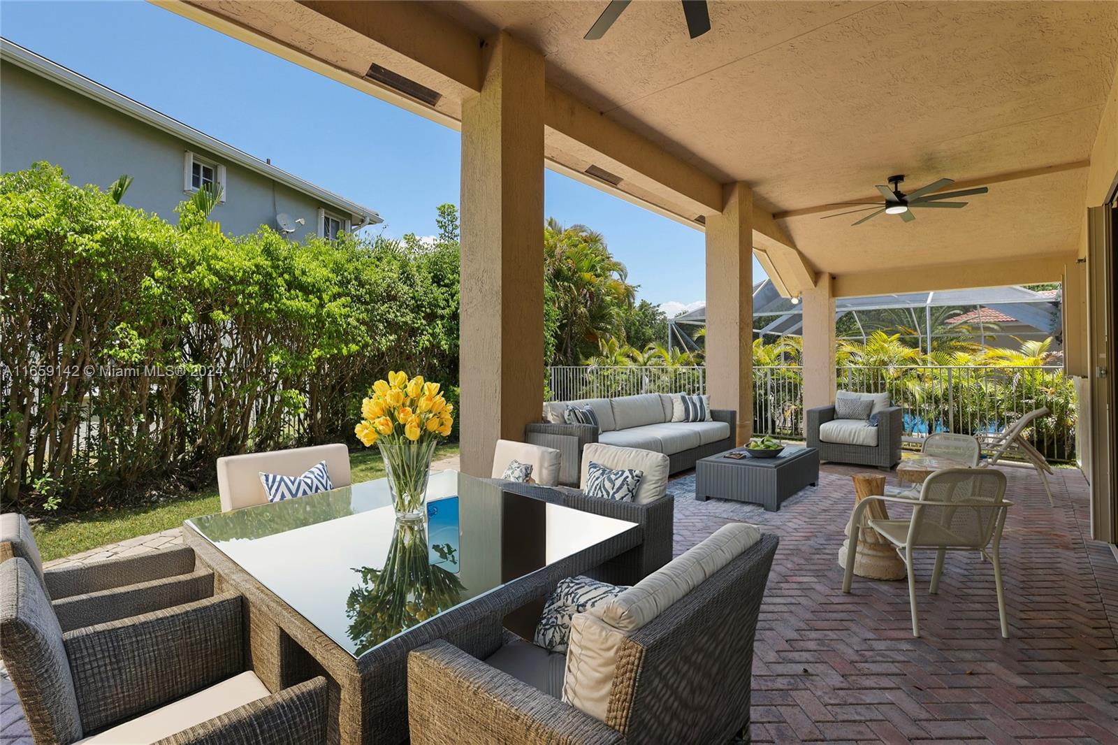 Welcome to this beautiful one-story corner house, located in the desirable neighborhood of Savanna in Weston! This stunning single-family home boasts 4 beds, 2.5 baths, and a spacious 2-car garage. The home has been meticulously maintained by its only owner. It has a new 2023 roof. New beautiful porcelain tile was installed in the floor of the entire house. The 12" ceilings allow lots of natural lighting into the house. Freshly painted using Shewing Williams high quality paint. Open kitchen with wooden cabinets. Updated master bathroom with a porcelain tile. Accordion hurricane shutters all-around. Close to "A+" top-ranked schools nearby, ensuring an exceptional education for your family. This prime location also provides convenient access to major highways, making commuting a breeze.