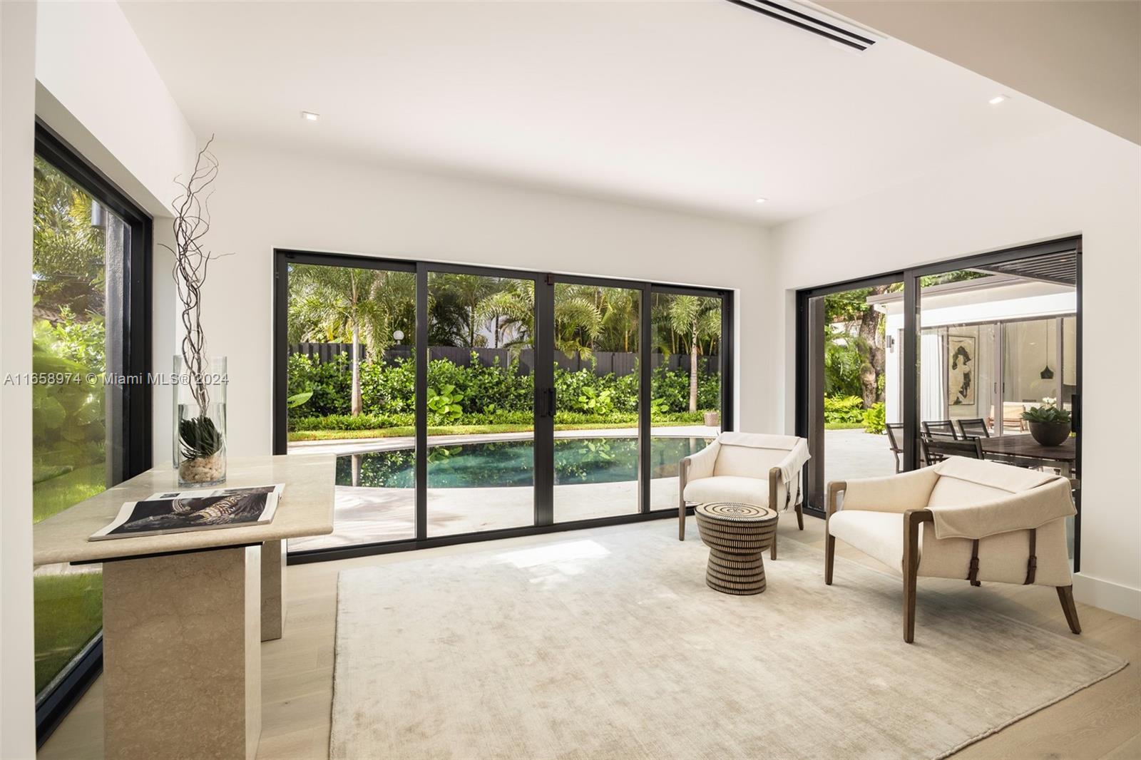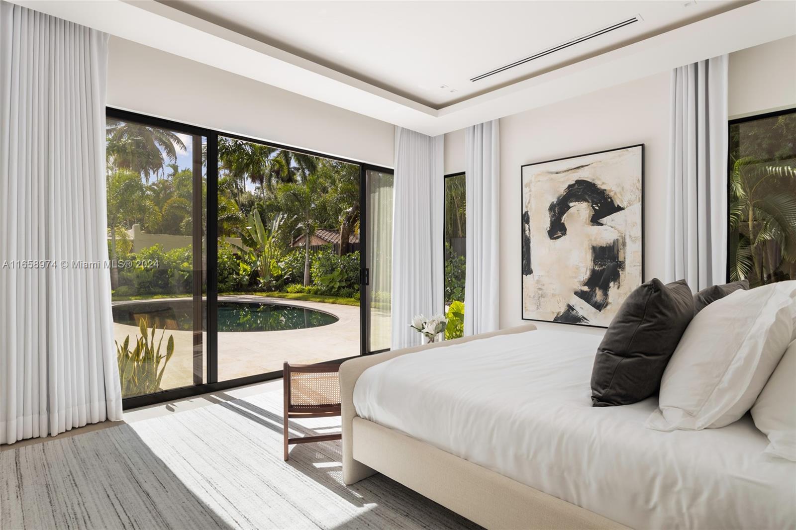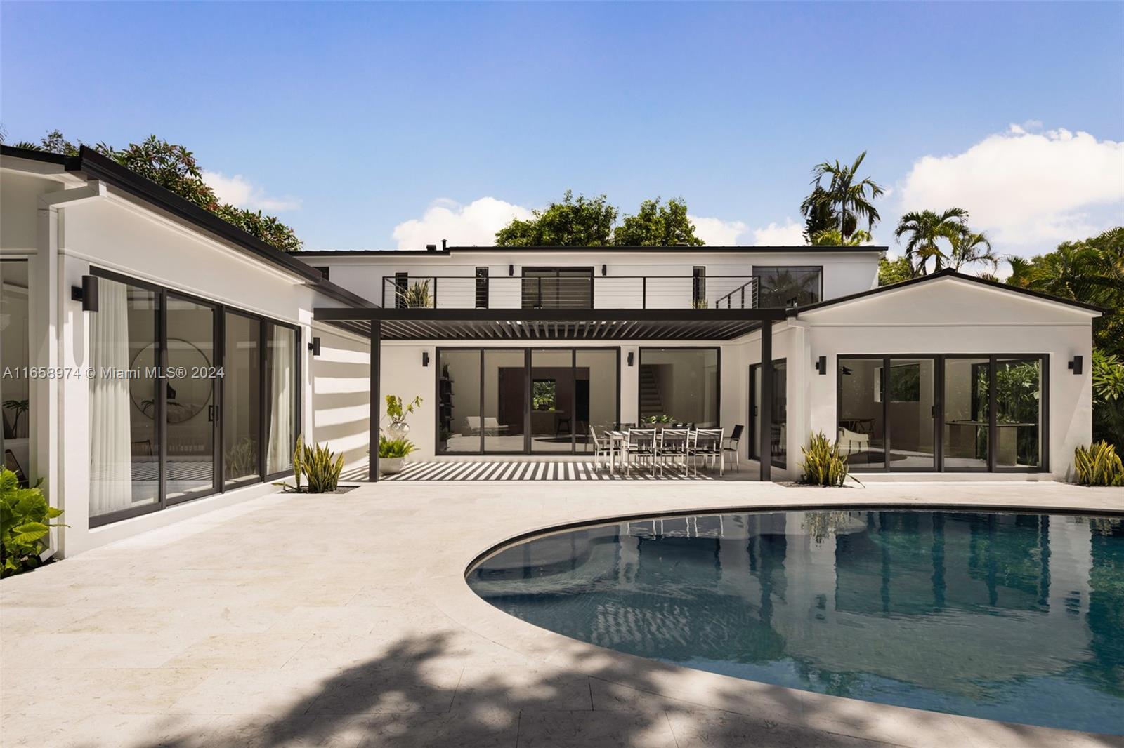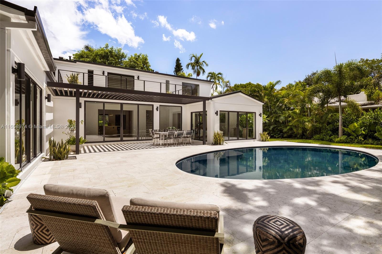 Newly completed and expertly designed 4,228 SF gated residence with 5-bedrooms and 5.5-bathrooms, on a generous 10,700 SF lot in a highly sought-after North Grove neighborhood. The open, airy floor plan is filled with natural light, showcases beautiful hardwood floors throughout, and offers interiors crafted by the renowned Farache Bromberg Design Studio. A gourmet kitchen boasts sleek custom cabinetry, Neolith Travertine countertops, high-end Miele appliances, and a dedicated dining space. Perfectly suited for entertaining, the beautifully landscaped backyard includes an oval-shaped pool, limestone deck, and trellis. Other features include impact windows and doors, exquisite millwork, oversized terrace, fireplace, and garage.