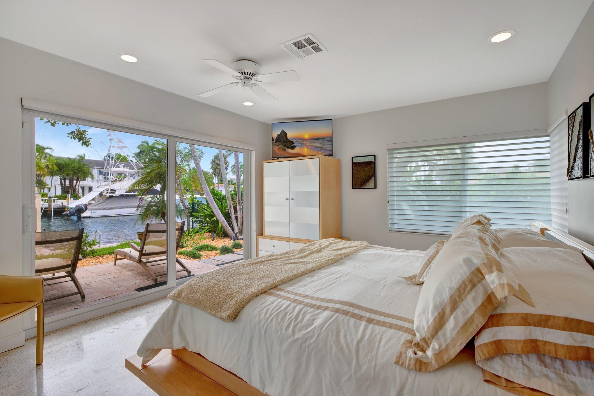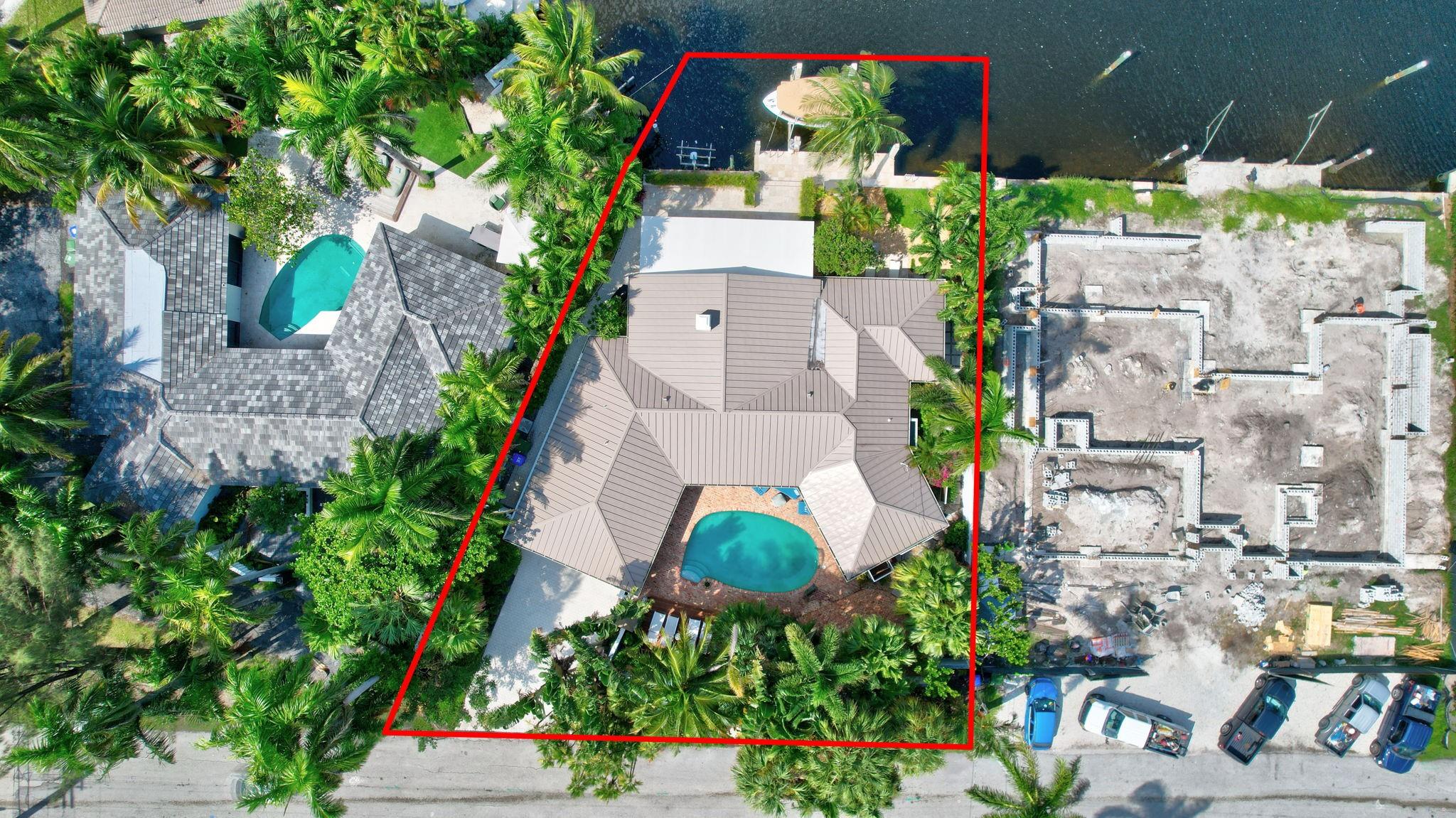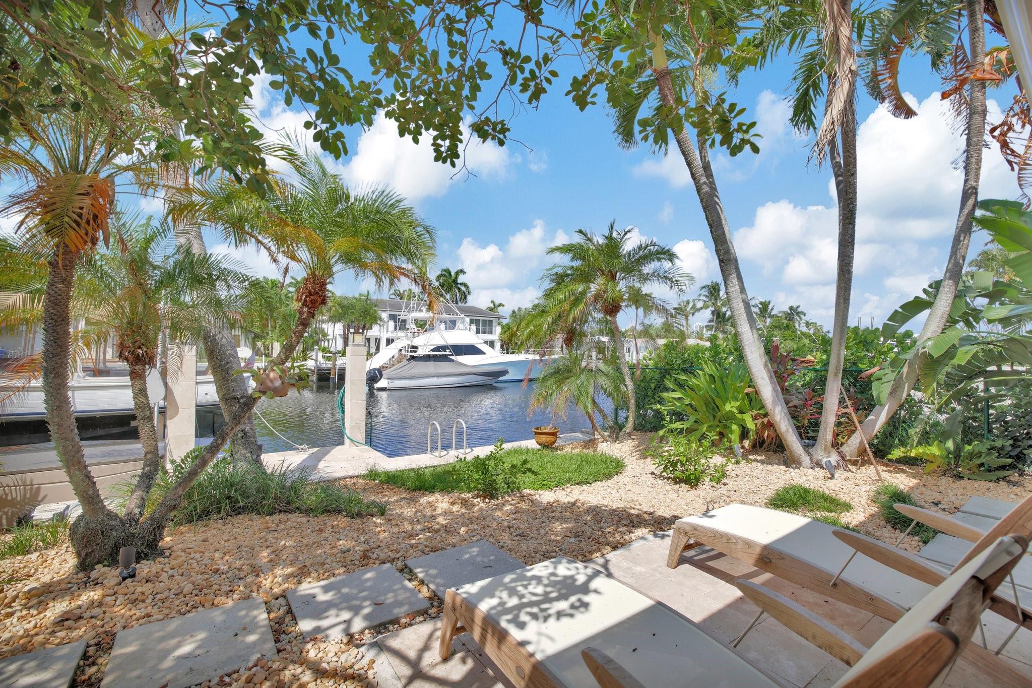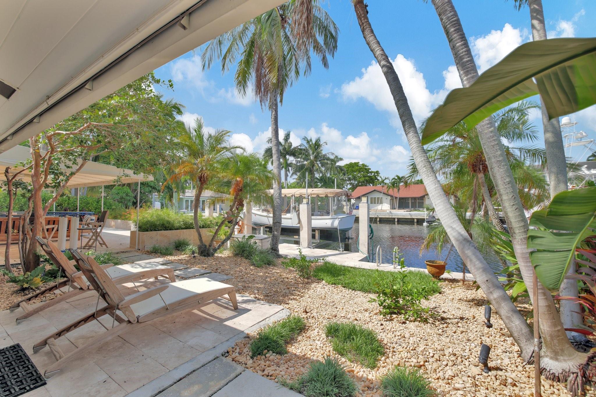 This hidden gem combines a very private pool w/no fixed bridges to the ocean in a lush tropical setting. Location is convenience itself, in the heart of Coral Ridge w/its Bayview Elementary District, near the beach, Intracoastal and city services, shopping and entertainment. A 3 bed, 2 1/2 bath, 2 car garage (a/c mini split) home with gorgeous restored terrazzo floors, hi end appliances, beautiful countertops and backsplashes, the floor plan has the flow of a modern, open plan with defined spaces for dining, entertaining, home office, wet bar/media room plus 600 sf covered outdoor space. Dock with power, water, 12,000 lb lift, jet ski lift. Separate irrigation meter, new roof 2020, new AC 2022. Tropical, beautiful, this home is iin move in condition for your most discerning clients.