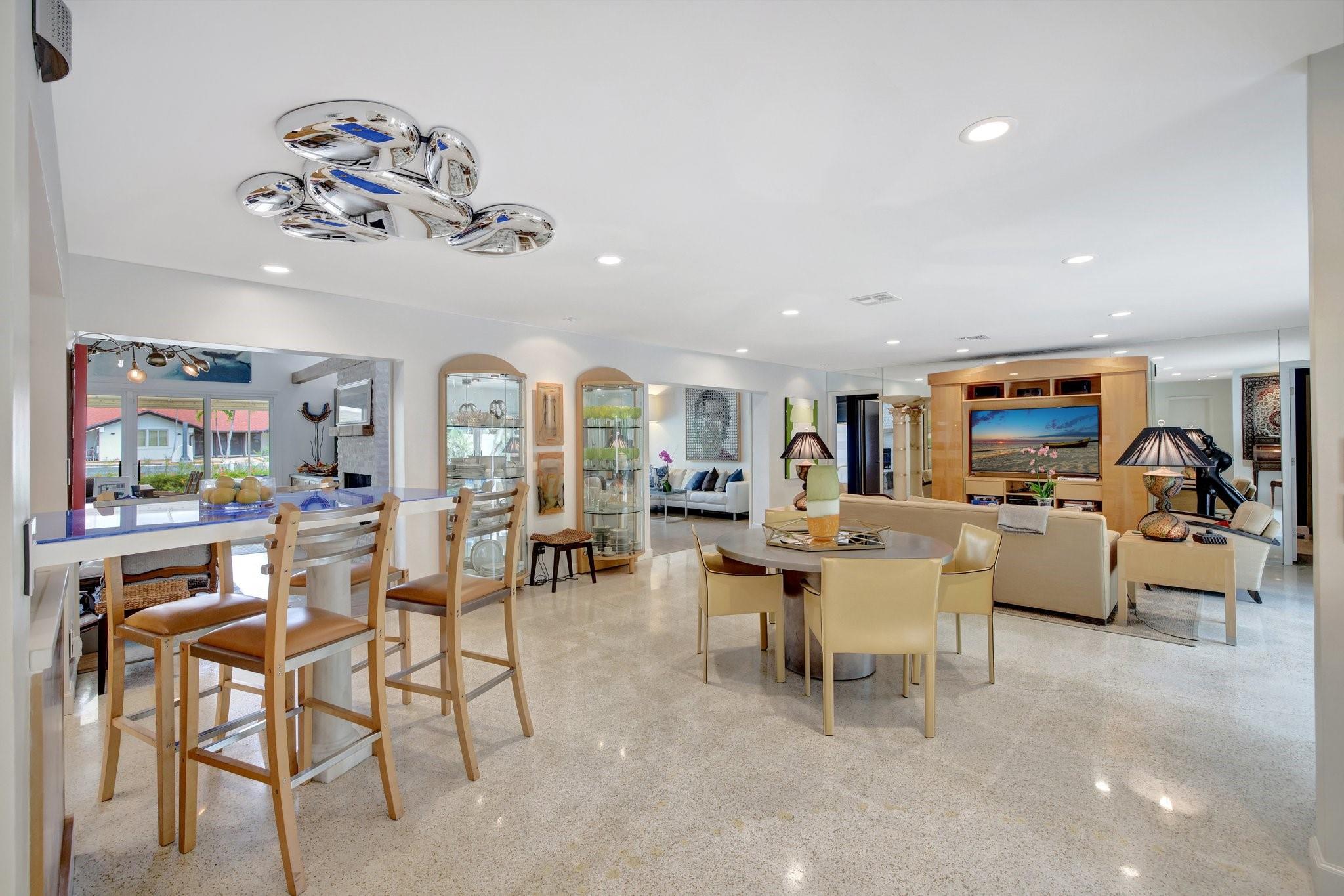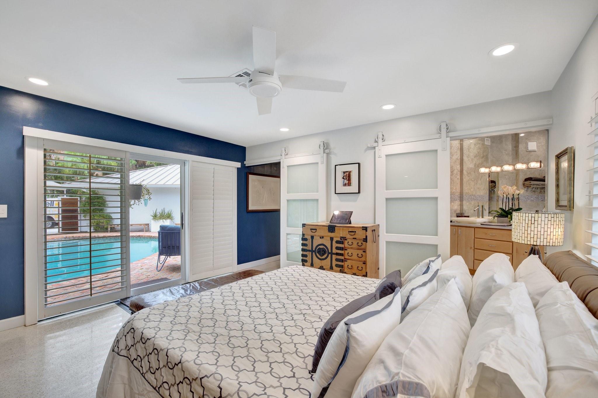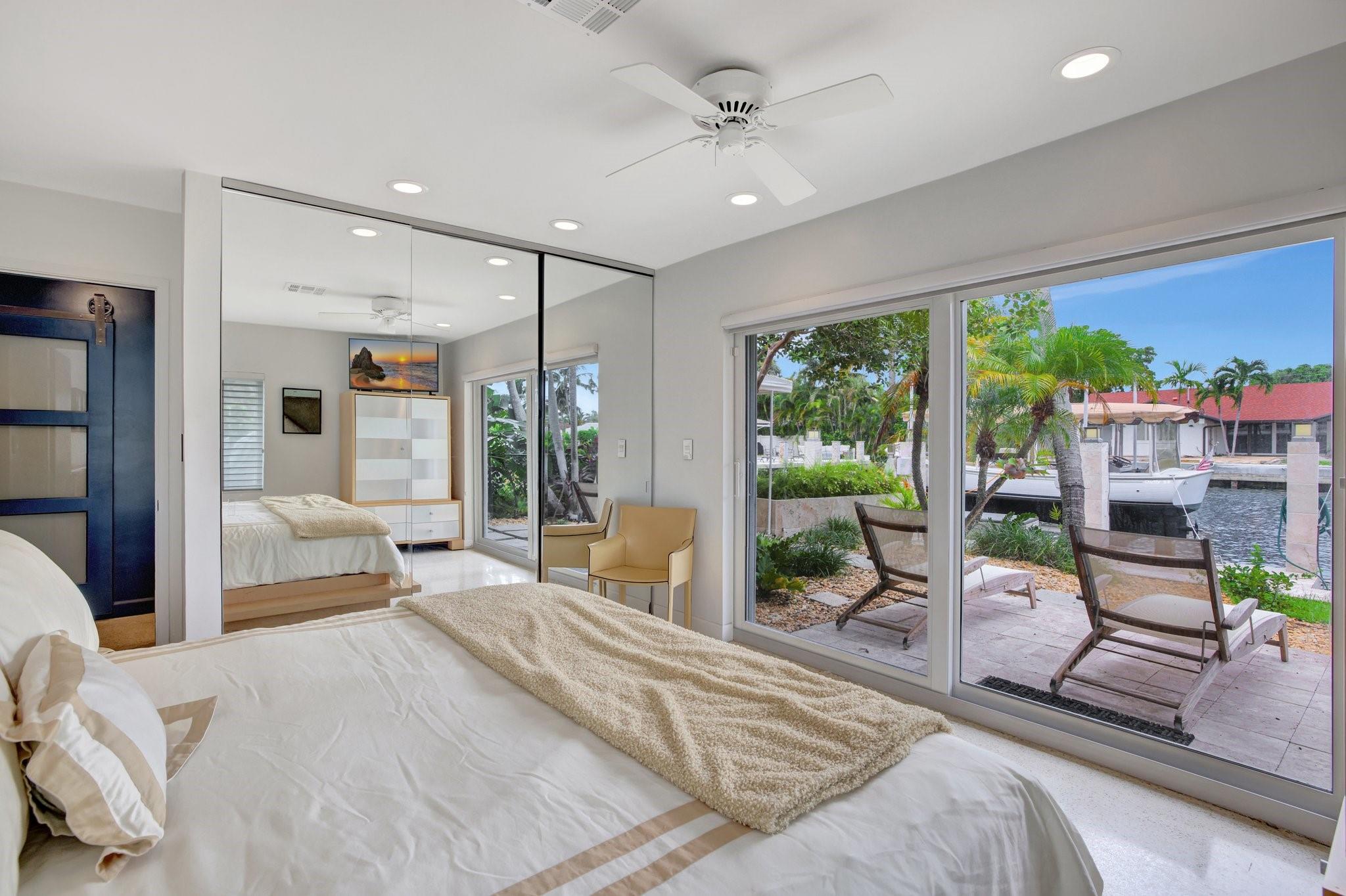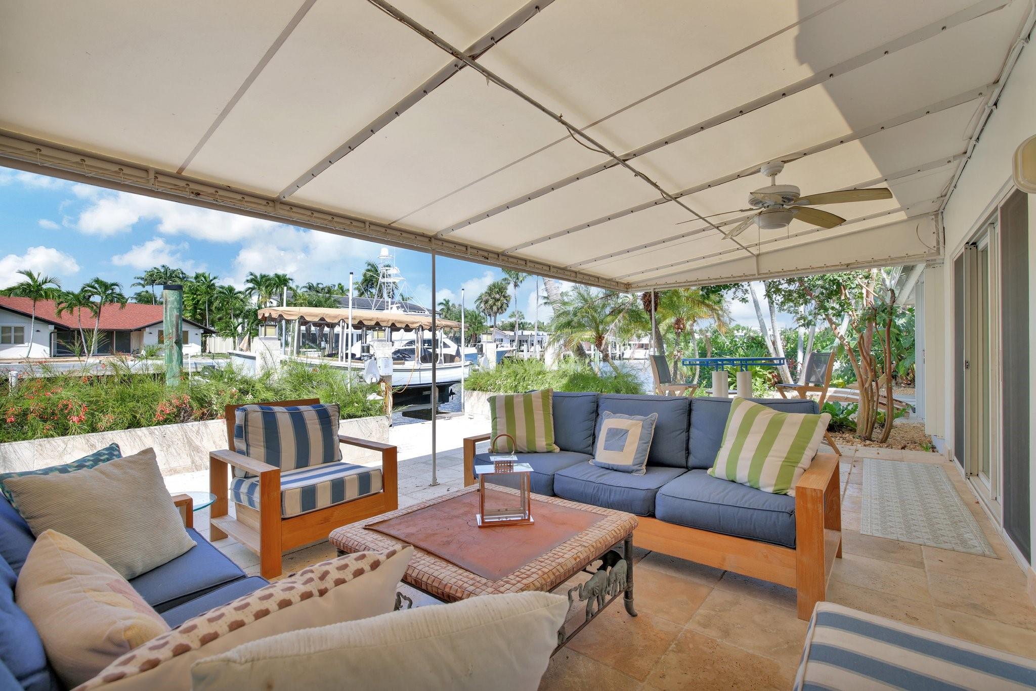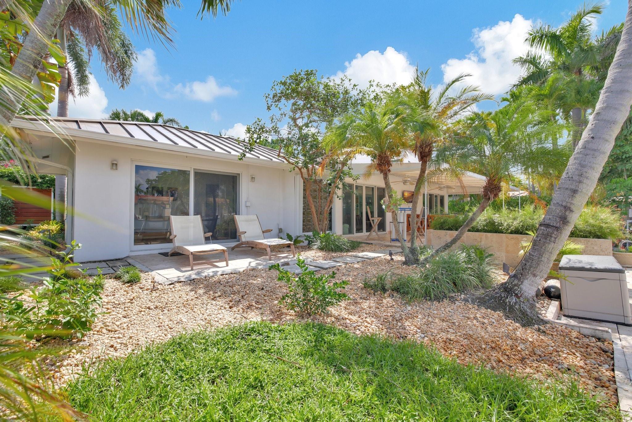 This hidden gem combines a very private pool w/no fixed bridges to the ocean in a lush tropical setting. Location is convenience itself, in the heart of Coral Ridge w/its Bayview Elementary District, near the beach, Intracoastal and city services, shopping and entertainment. A 3 bed, 2 1/2 bath, 2 car garage (a/c mini split) home with gorgeous restored terrazzo floors, hi end appliances, beautiful countertops and backsplashes, the floor plan has the flow of a modern, open plan with defined spaces for dining, entertaining, home office, wet bar/media room plus 600 sf covered outdoor space. Dock with power, water, 12,000 lb lift, jet ski lift. Separate irrigation meter, new roof 2020, new AC 2022. Tropical, beautiful, this home is iin move in condition for your most discerning clients.