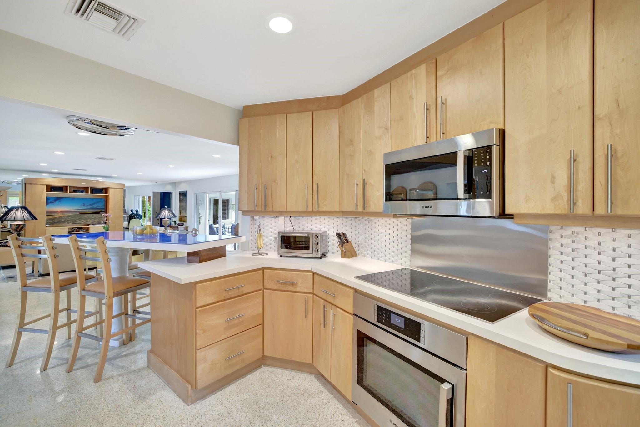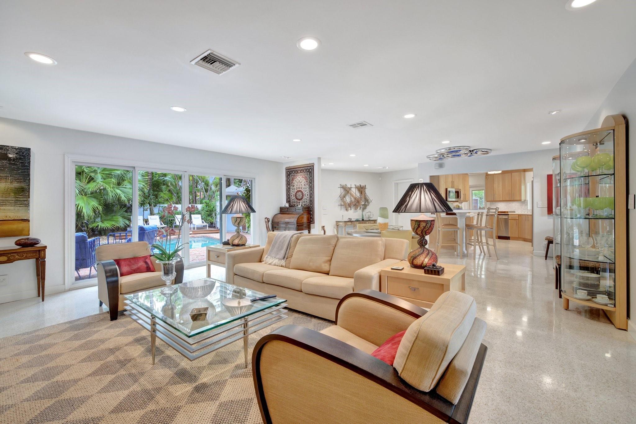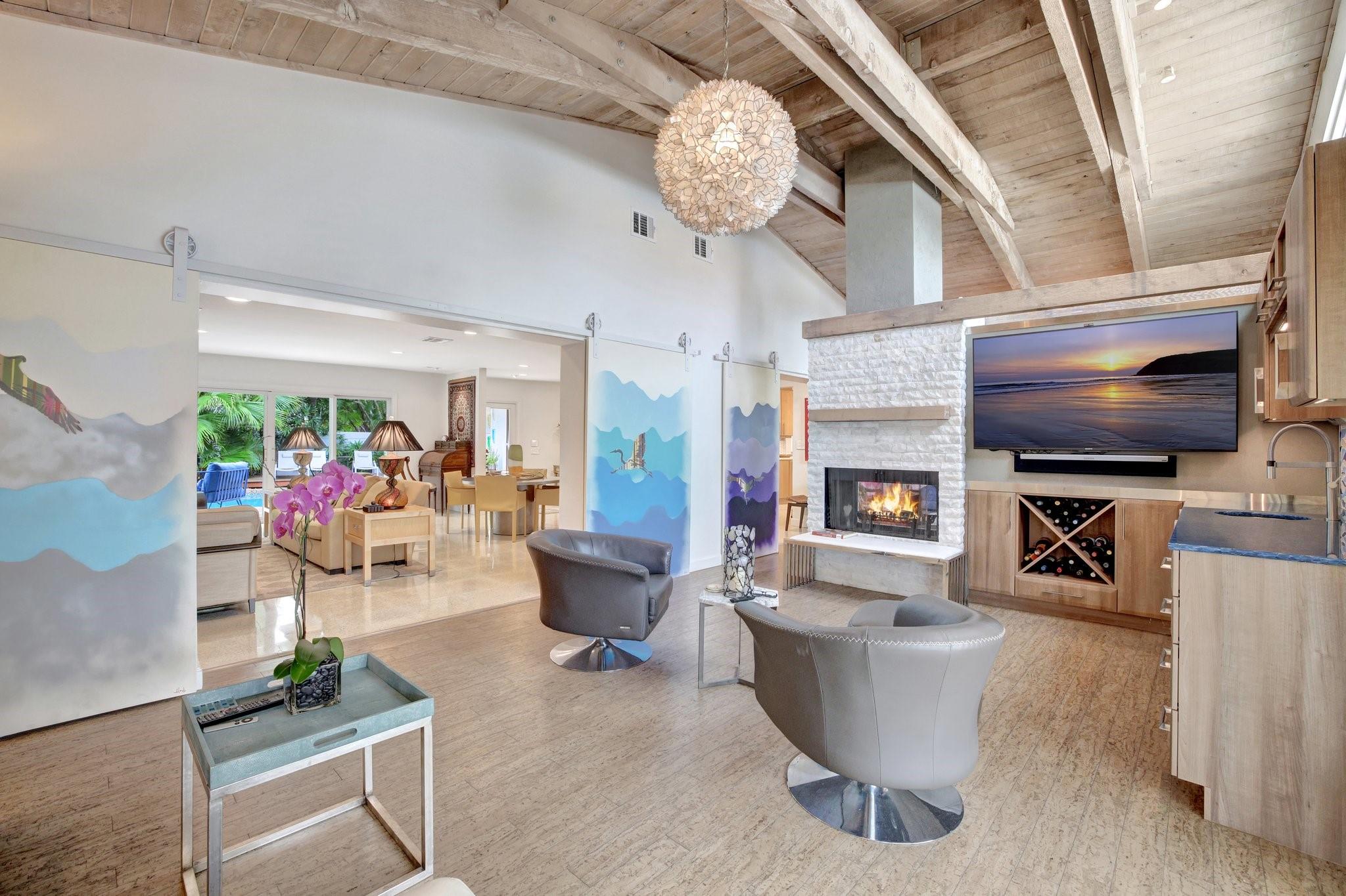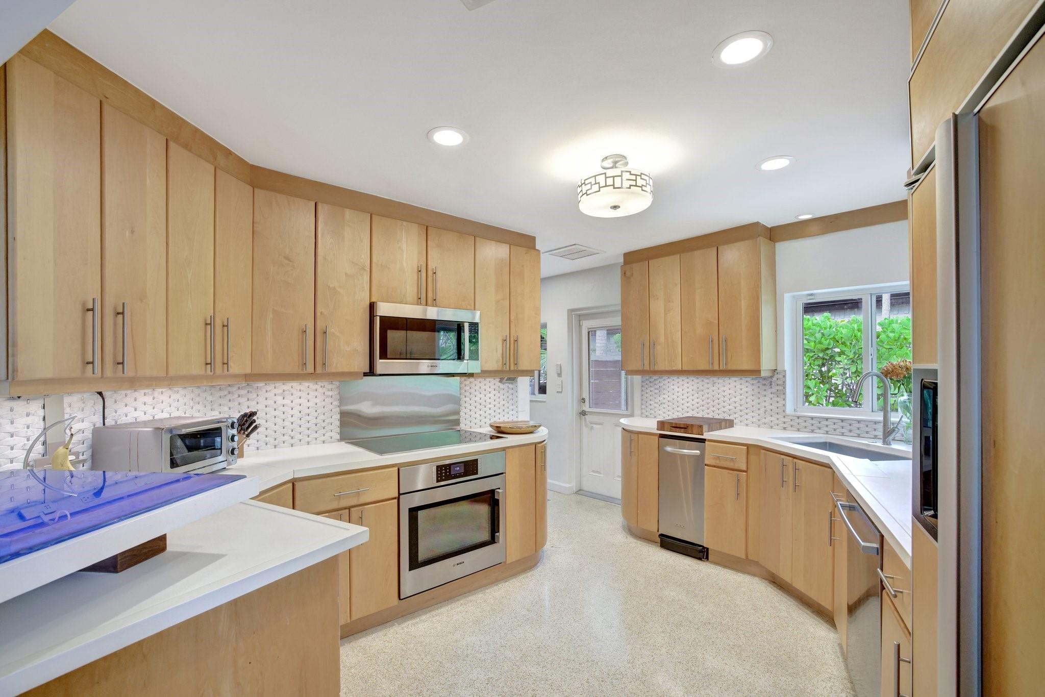 This hidden gem combines a very private pool w/no fixed bridges to the ocean in a lush tropical setting. Location is convenience itself, in the heart of Coral Ridge w/its Bayview Elementary District, near the beach, Intracoastal and city services, shopping and entertainment. A 3 bed, 2 1/2 bath, 2 car garage (a/c mini split) home with gorgeous restored terrazzo floors, hi end appliances, beautiful countertops and backsplashes, the floor plan has the flow of a modern, open plan with defined spaces for dining, entertaining, home office, wet bar/media room plus 600 sf covered outdoor space. Dock with power, water, 12,000 lb lift, jet ski lift. Separate irrigation meter, new roof 2020, new AC 2022. Tropical, beautiful, this home is iin move in condition for your most discerning clients.