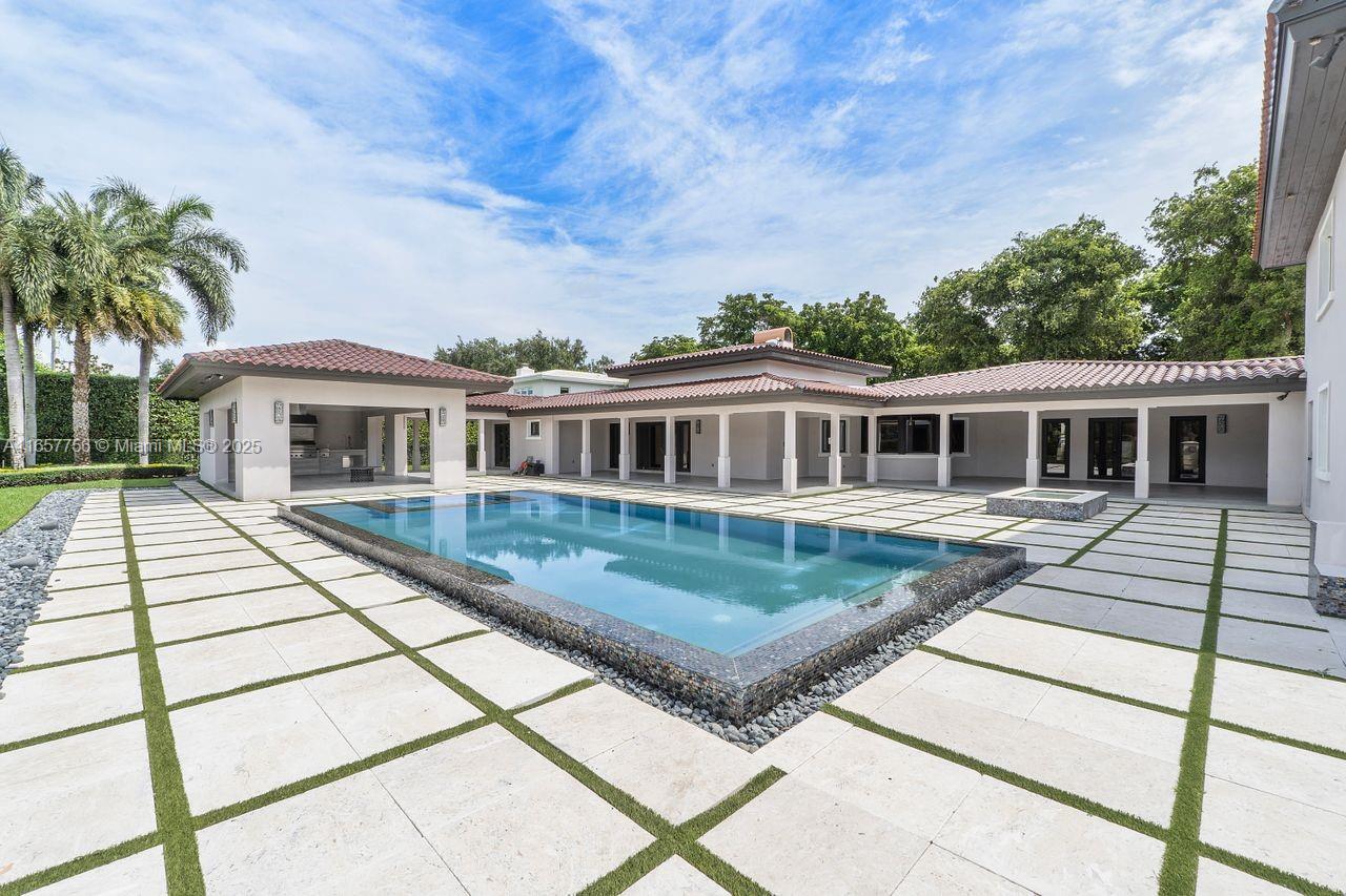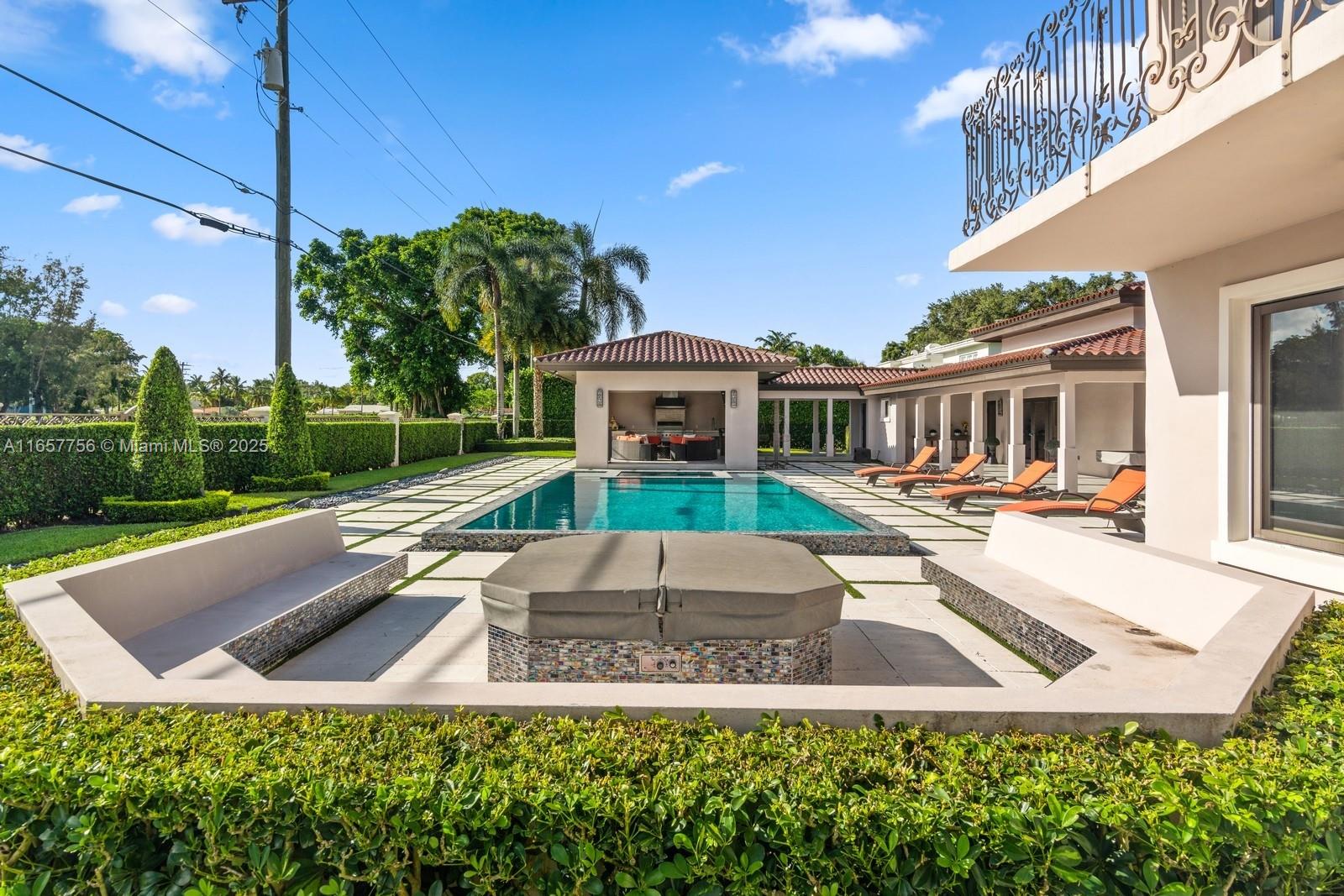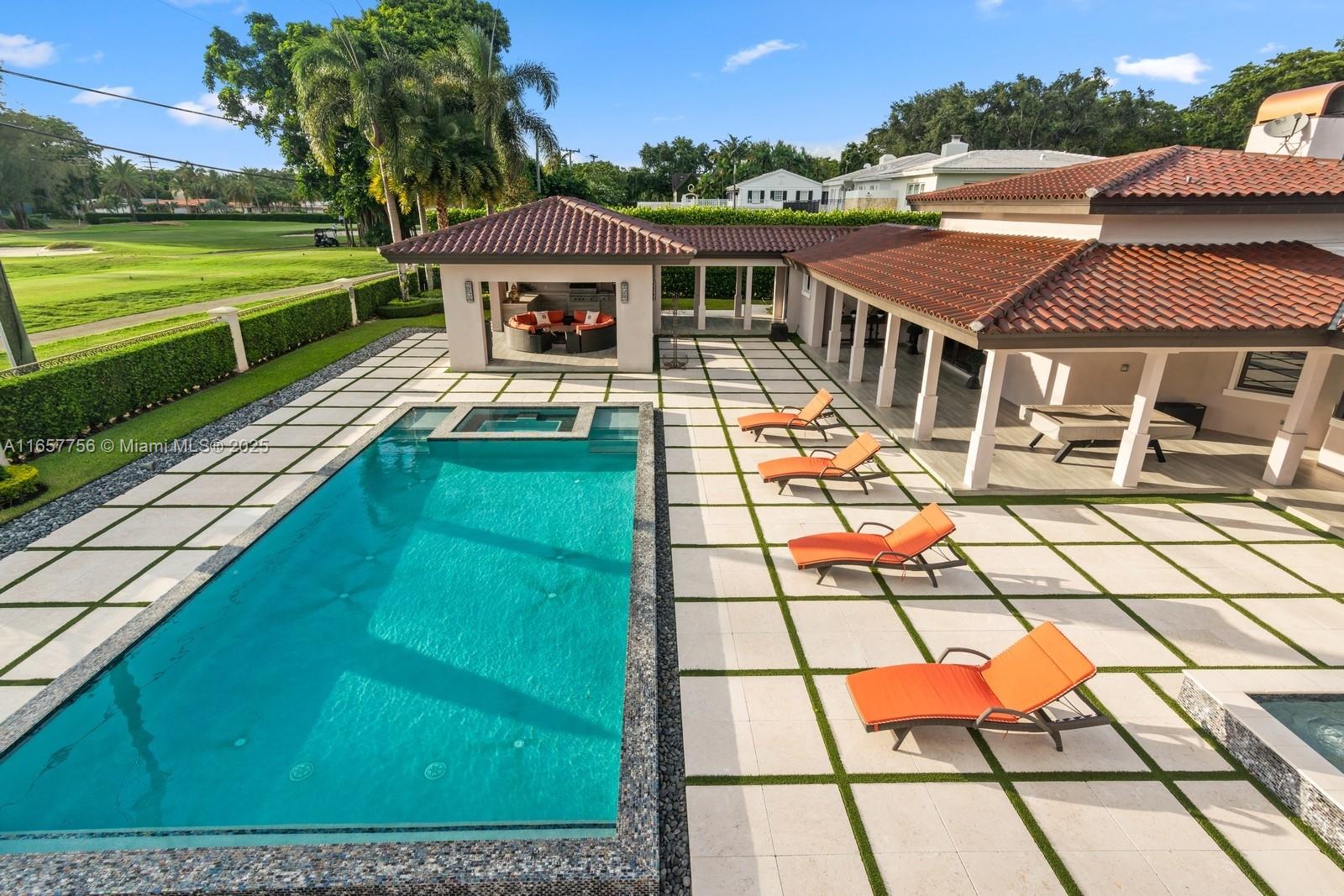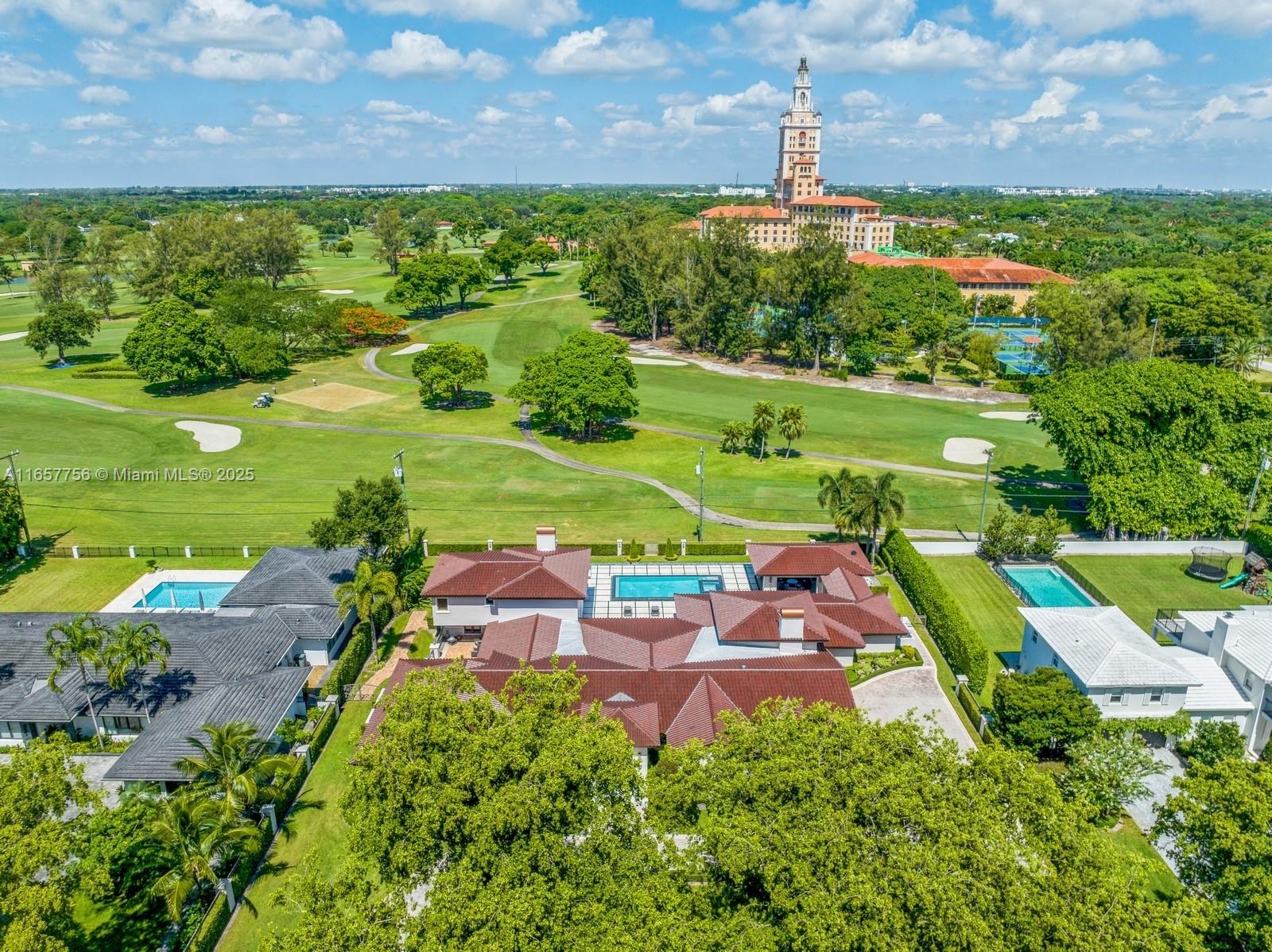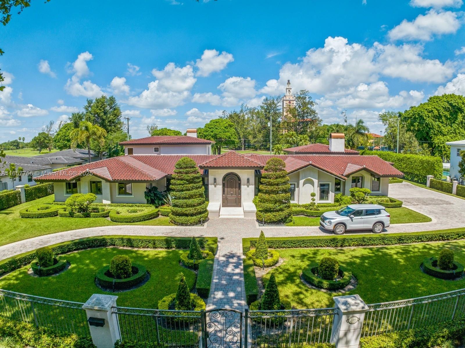 Stunning Coral Gables residence in the Golden Triangle on the Biltmore Golf Course. Step into an opulent grand foyer, where an exposed wood beam ceiling elegantly crowns the formal living room. The expansive dining room showcases Brazilian wood floors and trim, flowing into the family room with amazing pool and golf views. Ascend to the second floor to discover the primary suite, offering serene and endless views of the golf course. The gourmet kitchen is a culinary masterpiece, featuring a bespoke French gas range by LA Cornue, floor-to-ceiling cabinetry and a butler’s pantry. You will fall in love with the outdoor patio--an entertainer’s dream, complete with a summer kitchen, pool, heated jacuzzi and lush greenery . Ideally located near upscale dining and premier shopping.