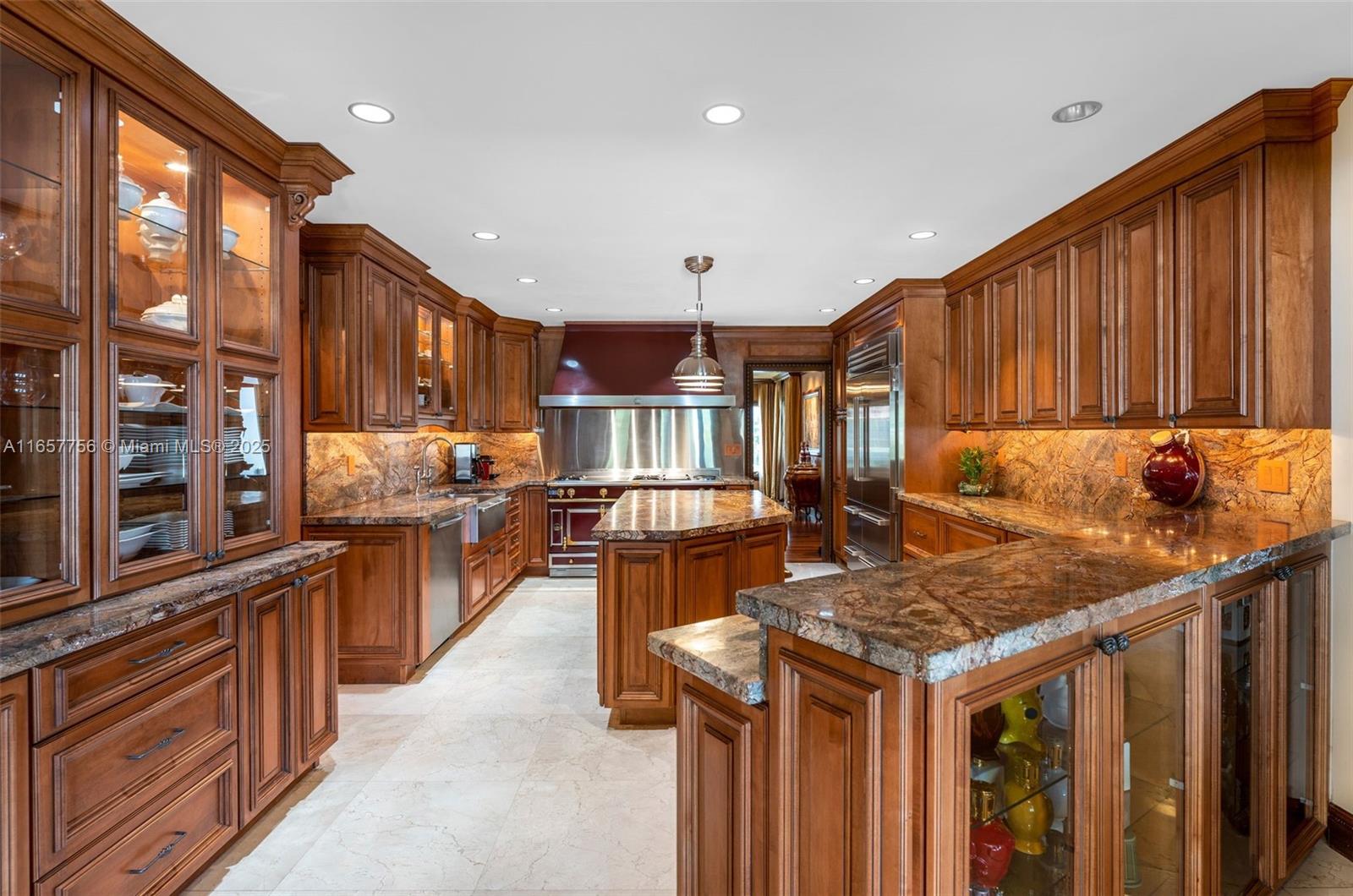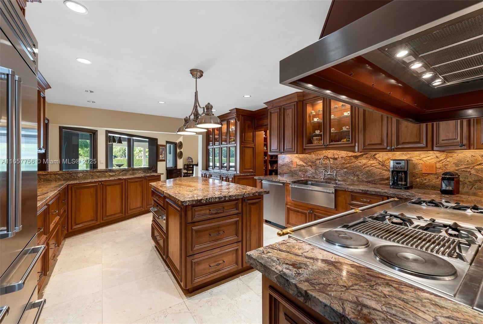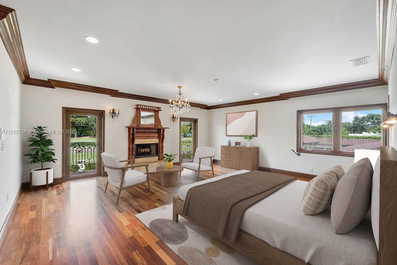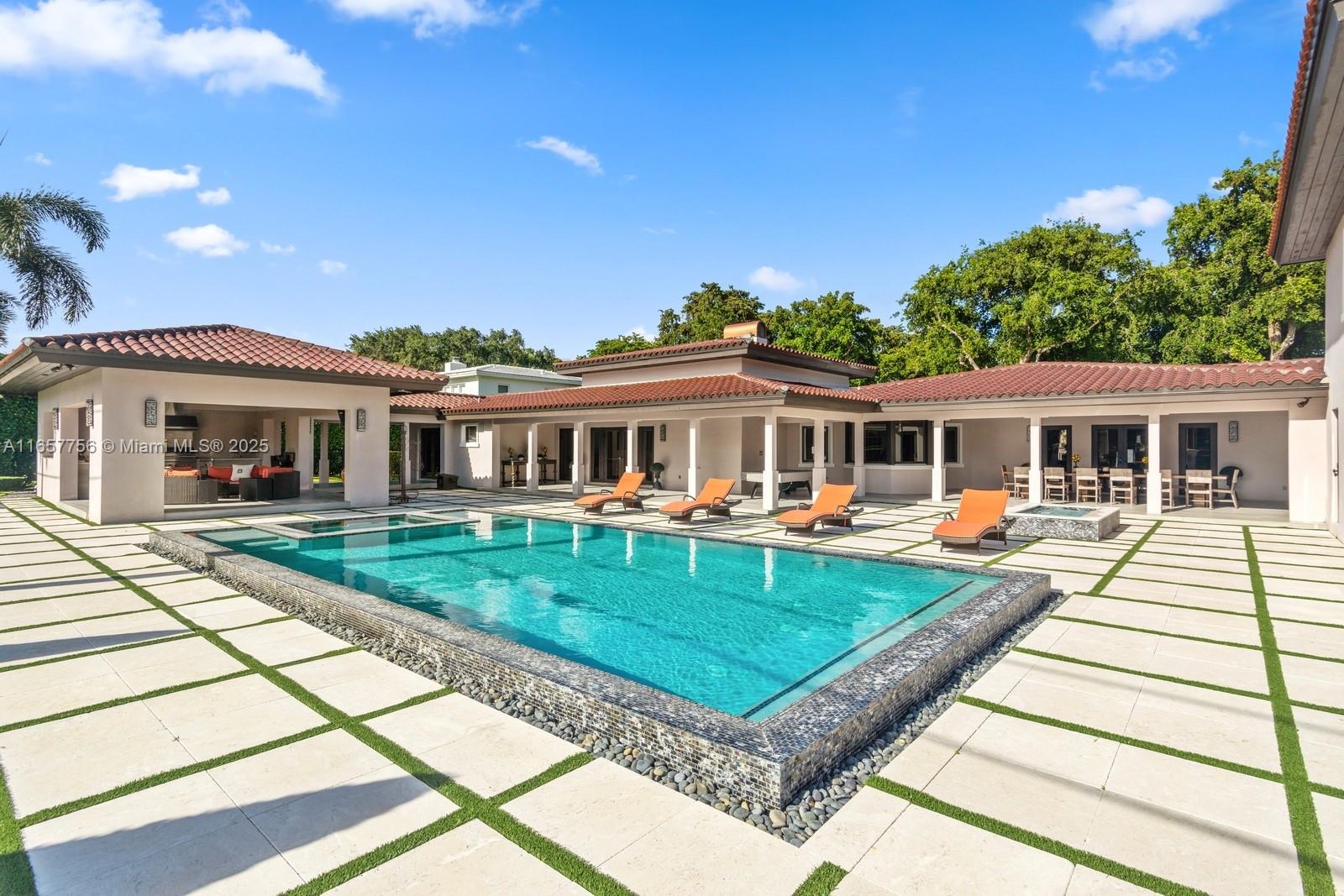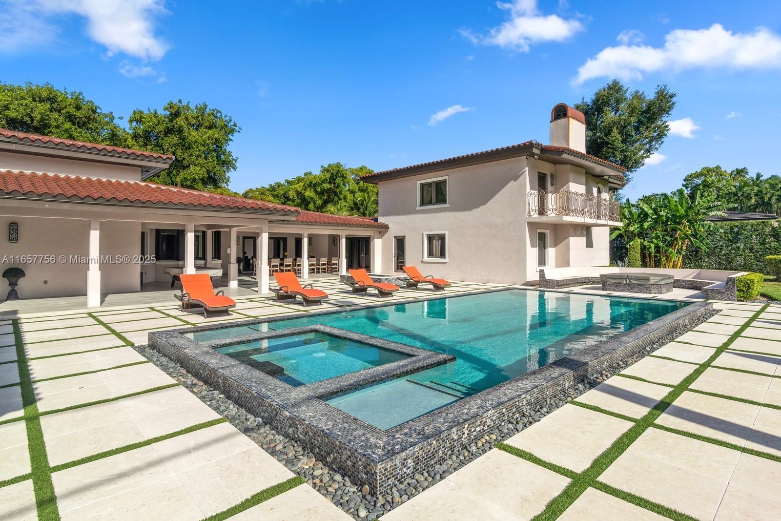Stunning Coral Gables residence in the Golden Triangle on the Biltmore Golf Course. Step into an opulent grand foyer, where an exposed wood beam ceiling elegantly crowns the formal living room. The expansive dining room showcases Brazilian wood floors and trim, flowing into the family room with amazing pool and golf views. Ascend to the second floor to discover the primary suite, offering serene and endless views of the golf course. The gourmet kitchen is a culinary masterpiece, featuring a bespoke French gas range by LA Cornue, floor-to-ceiling cabinetry and a butler’s pantry. You will fall in love with the outdoor patio--an entertainer’s dream, complete with a summer kitchen, pool, heated jacuzzi and lush greenery . Ideally located near upscale dining and premier shopping.