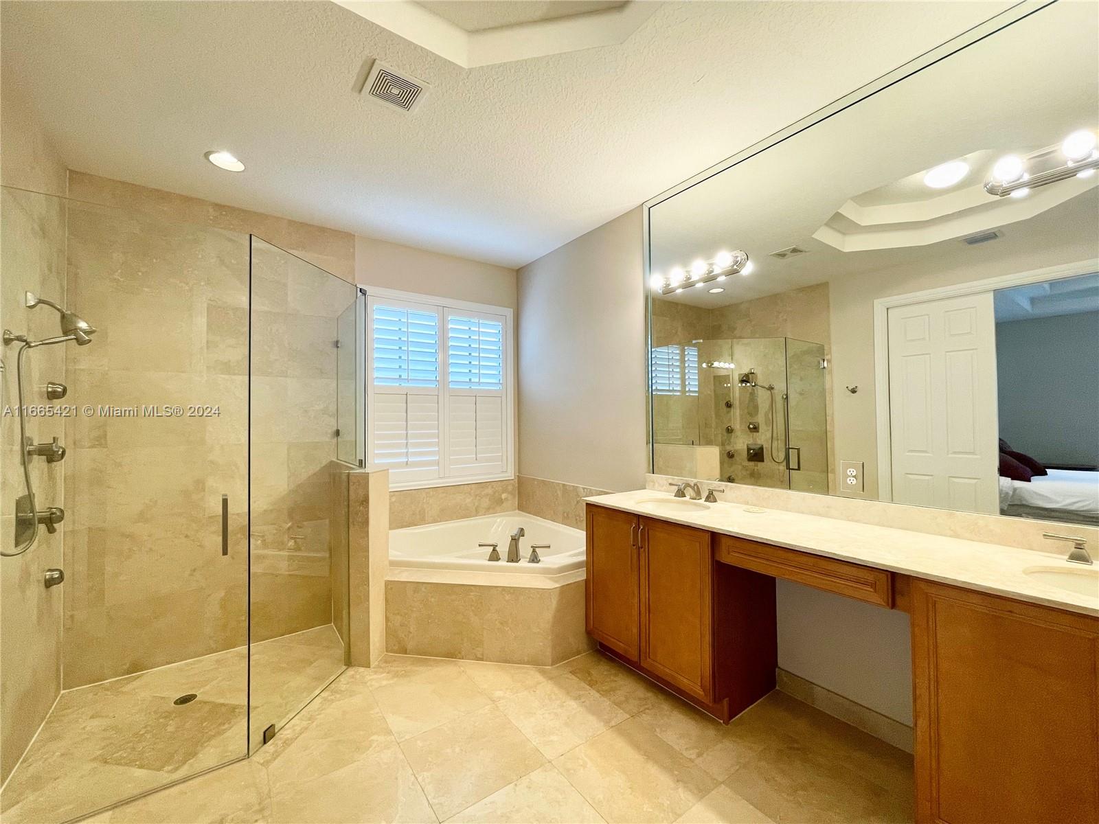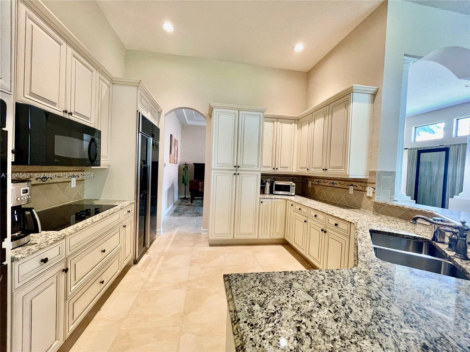 STUNNING HOME IN ESTADA! RARELY AVAILABLE 4/3 SINGLE STORY HOME WITH POOL AND OVERSIZED 3 CAR GARAGE. 12' CEILINGS WITH FANS IN EVERY ROOM, TILE FLOORS, LAUNDRY ROOM,GOURMET KITCHEN WITH COUNTER DEPTH REFRIGERATOR, DOUBLE OVENS, FLAT TOP RANGE, DOUBLE SINK,GRANITE COUNTER TOPS, FORMAL DINING ROOM. LARGE MASTER BEDROOM WITH DOUBLE WALK-IN CLOSETS AND A SPA-LIKE MASTER BATH WITH A JACUZZI TUB, MULTI-JET SHOWER AND DOUBLE SINKS.