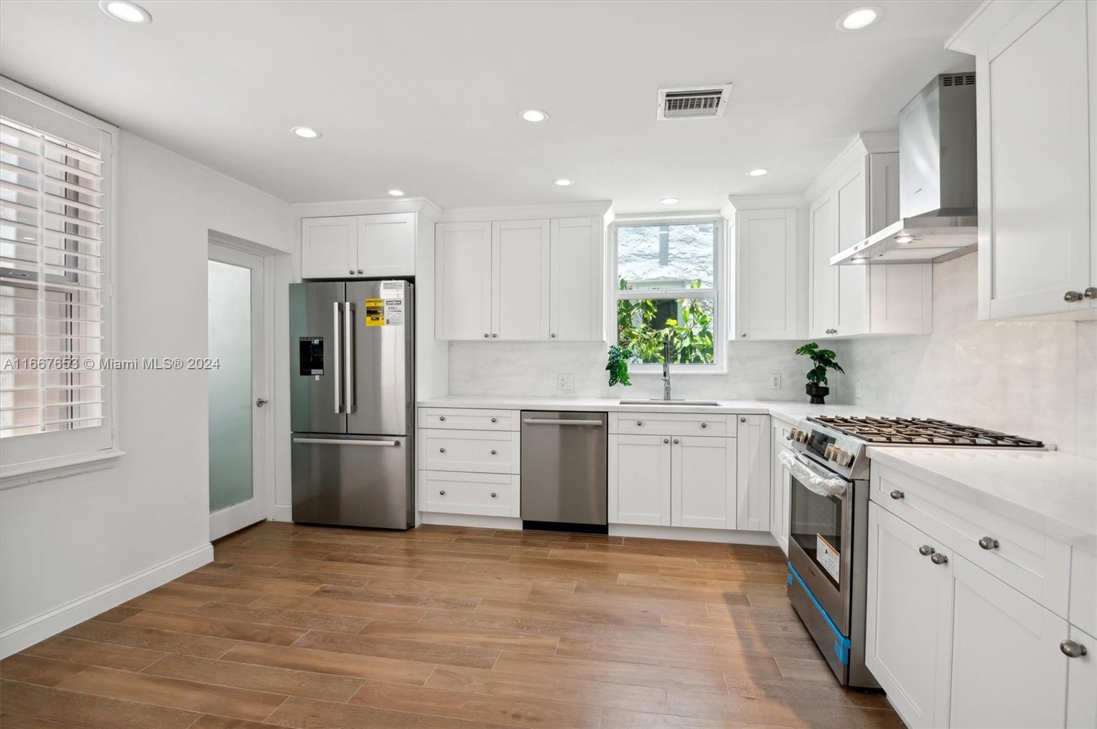 One of the best locations in the South Coral Gables! Move-in ready, updated two-story bright and spacious 3 bed/2.5 bath plus large one-car garage residence in a highly sought-after neighborhood. Beautiful, safe, low-traffic & pedestrian friendly street including dual sidewalks with mature trees. House features a double door entrance, newly installed kitchen with Bosch appliances including a gas stove, laundry room w/ new washer & dryer, two new A/C units, ducts & insulation, impact windows & doors, high ceilings, plantation shutters on large windows throughout, hardwood flooring, porcelain tiles, and PVC plumbing pipes. This lovely residence is located near excellent private and public schools, including Sunset Elementary, a multi-language magnet school. No flood zone.