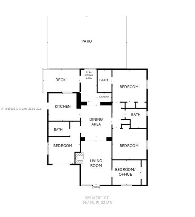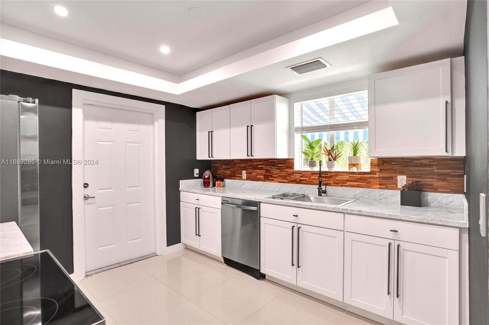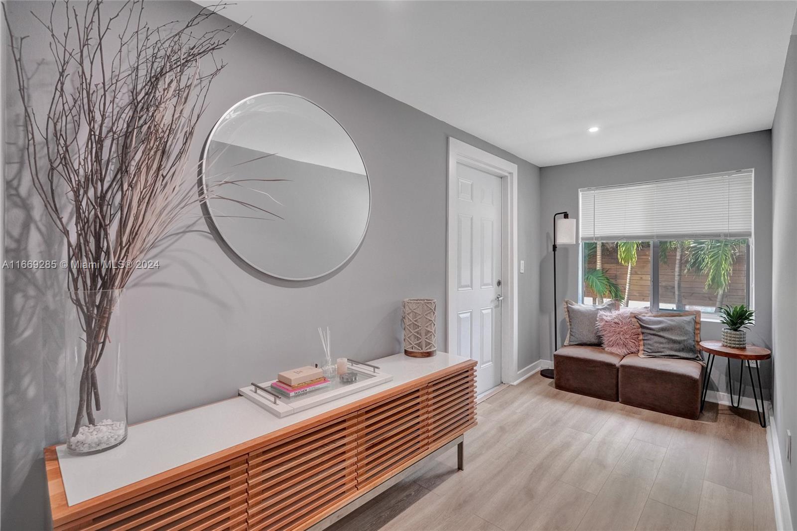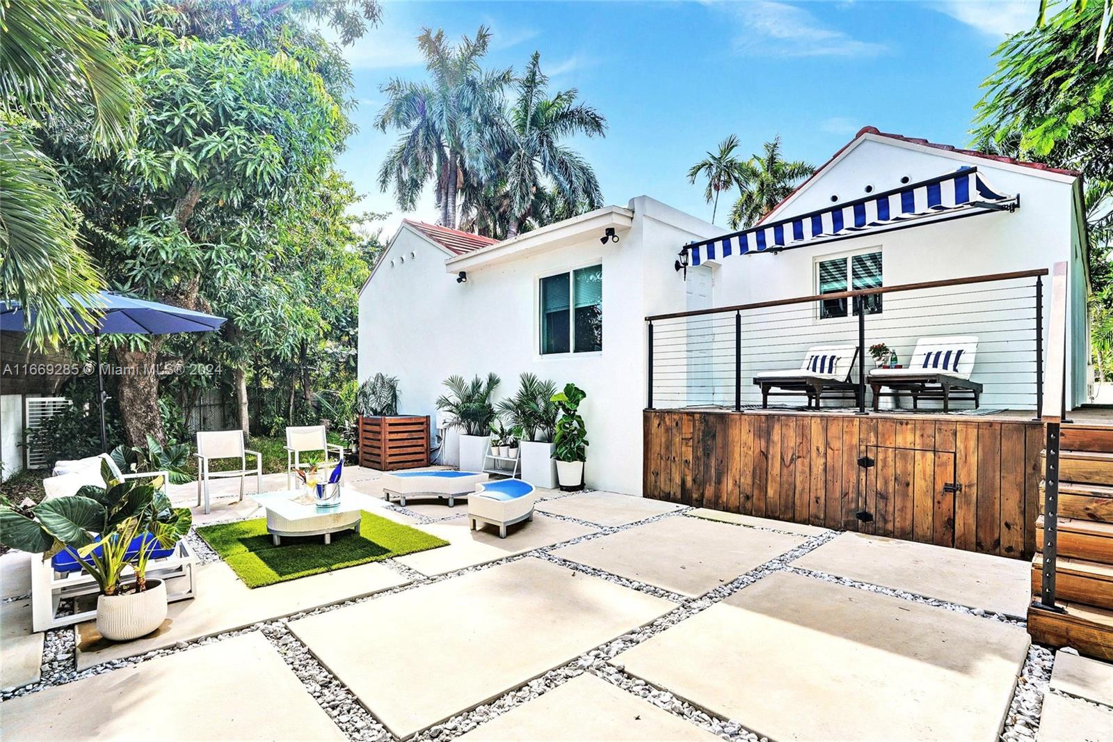 This exceptional home in Shorecrest offers 4 bedrooms and 3 bath on an expansive 8,800 sq. ft. lot surrounded by stunning multi-million dollar homes. Perfect for modern family living, it features beautiful new floors, tiled porch, and renovated bathrooms, kitchen, and laundry room for a touch of luxury. Circular driveway with electronic privacy gate ensures safety for children and pets, impact windows and doors provide added security. The airy den boasts cathedral ceilings and floor-to- ceiling fireplace. The outdoor space includes an elevated deck, custom pavers, mature mango and papaya trees with ample room to add a guesthouse or pool. Furnished ready for Airbnb Minutes from the beach and within walking distance to North Miami Marina, waterfront pocket park and beautiful Biscayne Bay.