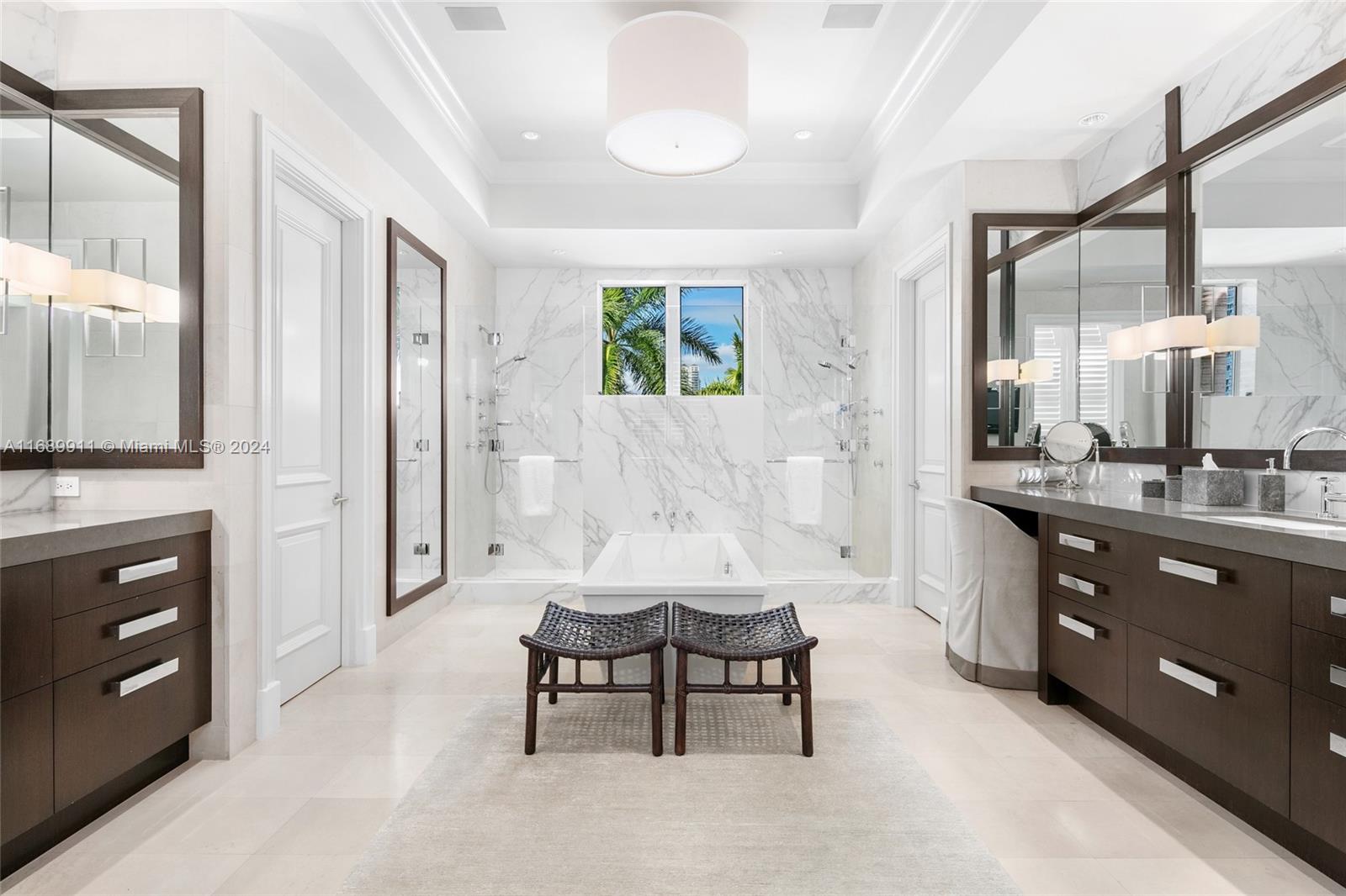 Experience unparalleled luxury in this private waterfront estate with open bay views ? a rarity in Aventura, offering 5 bedrooms, 6 full baths, & 2 half baths. Situated along 251' of expansive bayfront in Aventura?a city celebrated for its upscale lifestyle, world-class shopping, & vibrant community?this tri-level residence's exquisite finishes include marble & walnut wood floors, a grand principal suite & waterfront terraces for every bedroom. Designed to seamlessly blend relaxation & entertaining, the home features a summer kitchen, oversized backyard, custom seating areas & a pool with spa. With meticulous attention to detail & thoughtfully curated features, this property embodies the pinnacle of refined waterfront living in one of South Florida's most sought-after locations.