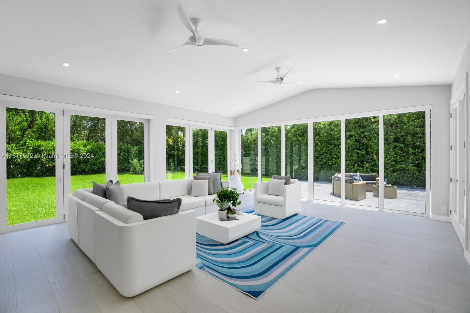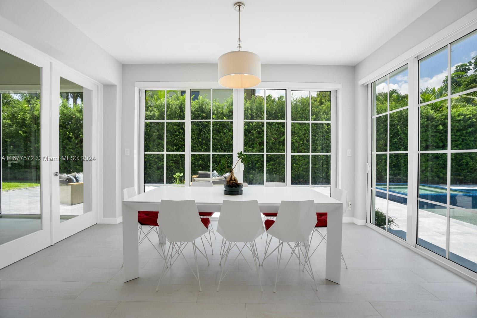 Casa Garden! Welcome to the next level home in the private and gated community of Bay Point. This one-story, fully renovated home sits on an oversized corner lot, featuring a perfect split floor plan with bright open spaces, high ceilings, and an open modern concept where living, family, and dining interacts with the beautiful garden views and the bonus oversized enclosed Florida room with side to side sliding windows. The kitchen offers top-of-the-line appliances, gas range, and a breakfast nook that makes you feel like you're eating in the garden. The outdoors features a spectacular landscape-defining banyan tree, surrounded by spacious green areas and new heated pool with a spa, ideal for entertaining with family and friends. New roof, new impact windows, new bathrooms, new everything!