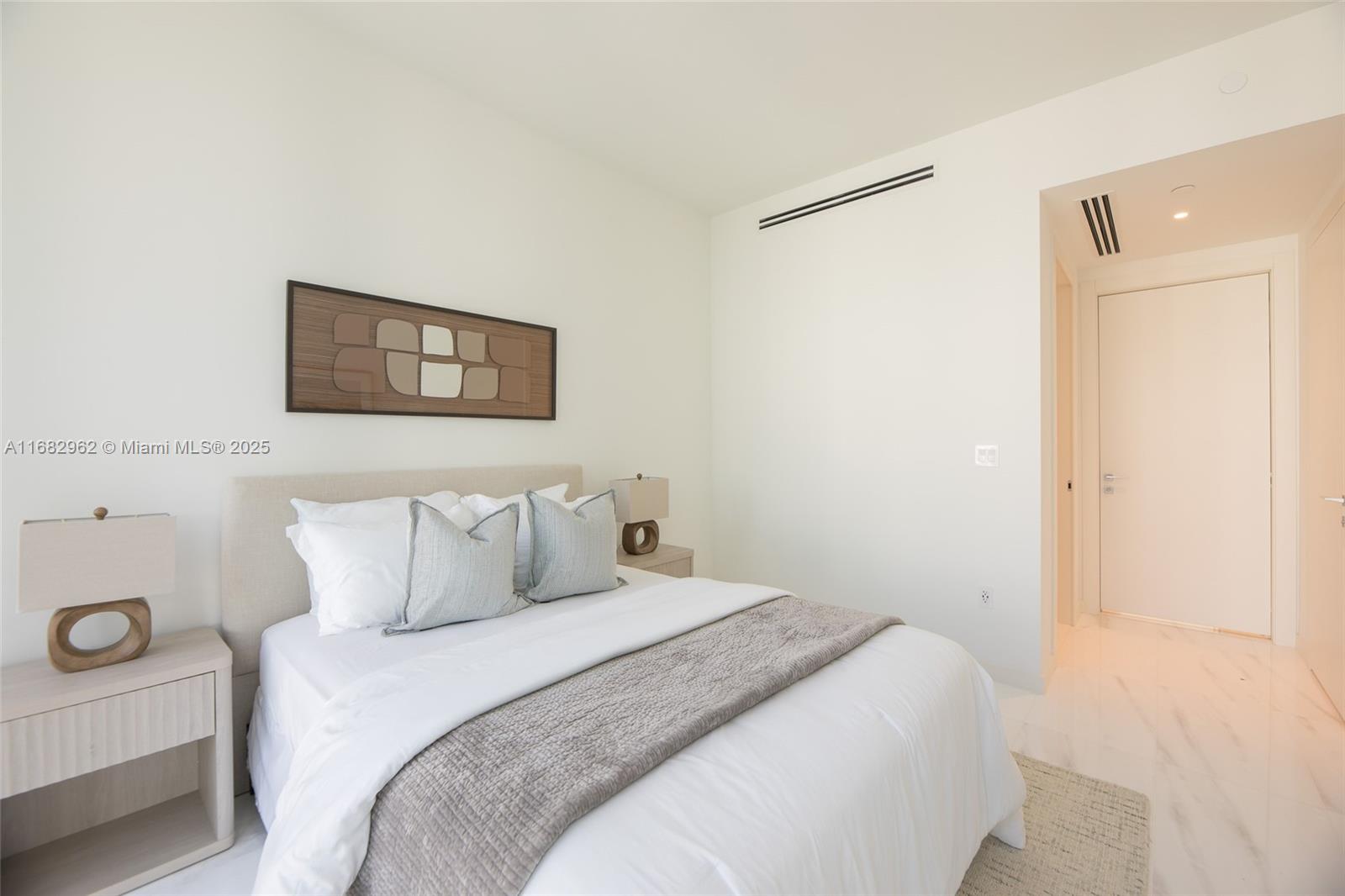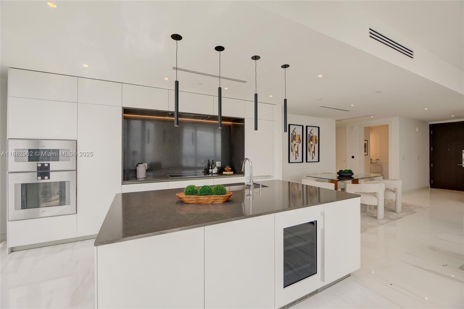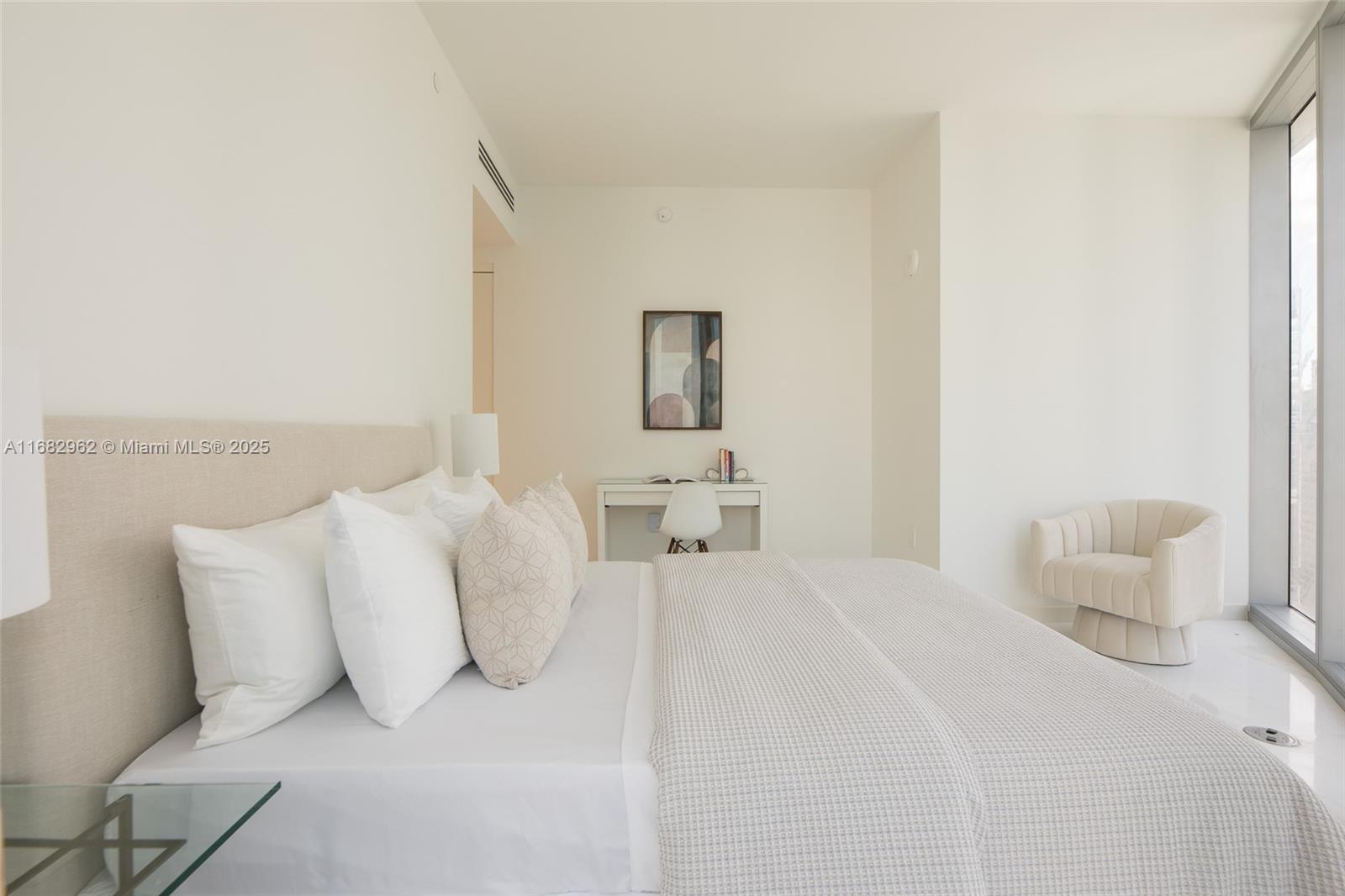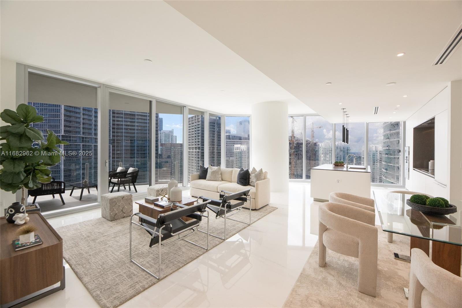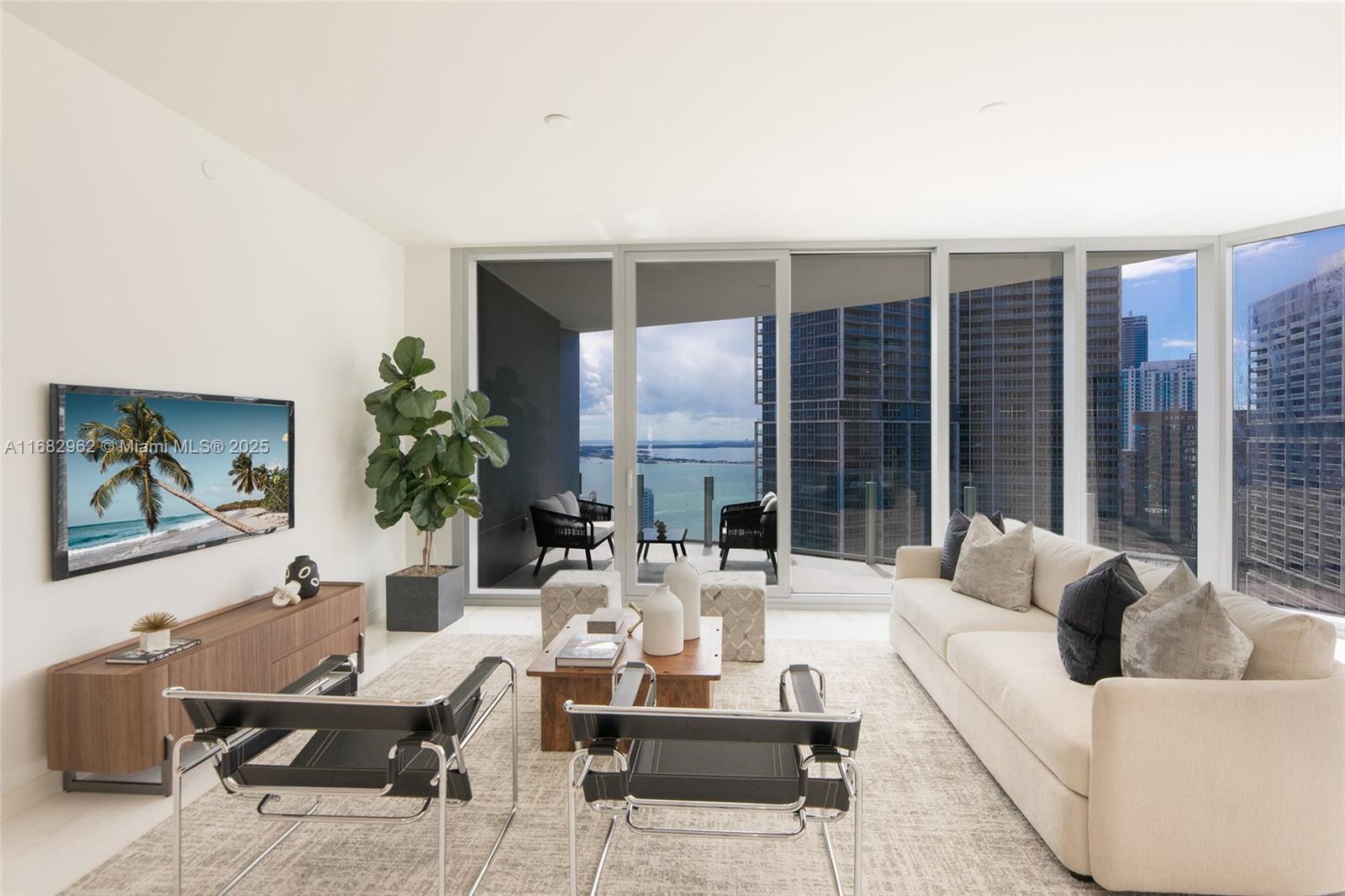 Signature high floor corner unit at the exclusive Aston Martin Residences with breathtaking views of the bay, ocean and the city skyline. This unit features a private elevator directly to your own foyer. Residence offers 10 foot ceilings, 3 generous Bedrooms, the spacious primary bedroom staged with king size bed and the secondary bedrooms with queen size beds, all offering ample closet space. Very desirable floorplan that includes 2 full baths and a powder room. Home is filled with natural light, every room is enhanced by floor to ceiling, impact, soundproof windows. Premium Gaggenau appliances, durable German crafted white cabinetry and exquisite white marble floors imported from Greece. This residence radiates luxury in every detail. Contact listing agent for a private tour.