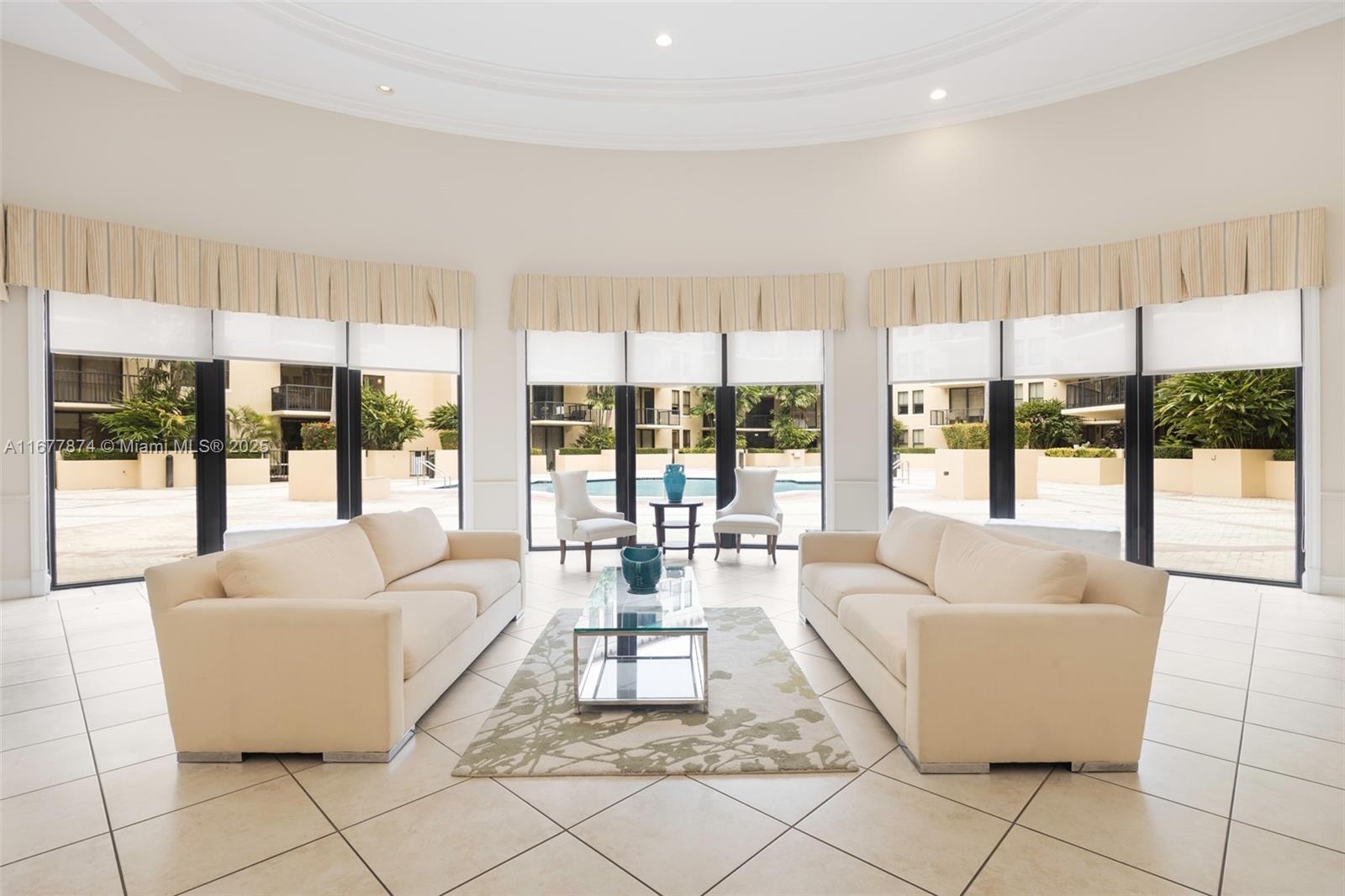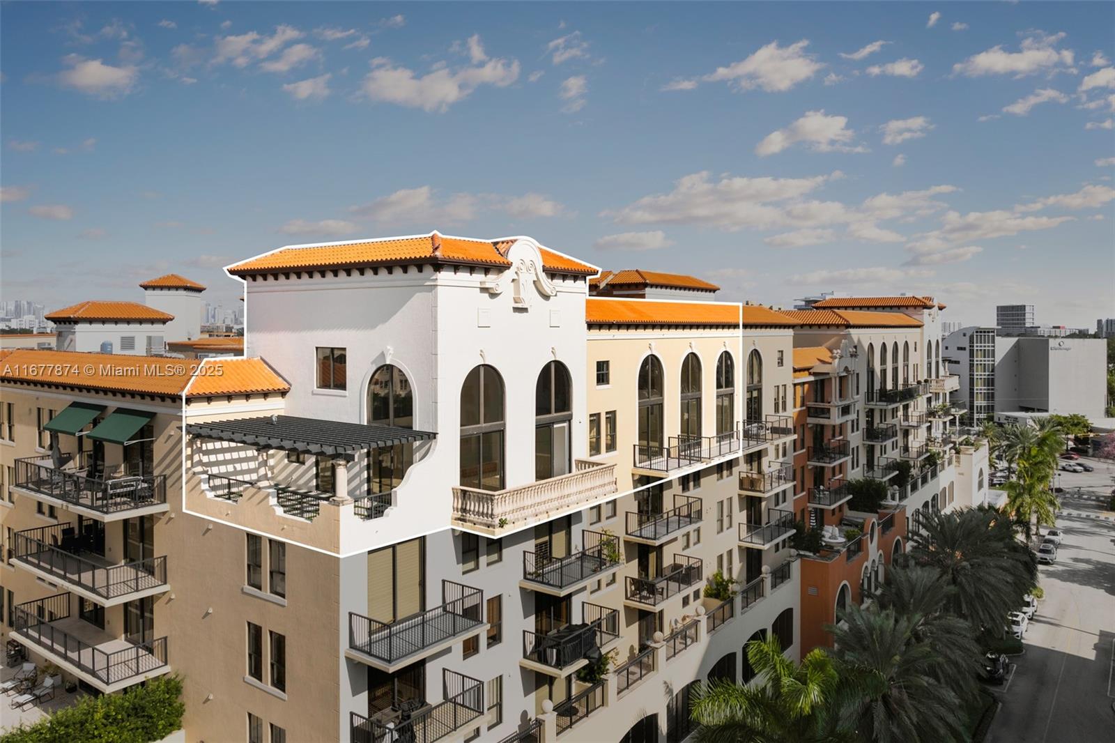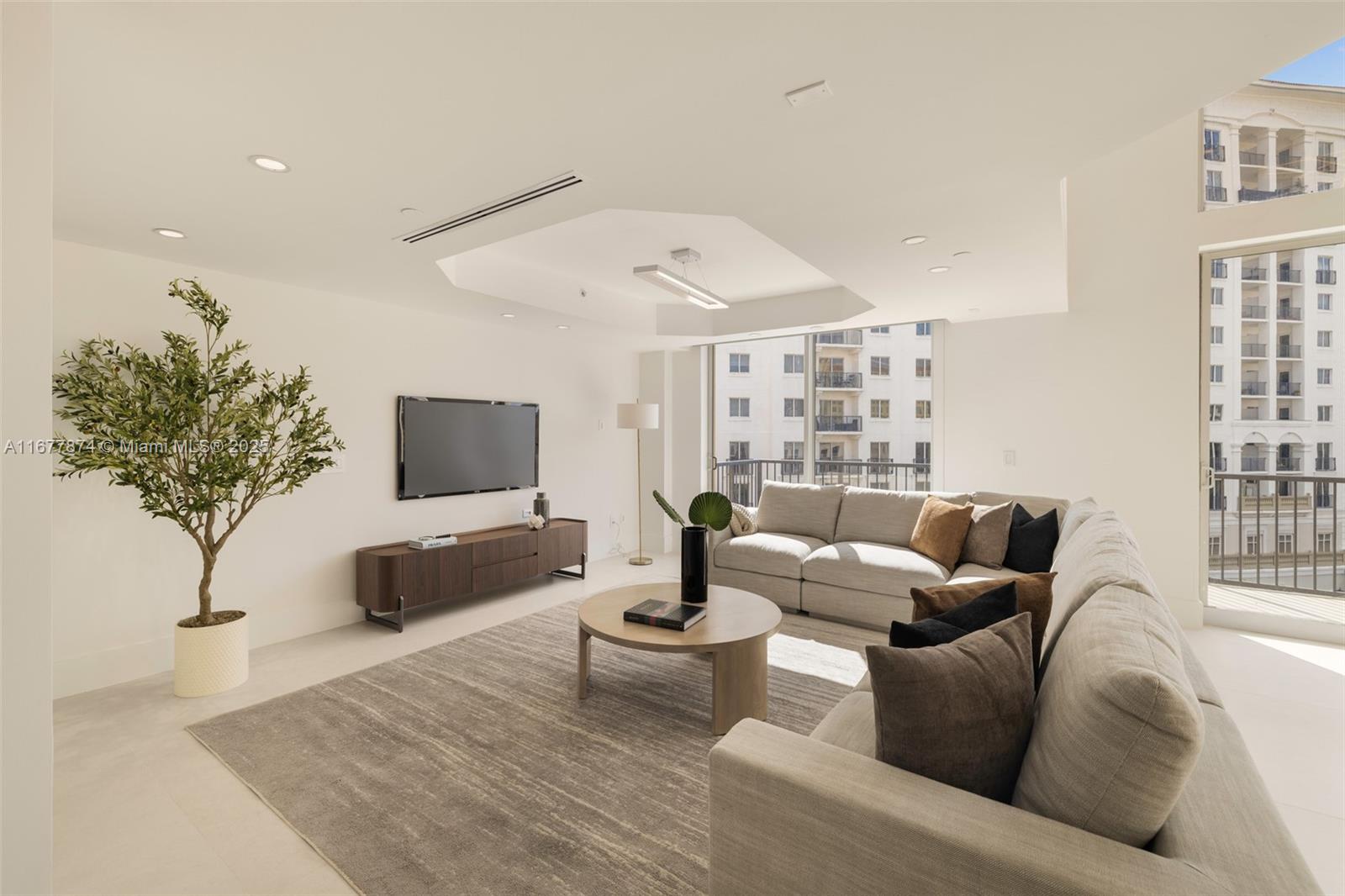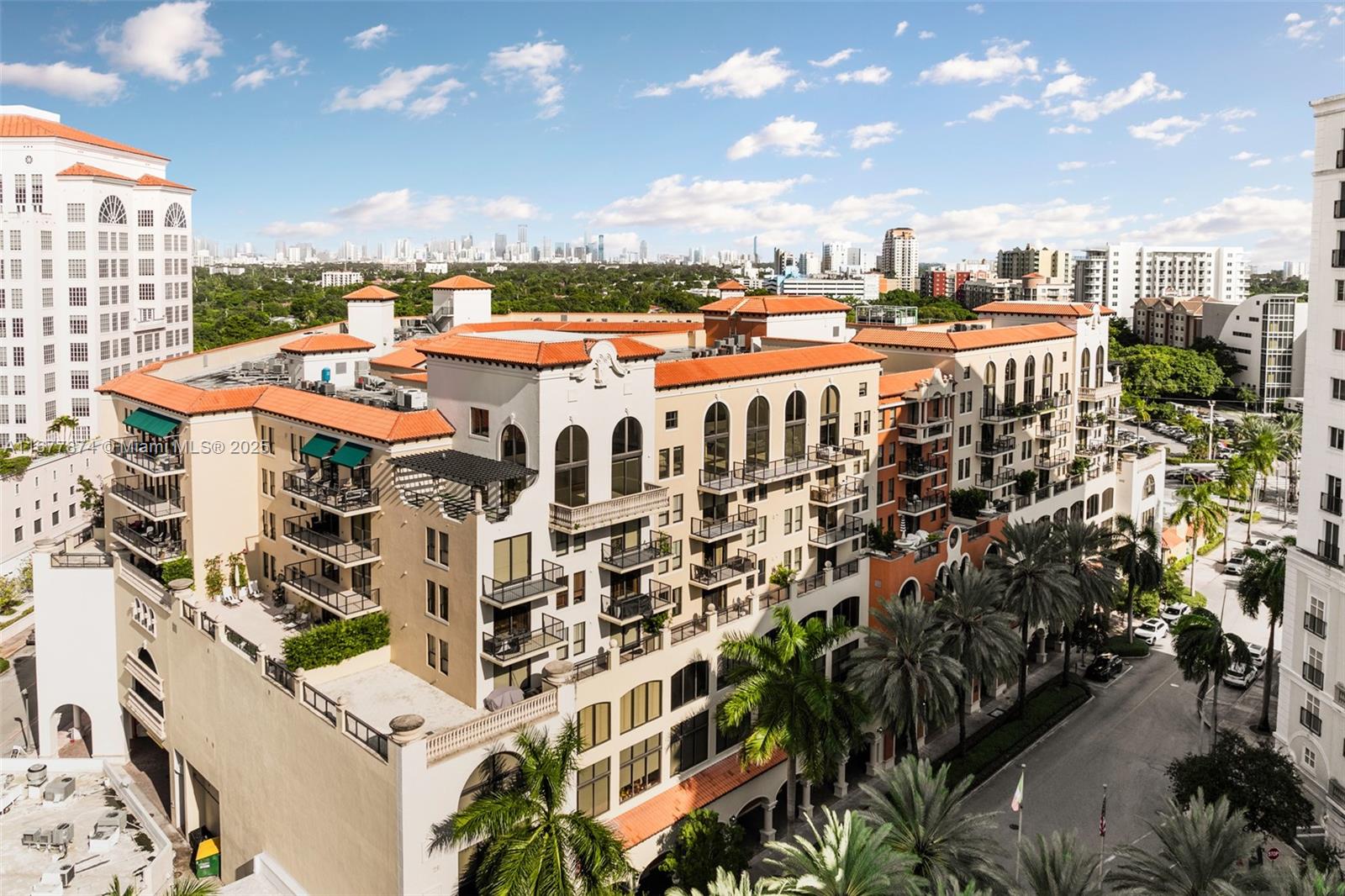 Introducing a newly price-improved 2-story penthouse nestled in the heart of Downtown Coral Gables. This one-of-a-kind residence has been thoughtfully updated to blend luxurious living with modern elegance. Sleek porcelain Beraice 48x48 tiles grace the main living areas, which flow seamlessly onto a massive private terrace. Enjoy the rare convenience of 6 included parking spaces and full concierge services. The open and spacious floor plan is enhanced by soaring 22-foot ceilings in the living and family room areas, creating an airy and inviting atmosphere. The kitchen is equipped with top-of-the-line Gaggenau appliances, perfect for culinary explorations.