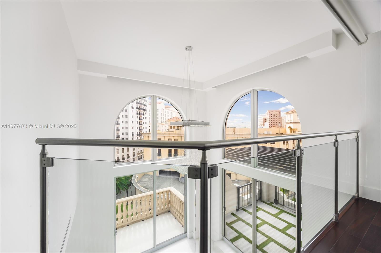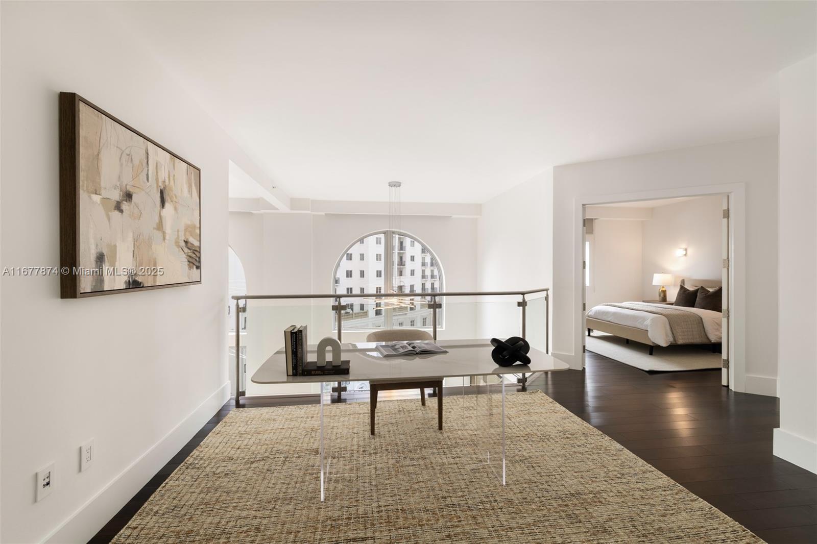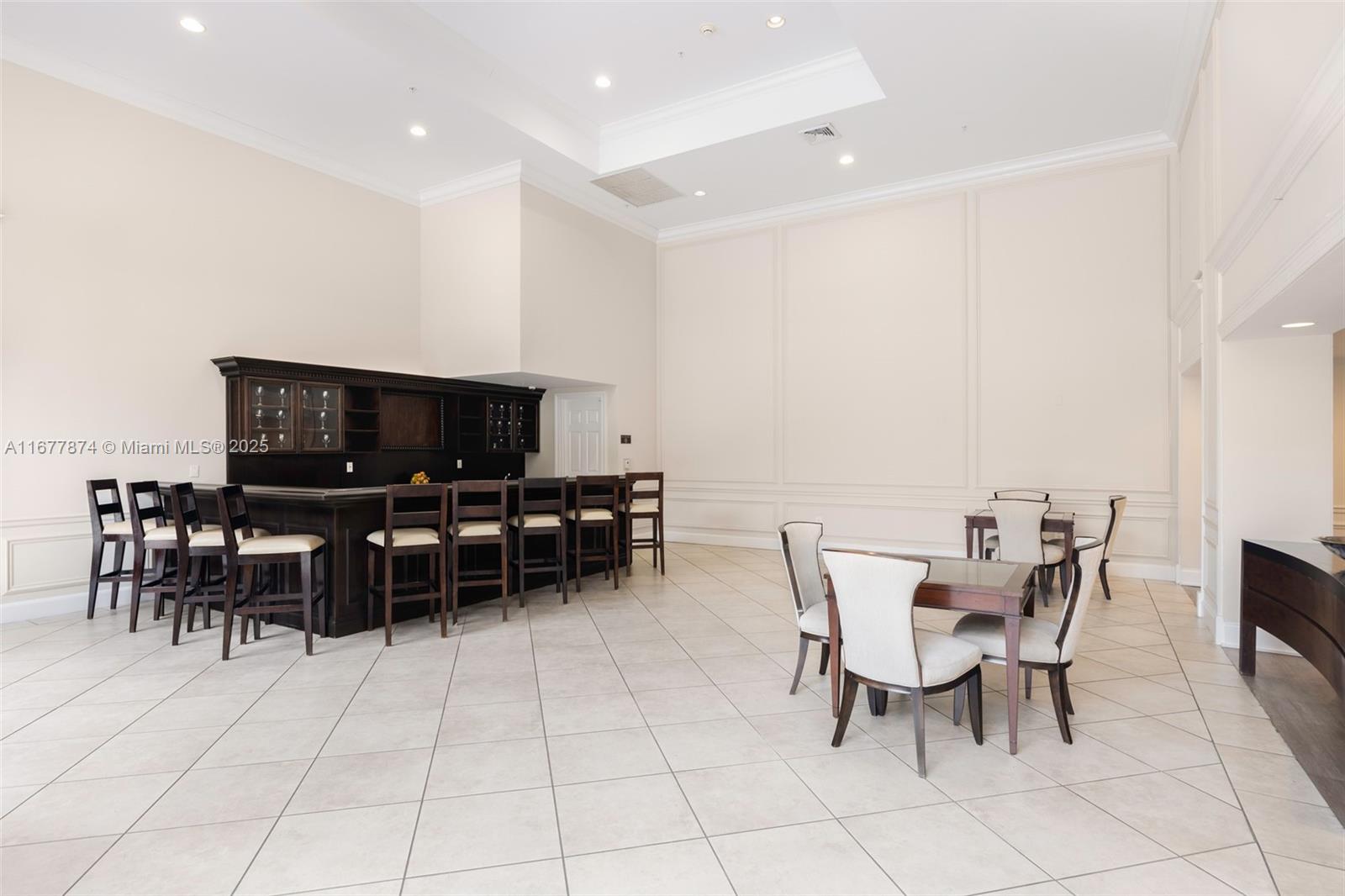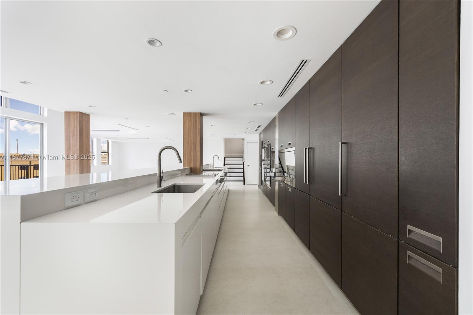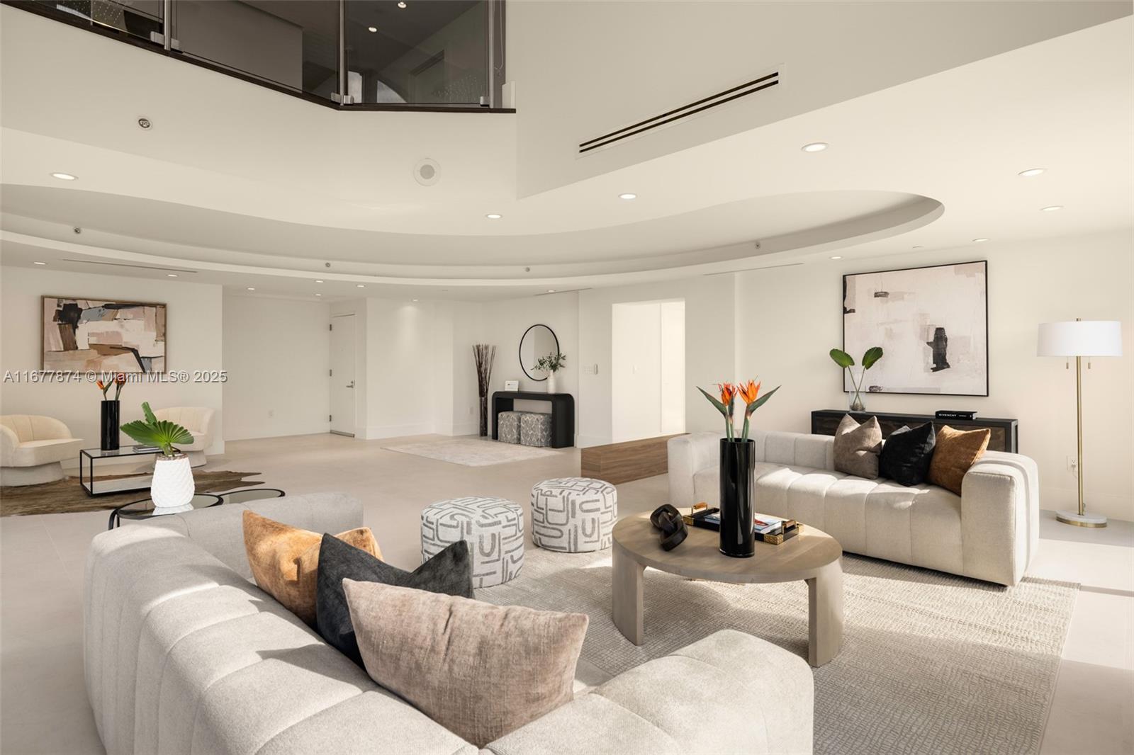 Introducing a newly price-improved 2-story penthouse nestled in the heart of Downtown Coral Gables. This one-of-a-kind residence has been thoughtfully updated to blend luxurious living with modern elegance. Sleek porcelain Beraice 48x48 tiles grace the main living areas, which flow seamlessly onto a massive private terrace. Enjoy the rare convenience of 6 included parking spaces and full concierge services. The open and spacious floor plan is enhanced by soaring 22-foot ceilings in the living and family room areas, creating an airy and inviting atmosphere. The kitchen is equipped with top-of-the-line Gaggenau appliances, perfect for culinary explorations.