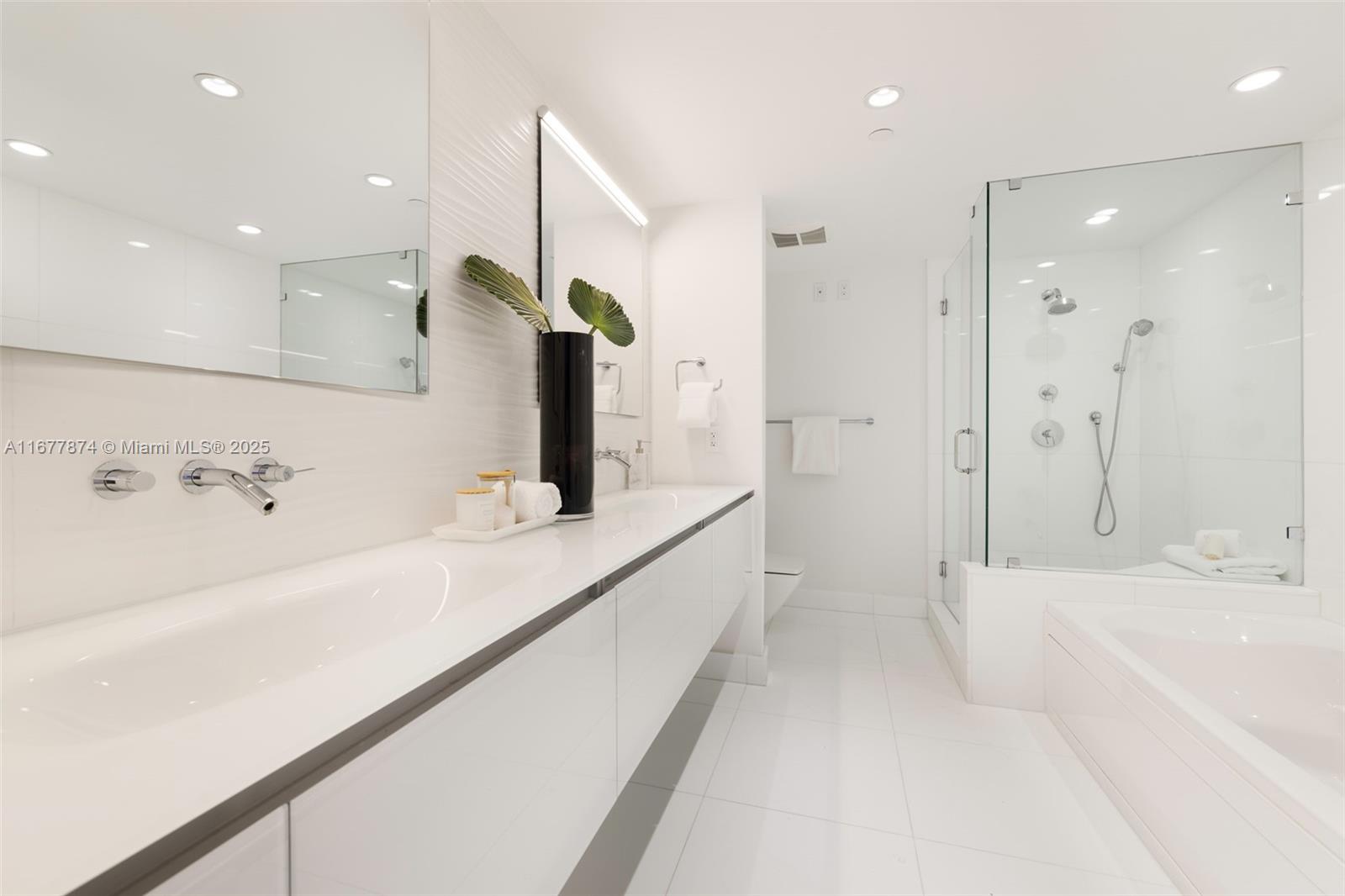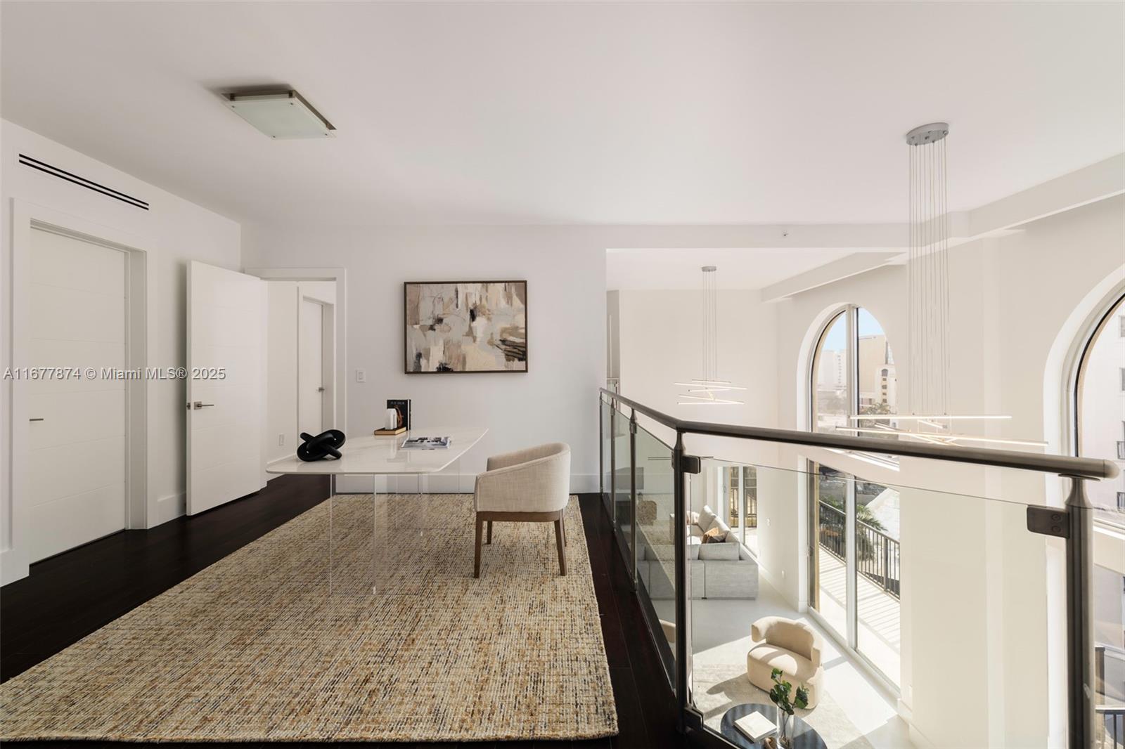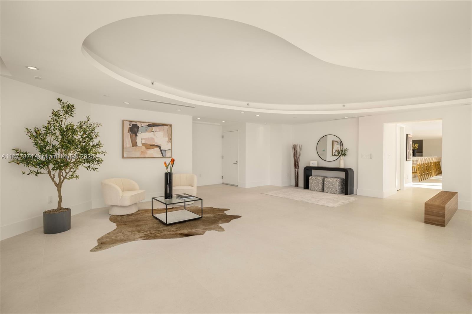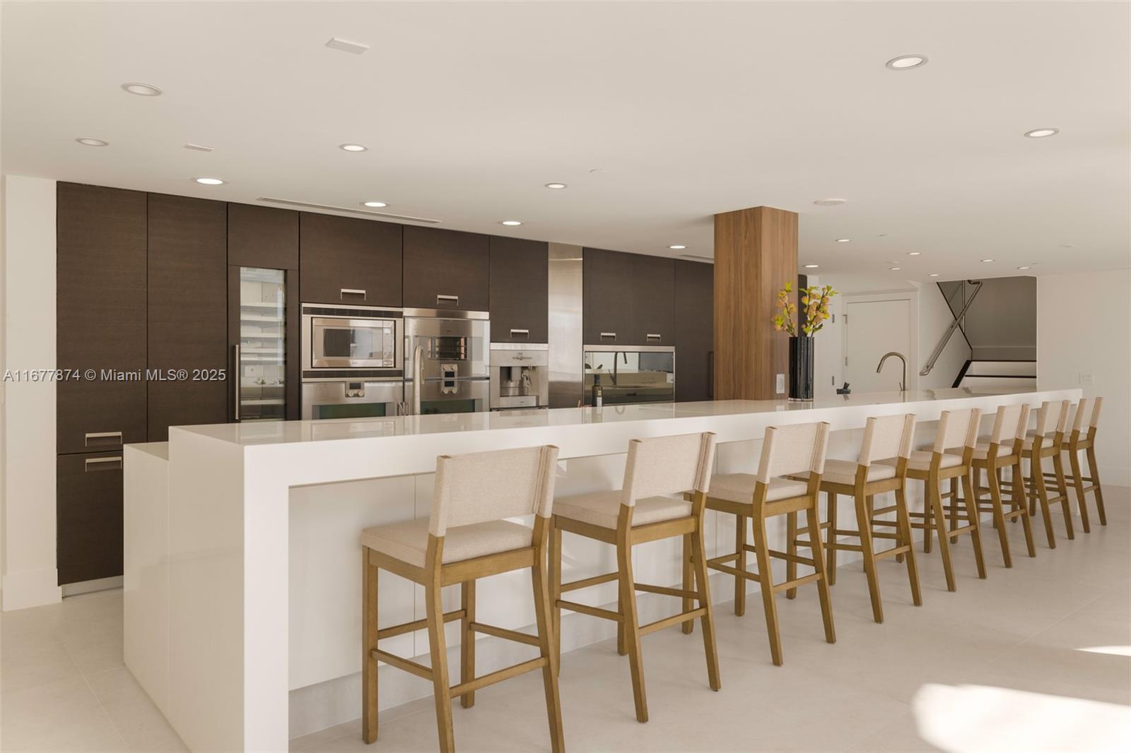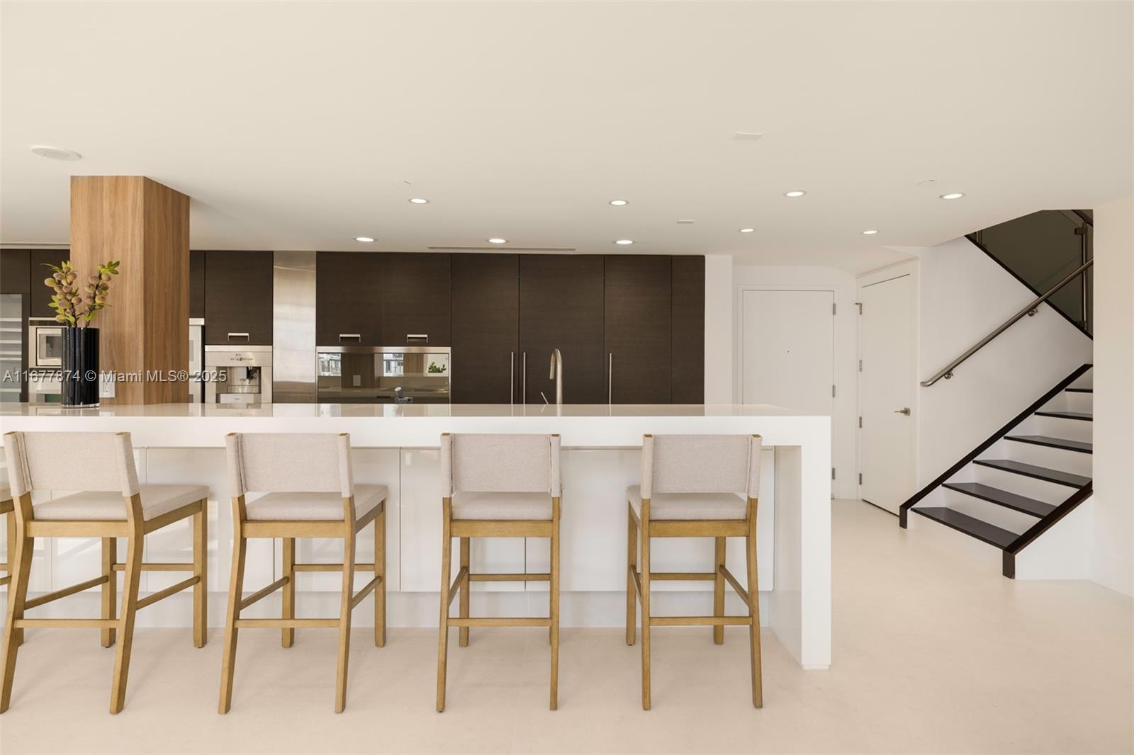 Introducing a newly price-improved 2-story penthouse nestled in the heart of Downtown Coral Gables. This one-of-a-kind residence has been thoughtfully updated to blend luxurious living with modern elegance. Sleek porcelain Beraice 48x48 tiles grace the main living areas, which flow seamlessly onto a massive private terrace. Enjoy the rare convenience of 6 included parking spaces and full concierge services. The open and spacious floor plan is enhanced by soaring 22-foot ceilings in the living and family room areas, creating an airy and inviting atmosphere. The kitchen is equipped with top-of-the-line Gaggenau appliances, perfect for culinary explorations.