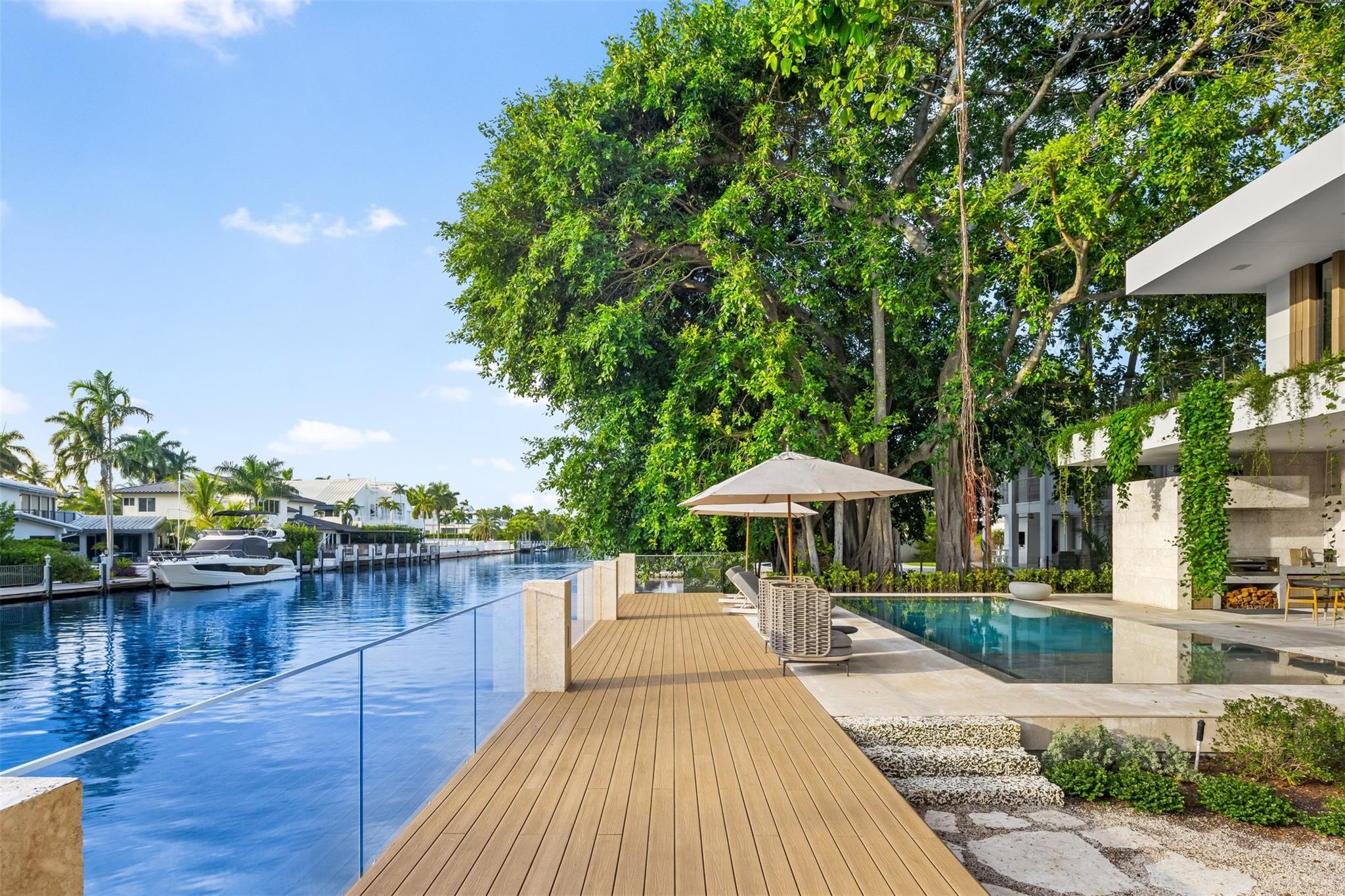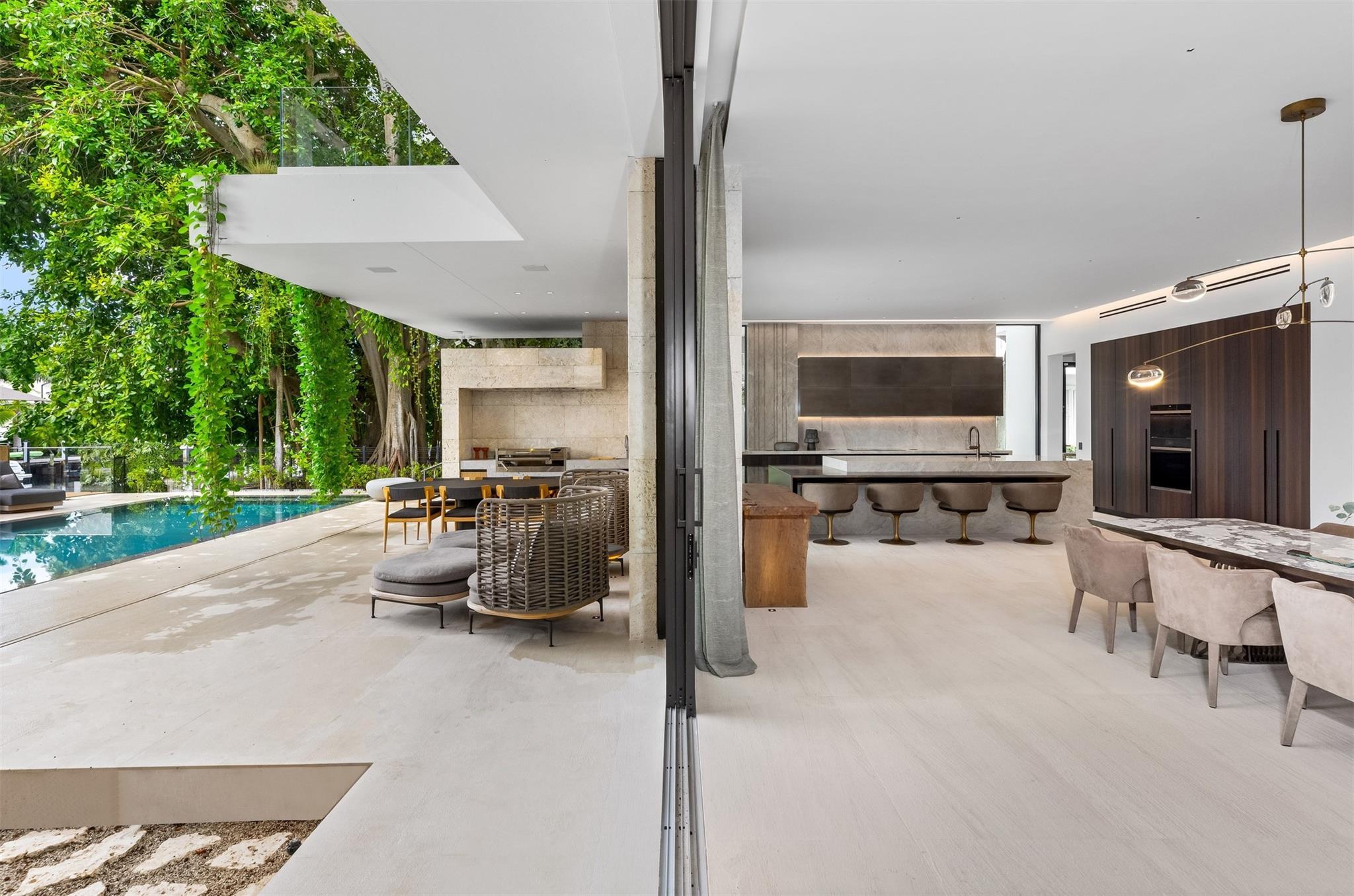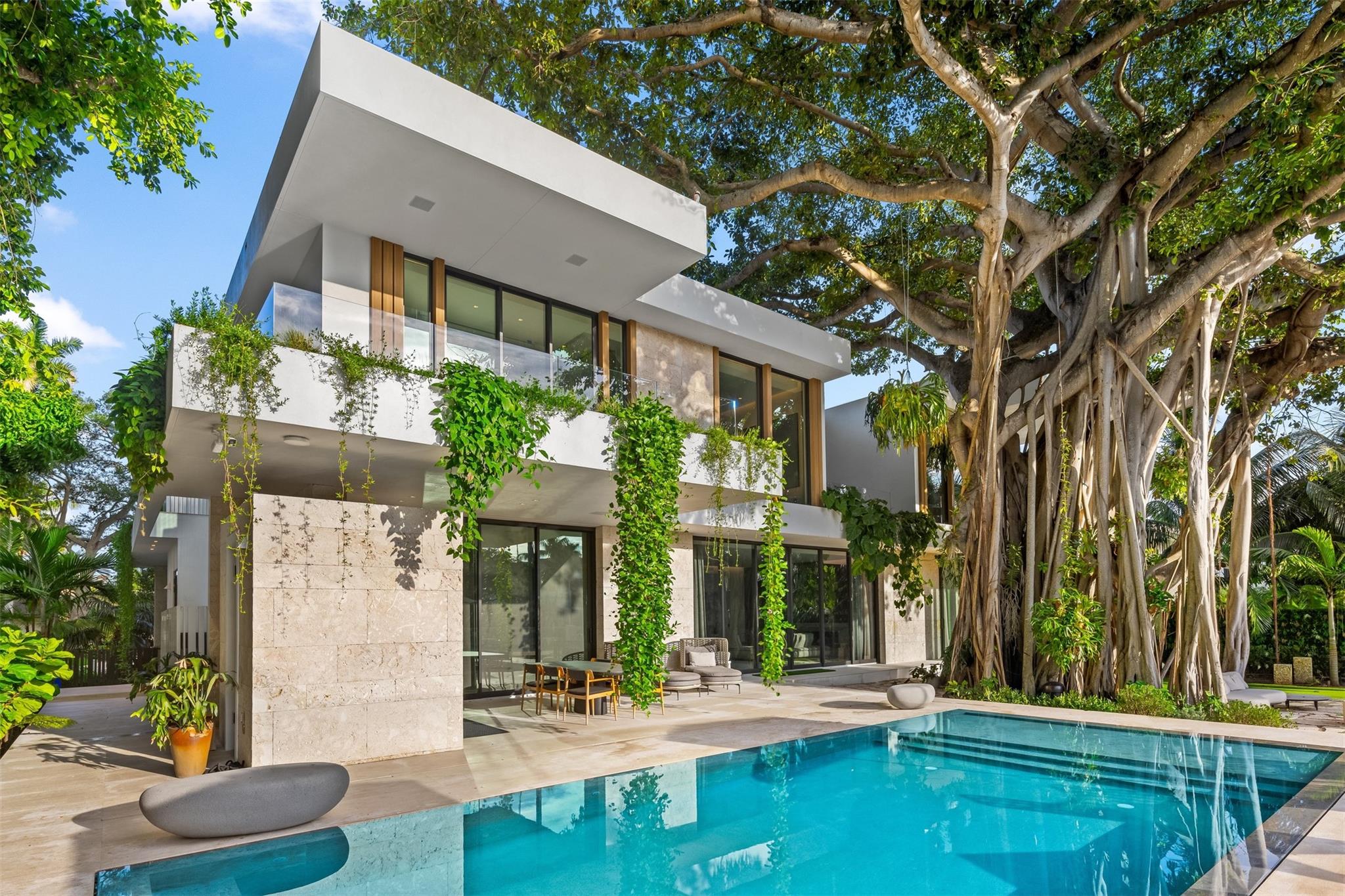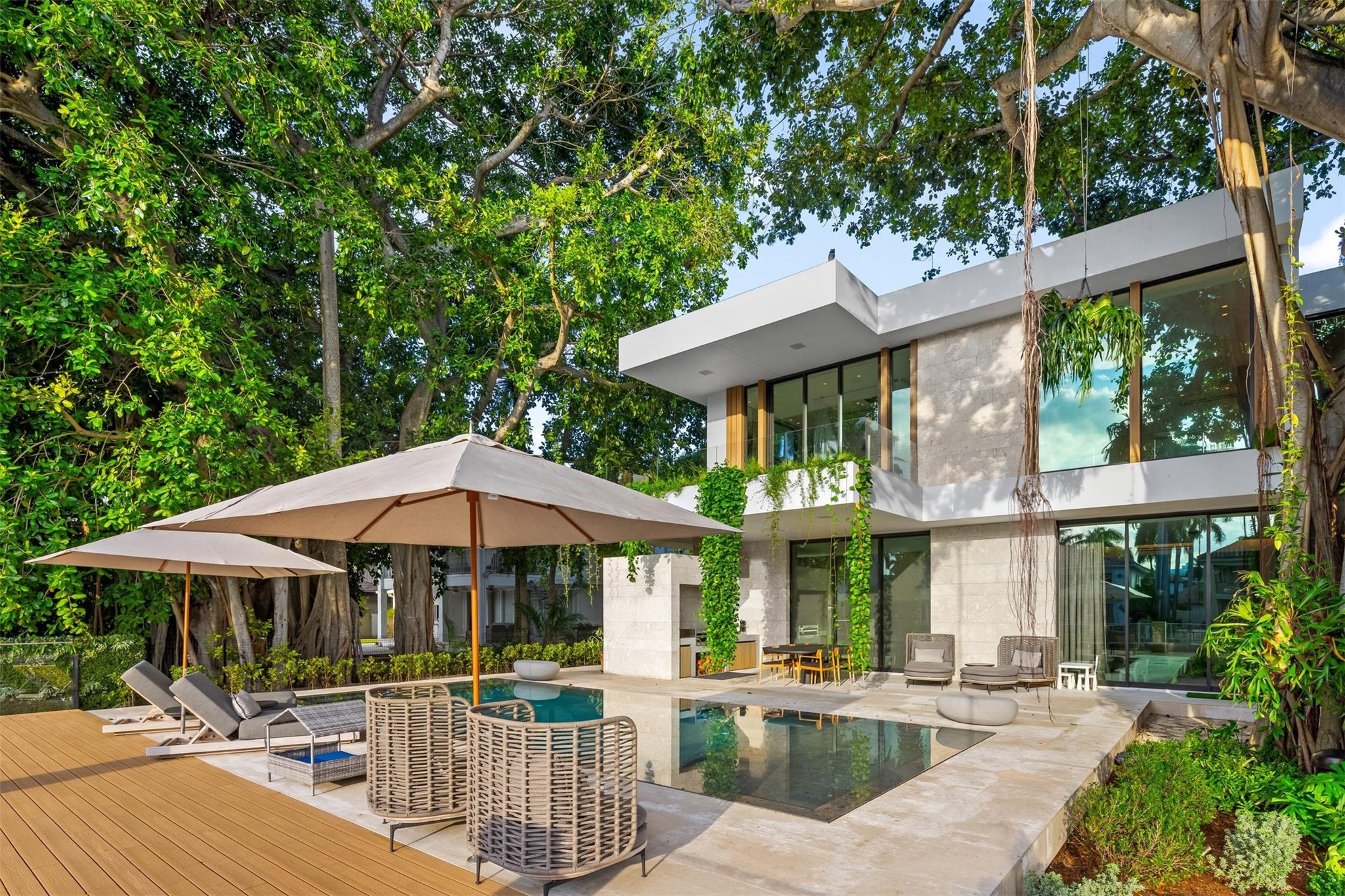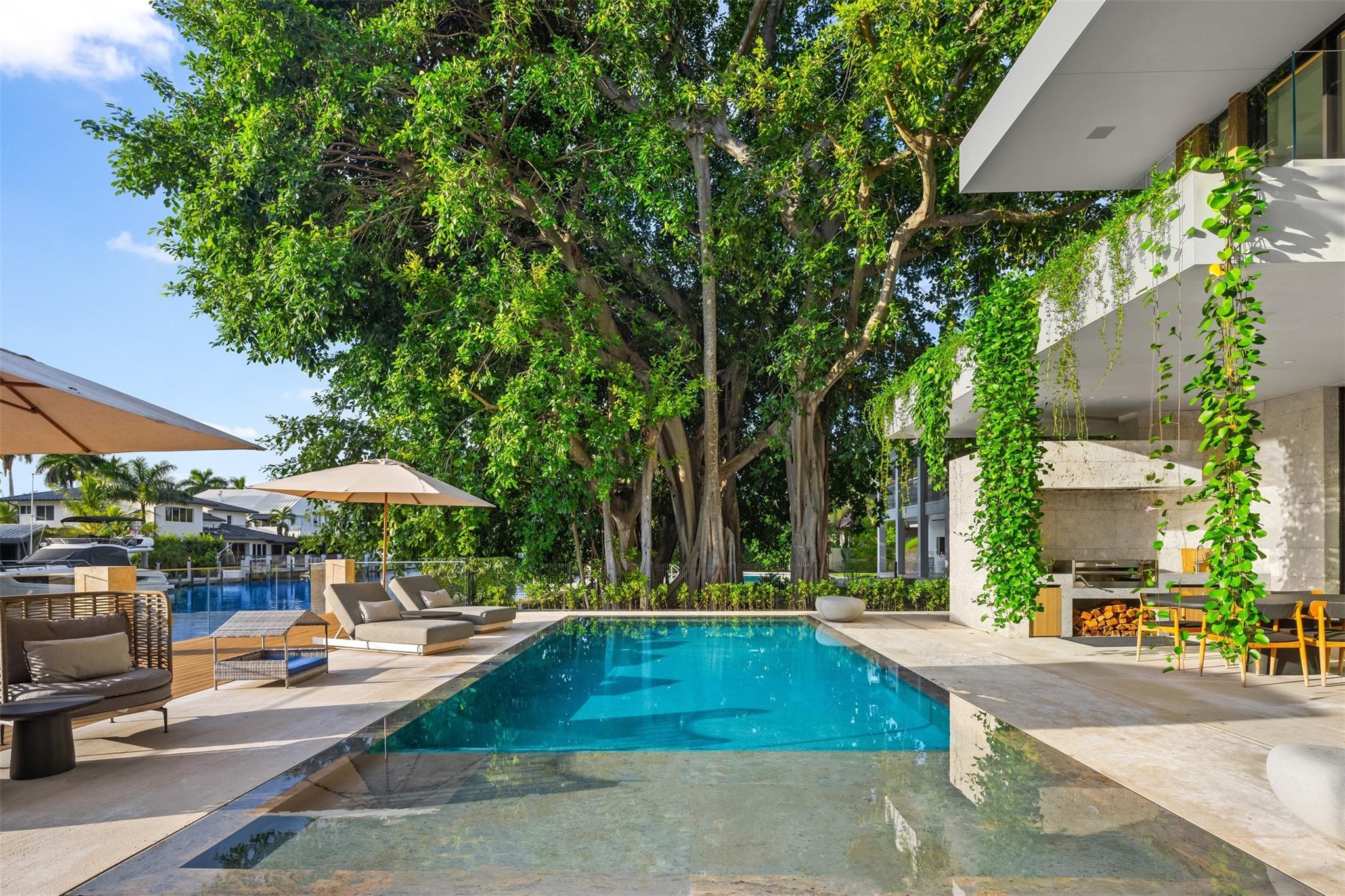 Welcome to 57 Nurmi, an architectural masterpiece redefining luxury on Las Olas’ most exclusive street. This brand new home offers grand living spaces and a chef’s kitchen with Italian Mia Cucina Design, Vena Grigio stone finishes, and an auxiliary kitchen with top-tier appliances—perfect for gatherings. Step outside to an infinity-edge mirror pool shaded by a magnificent 96-year-old Banyan tree, creating harmony between nature and architecture. Indoors, enjoy limestone floors, rich walnut accents, and a relaxing office with inspiring views. With 100’ WF and no fixed bridges, it’s a boater’s paradise. Featuring Crestron technology, a home theater with a 150-inch screen, and a yoga gym, this estate sets a new standard in luxury, offering unmatched charm, sophistication, and exclusivity.
