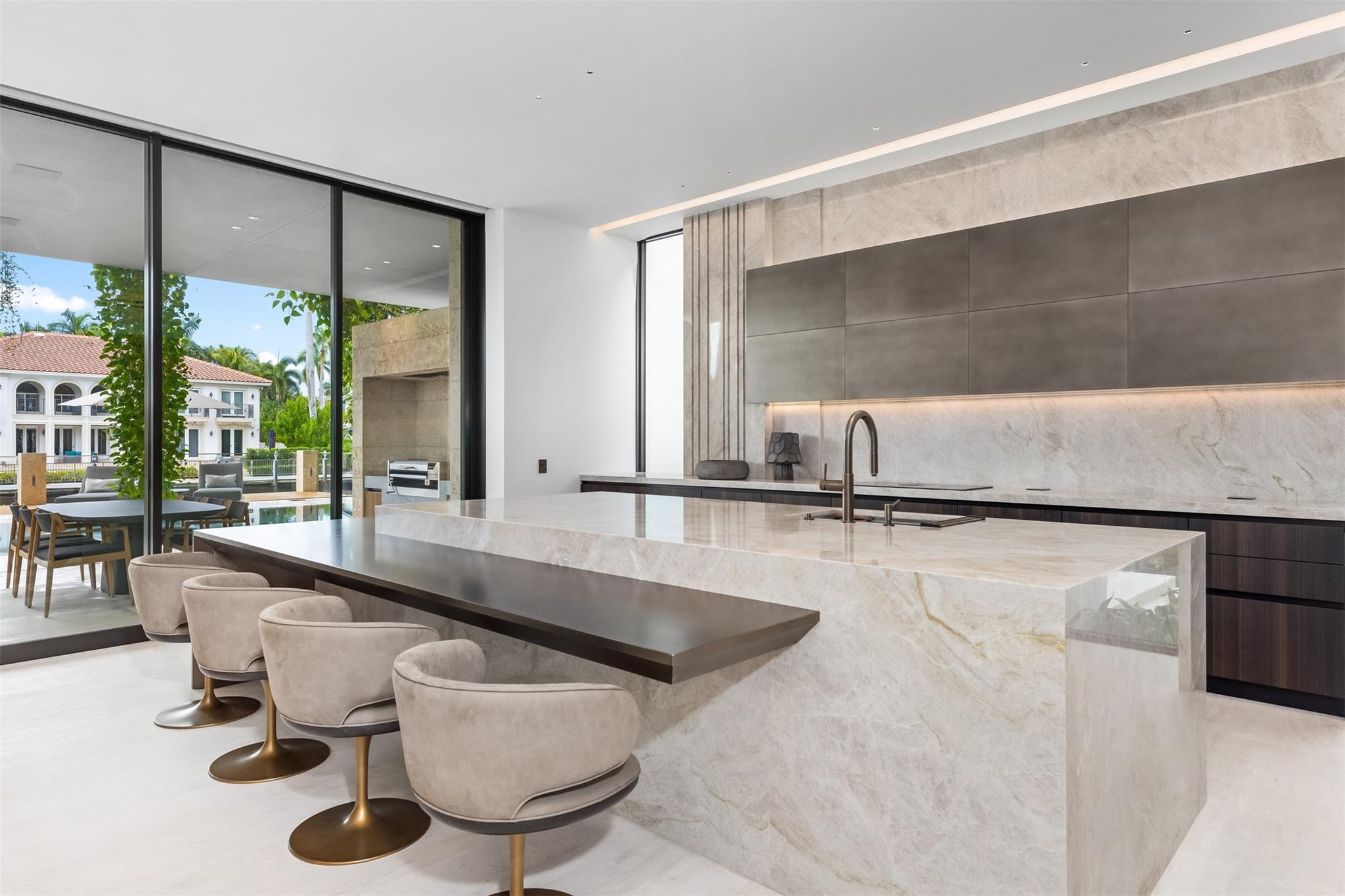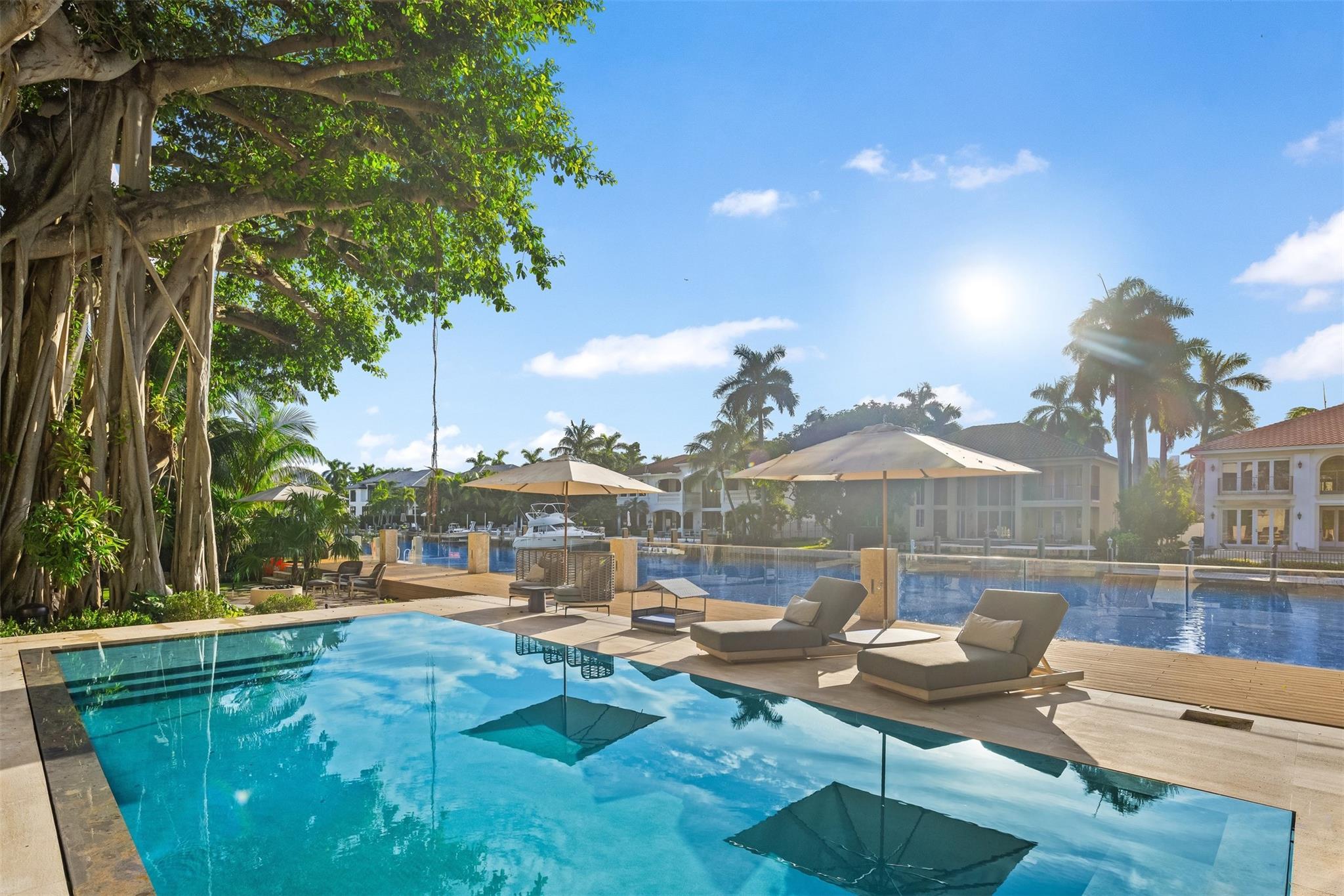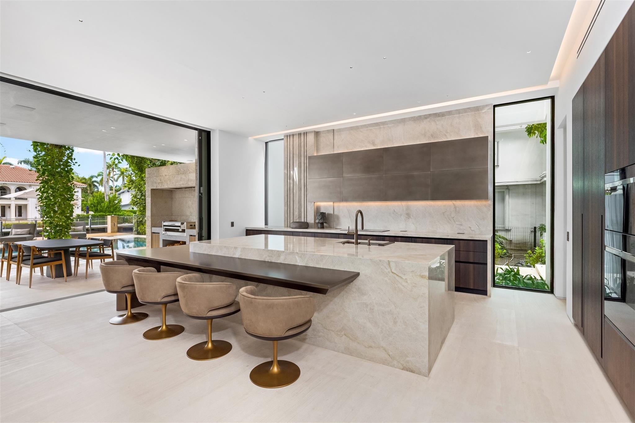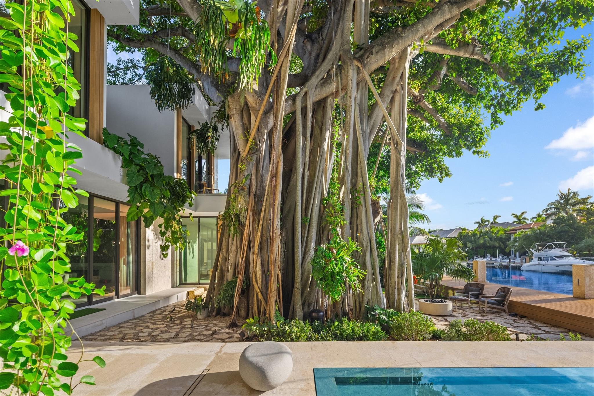 Welcome to 57 Nurmi, an architectural masterpiece redefining luxury on Las Olas’ most exclusive street. This brand new home offers grand living spaces and a chef’s kitchen with Italian Mia Cucina Design, Vena Grigio stone finishes, and an auxiliary kitchen with top-tier appliances—perfect for gatherings. Step outside to an infinity-edge mirror pool shaded by a magnificent 96-year-old Banyan tree, creating harmony between nature and architecture. Indoors, enjoy limestone floors, rich walnut accents, and a relaxing office with inspiring views. With 100’ WF and no fixed bridges, it’s a boater’s paradise. Featuring Crestron technology, a home theater with a 150-inch screen, and a yoga gym, this estate sets a new standard in luxury, offering unmatched charm, sophistication, and exclusivity.
