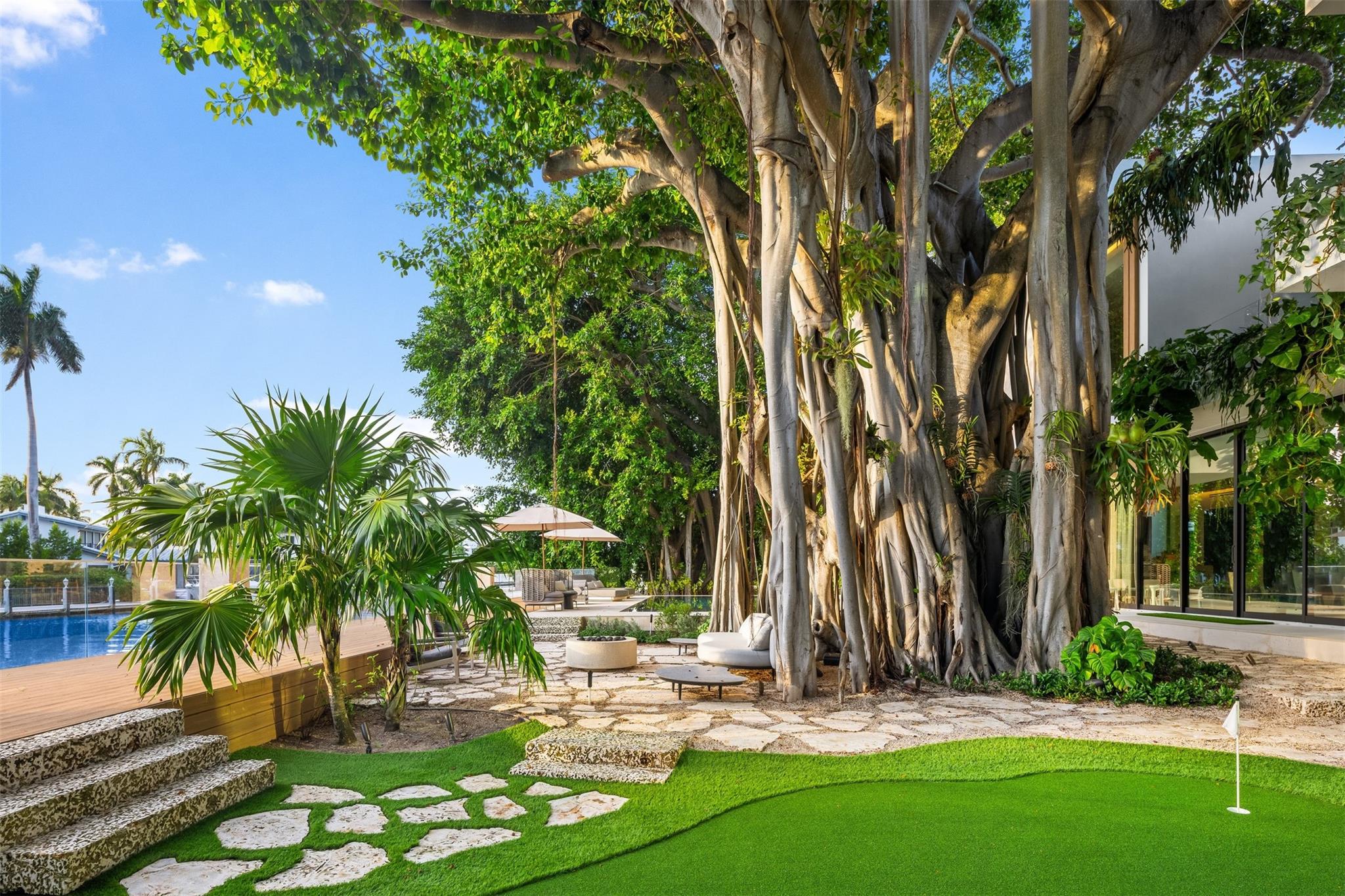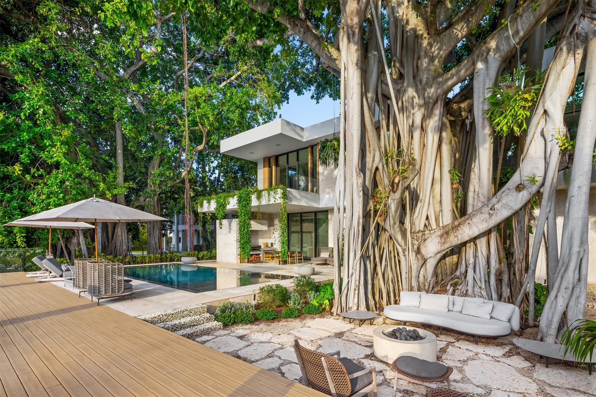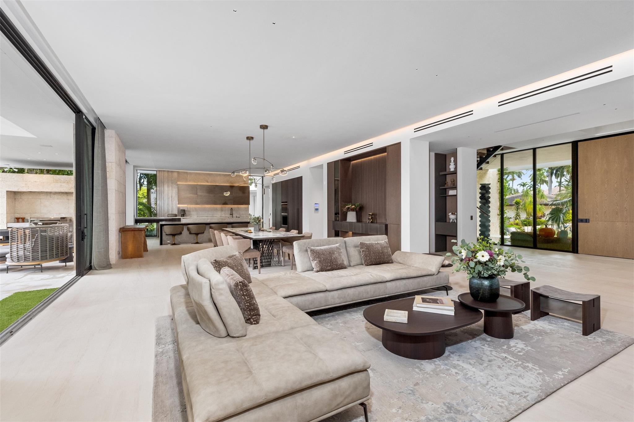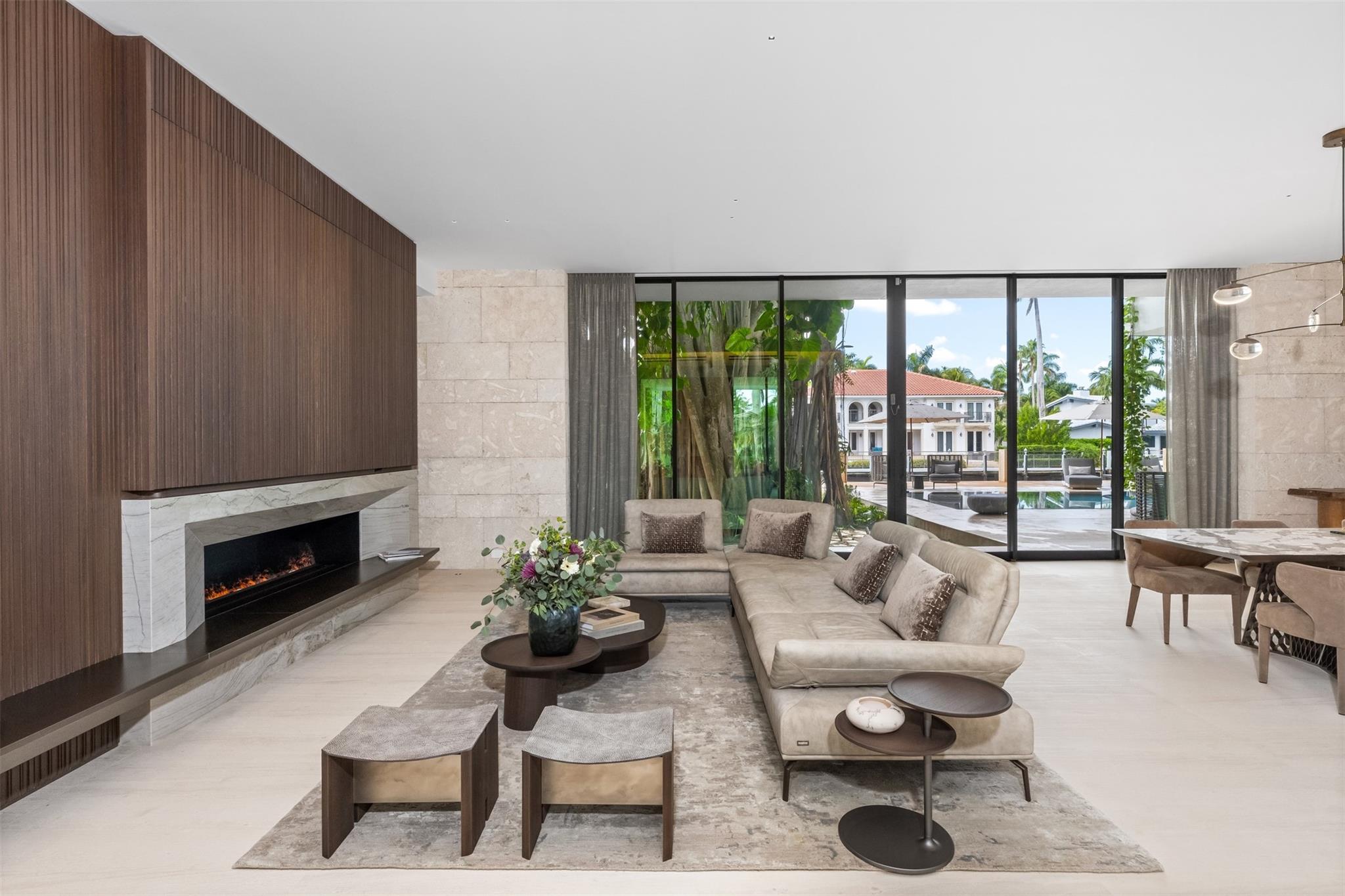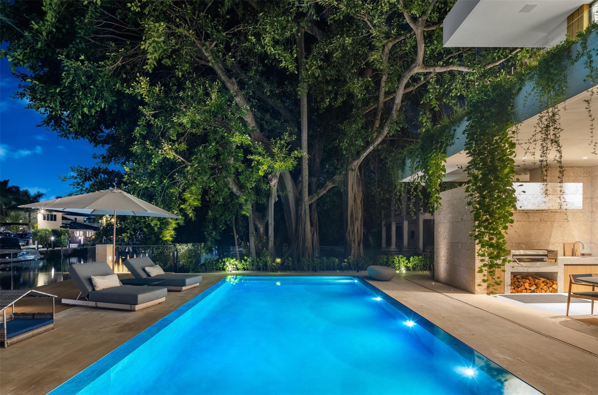 Welcome to 57 Nurmi, an architectural masterpiece redefining luxury on Las Olas’ most exclusive street. This brand new home offers grand living spaces and a chef’s kitchen with Italian Mia Cucina Design, Vena Grigio stone finishes, and an auxiliary kitchen with top-tier appliances—perfect for gatherings. Step outside to an infinity-edge mirror pool shaded by a magnificent 96-year-old Banyan tree, creating harmony between nature and architecture. Indoors, enjoy limestone floors, rich walnut accents, and a relaxing office with inspiring views. With 100’ WF and no fixed bridges, it’s a boater’s paradise. Featuring Crestron technology, a home theater with a 150-inch screen, and a yoga gym, this estate sets a new standard in luxury, offering unmatched charm, sophistication, and exclusivity.