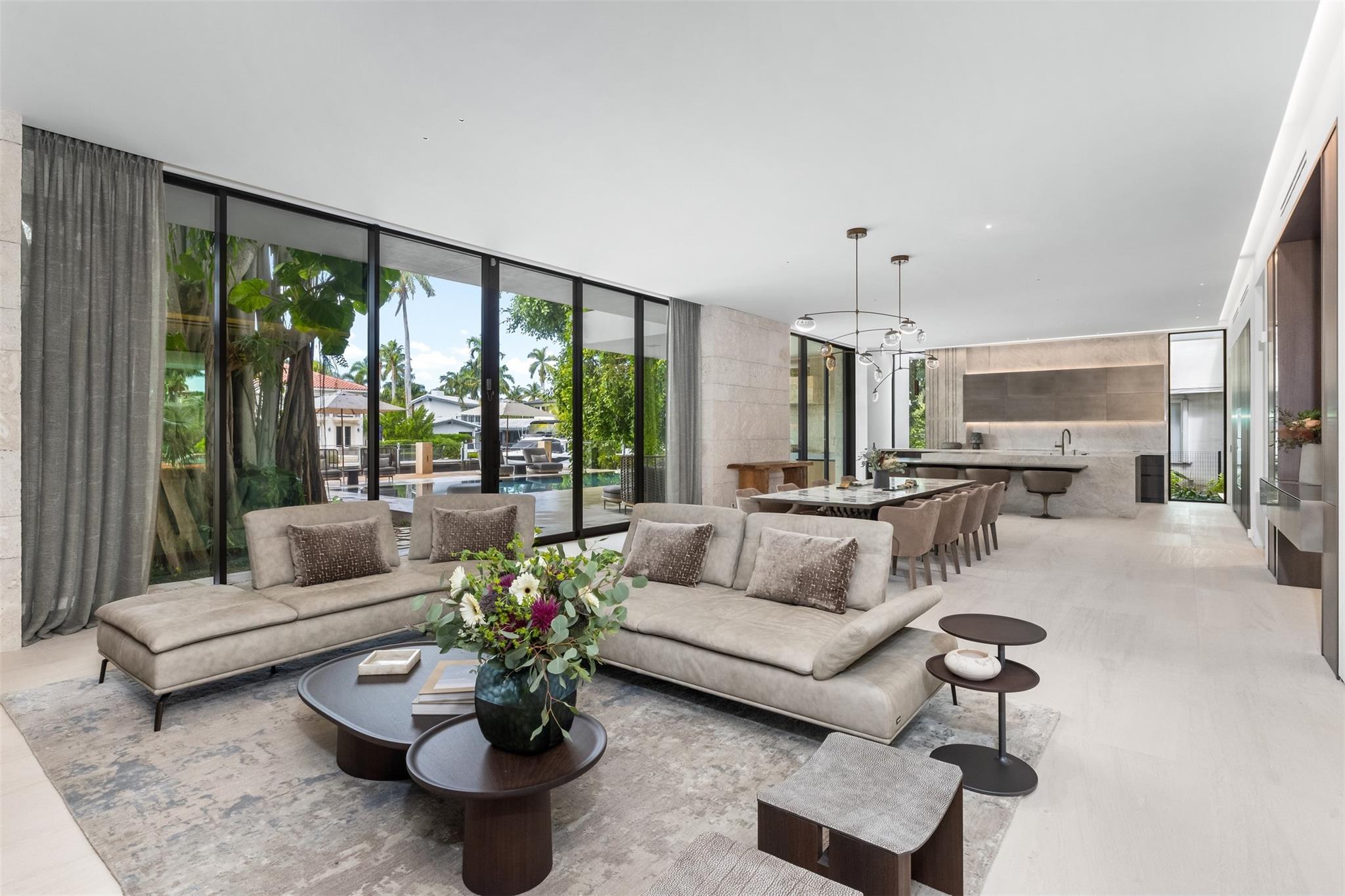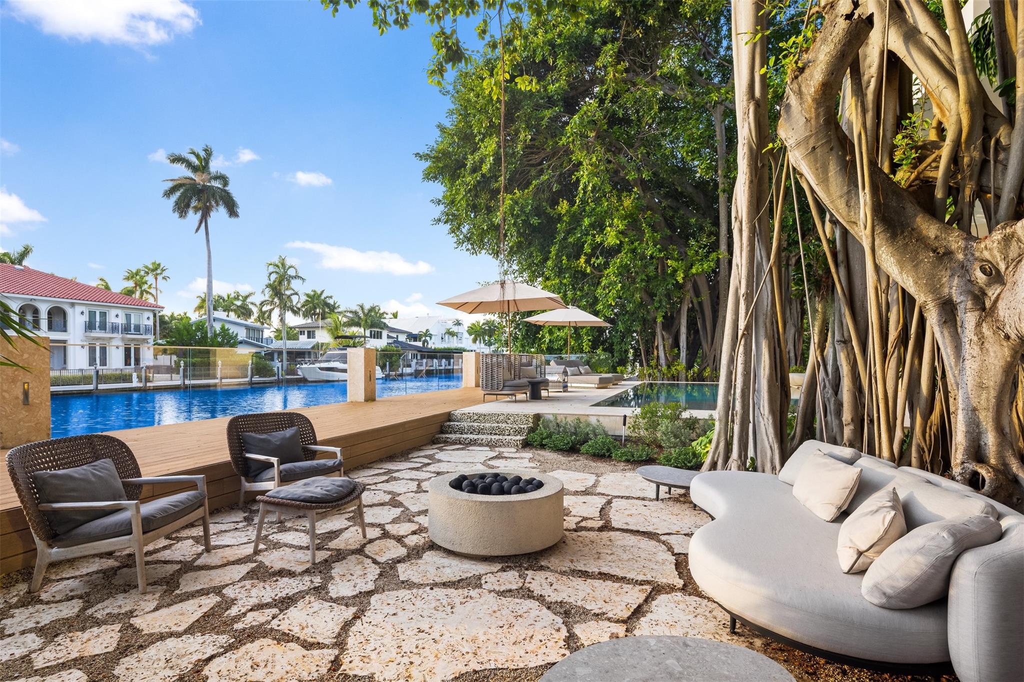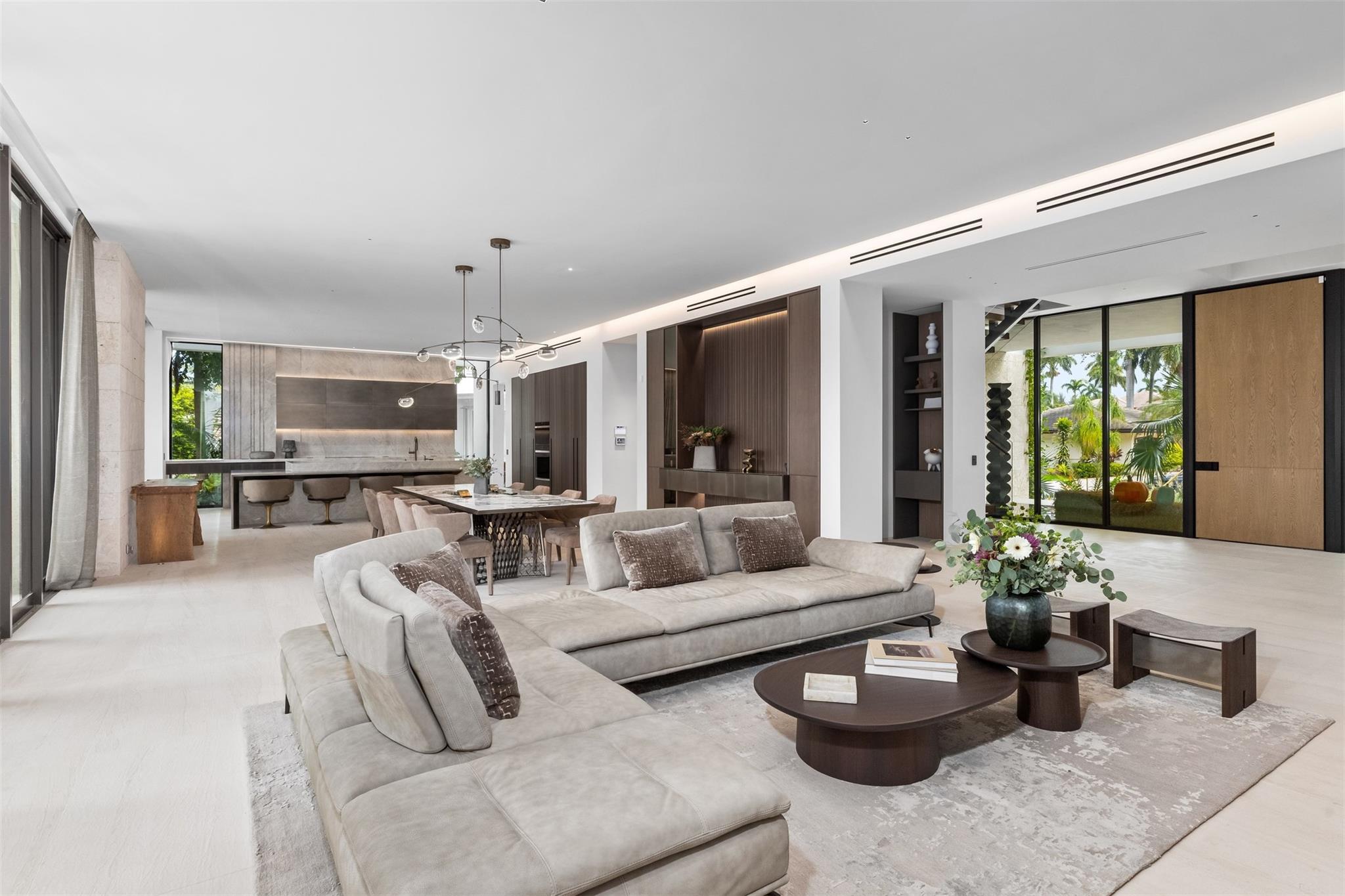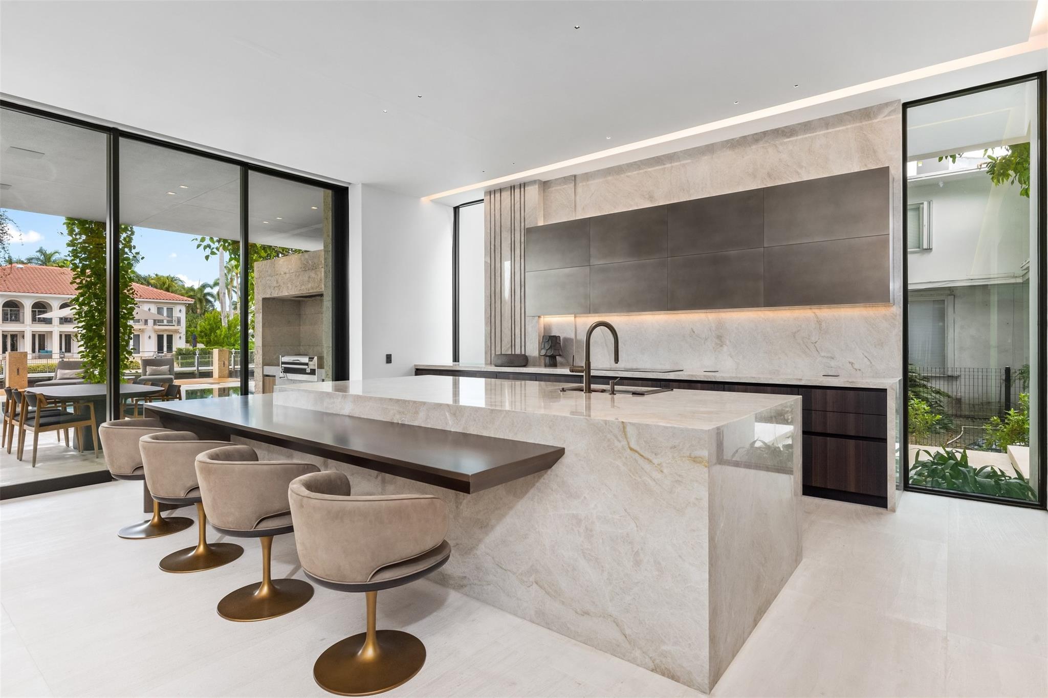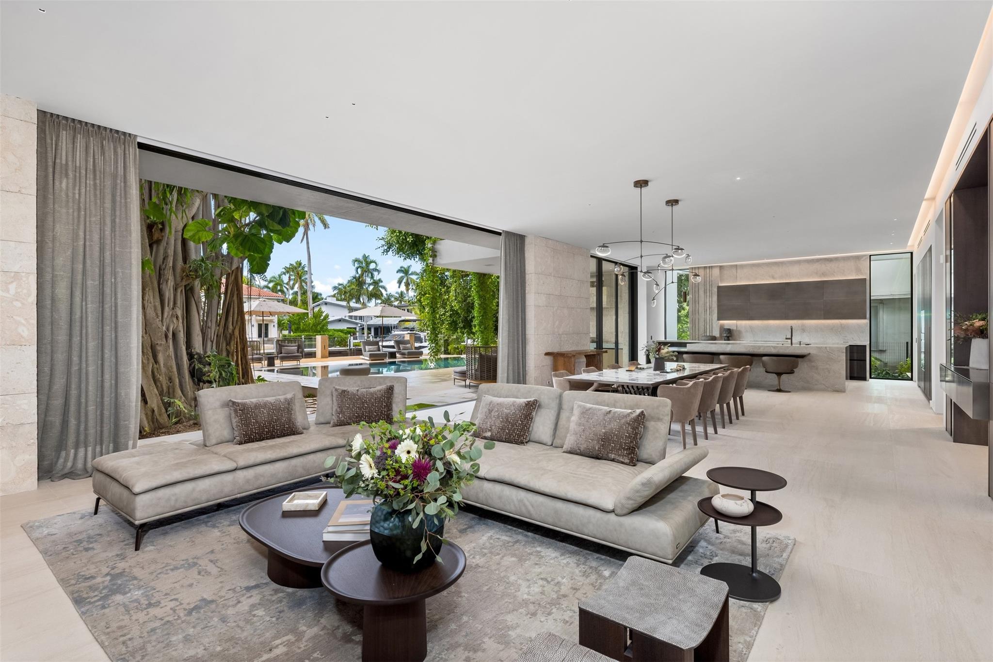 Welcome to 57 Nurmi, an architectural masterpiece redefining luxury on Las Olas’ most exclusive street. This brand new home offers grand living spaces and a chef’s kitchen with Italian Mia Cucina Design, Vena Grigio stone finishes, and an auxiliary kitchen with top-tier appliances—perfect for gatherings. Step outside to an infinity-edge mirror pool shaded by a magnificent 96-year-old Banyan tree, creating harmony between nature and architecture. Indoors, enjoy limestone floors, rich walnut accents, and a relaxing office with inspiring views. With 100’ WF and no fixed bridges, it’s a boater’s paradise. Featuring Crestron technology, a home theater with a 150-inch screen, and a yoga gym, this estate sets a new standard in luxury, offering unmatched charm, sophistication, and exclusivity.