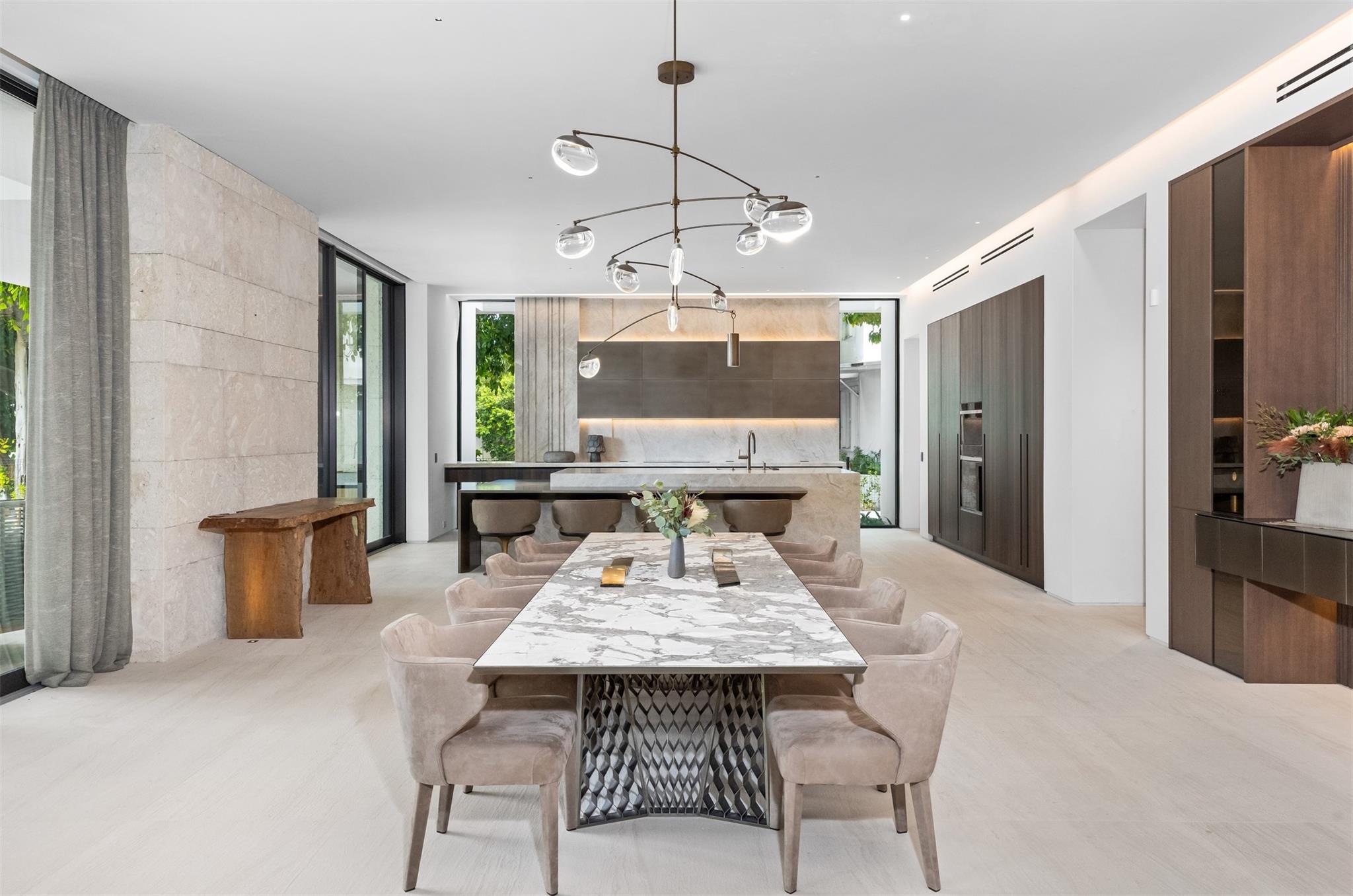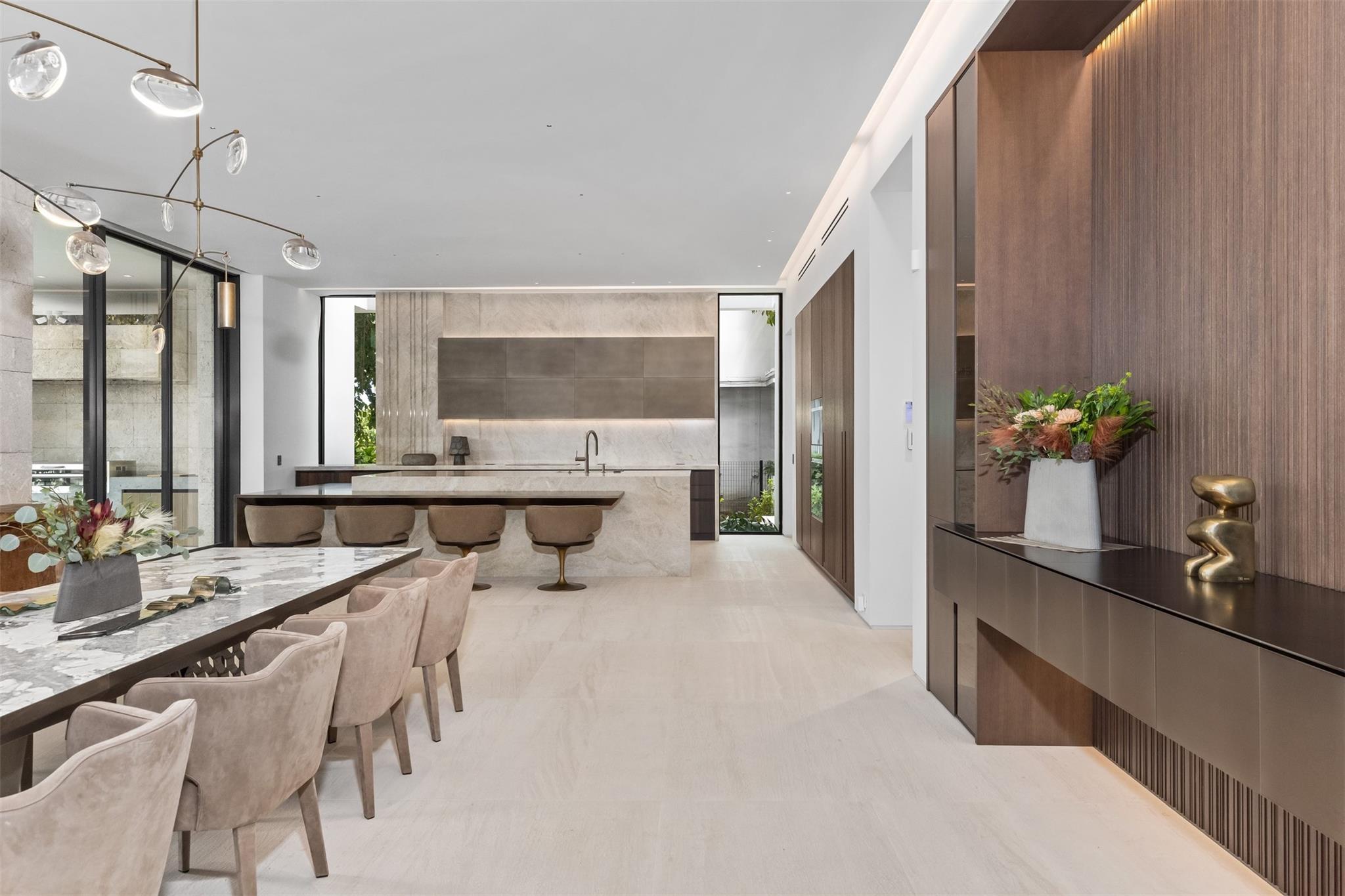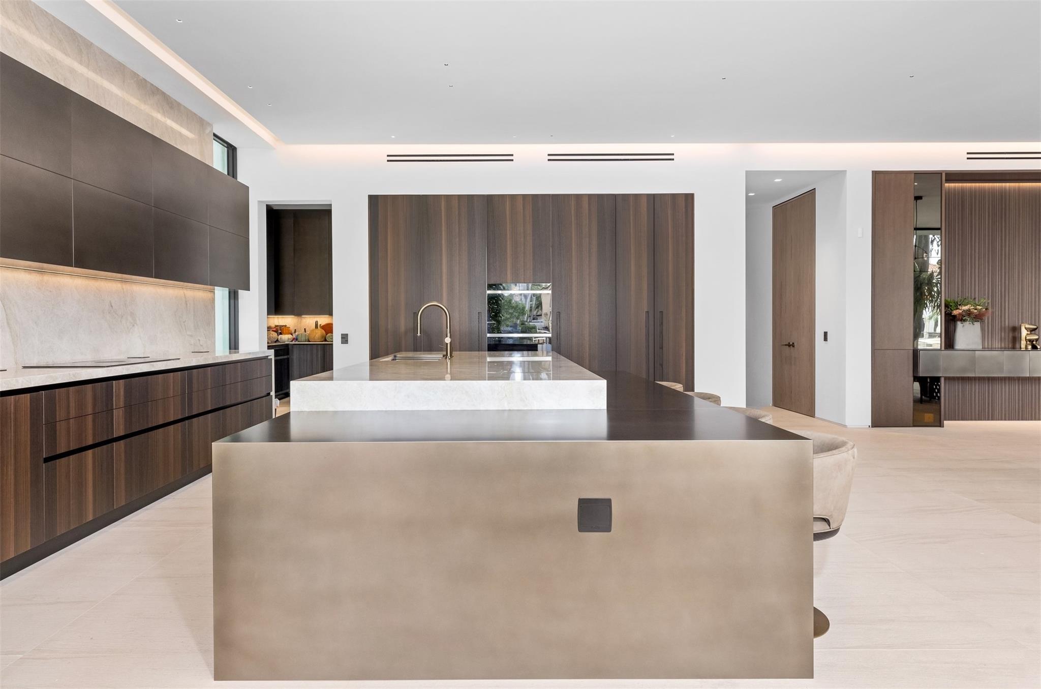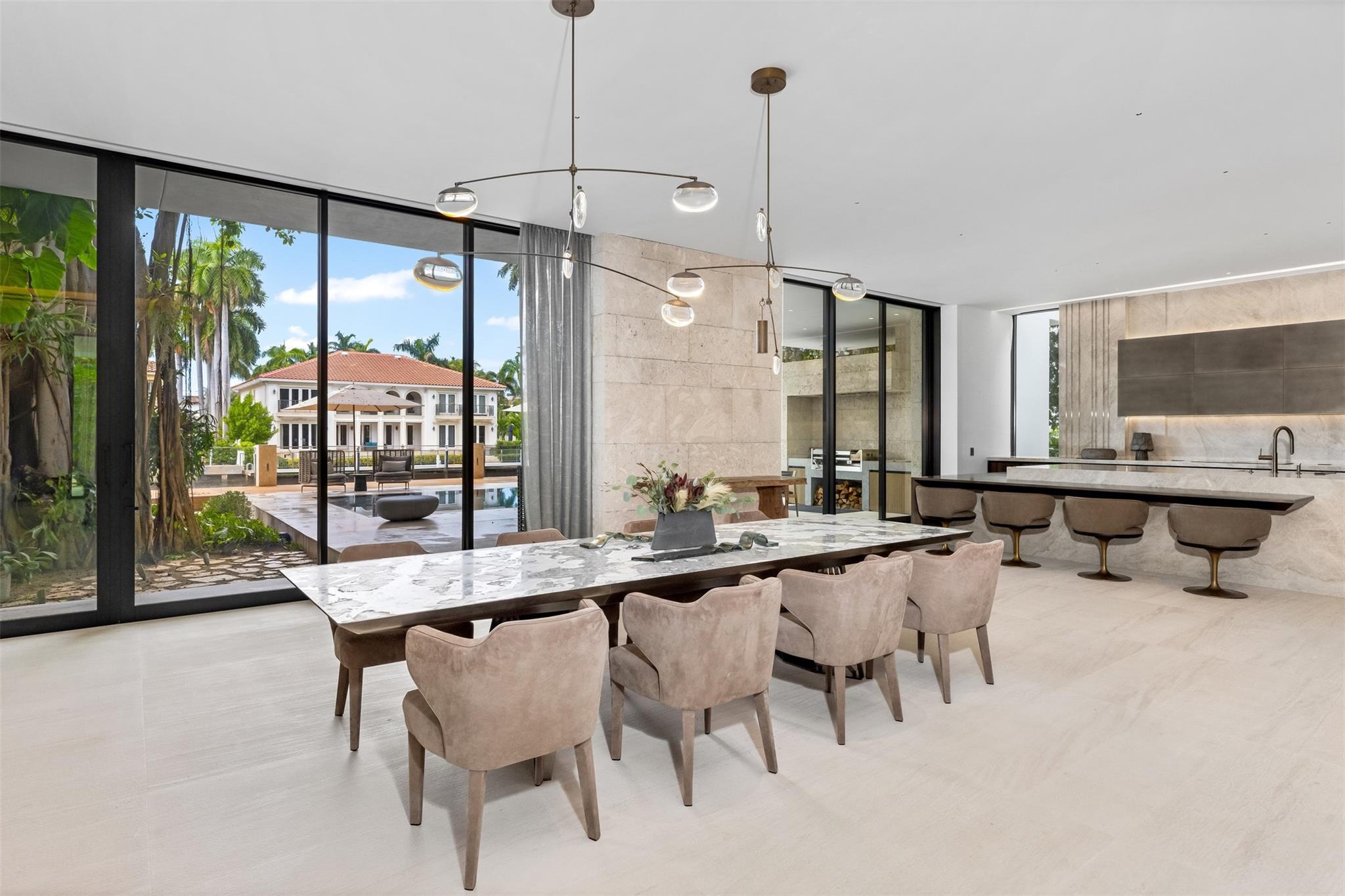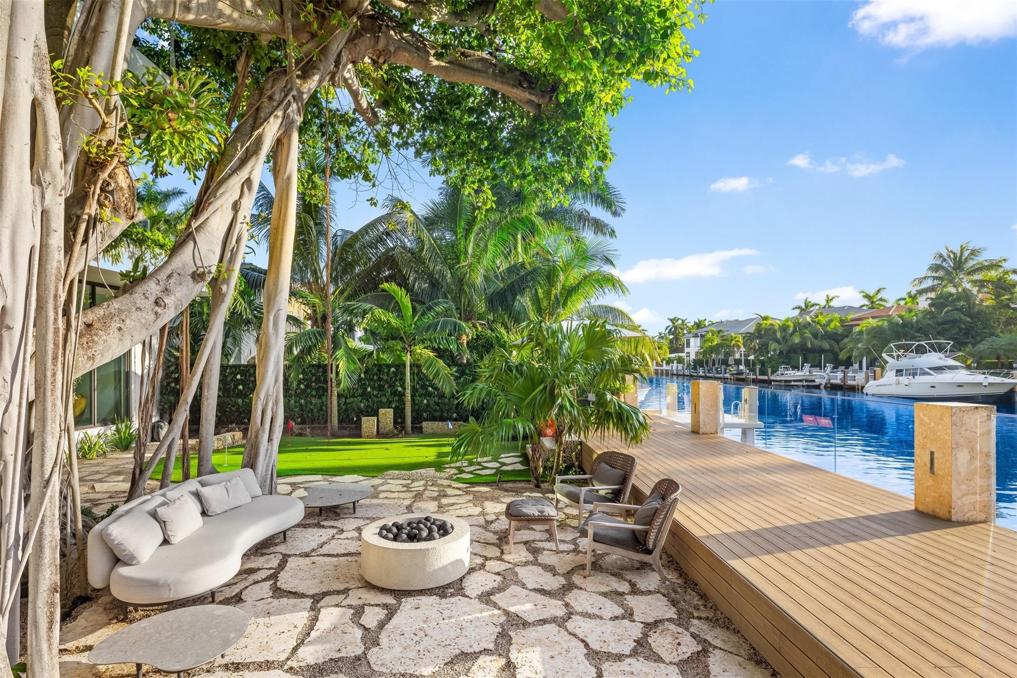 Welcome to 57 Nurmi, an architectural masterpiece redefining luxury on Las Olas’ most exclusive street. This brand new home offers grand living spaces and a chef’s kitchen with Italian Mia Cucina Design, Vena Grigio stone finishes, and an auxiliary kitchen with top-tier appliances—perfect for gatherings. Step outside to an infinity-edge mirror pool shaded by a magnificent 96-year-old Banyan tree, creating harmony between nature and architecture. Indoors, enjoy limestone floors, rich walnut accents, and a relaxing office with inspiring views. With 100’ WF and no fixed bridges, it’s a boater’s paradise. Featuring Crestron technology, a home theater with a 150-inch screen, and a yoga gym, this estate sets a new standard in luxury, offering unmatched charm, sophistication, and exclusivity.