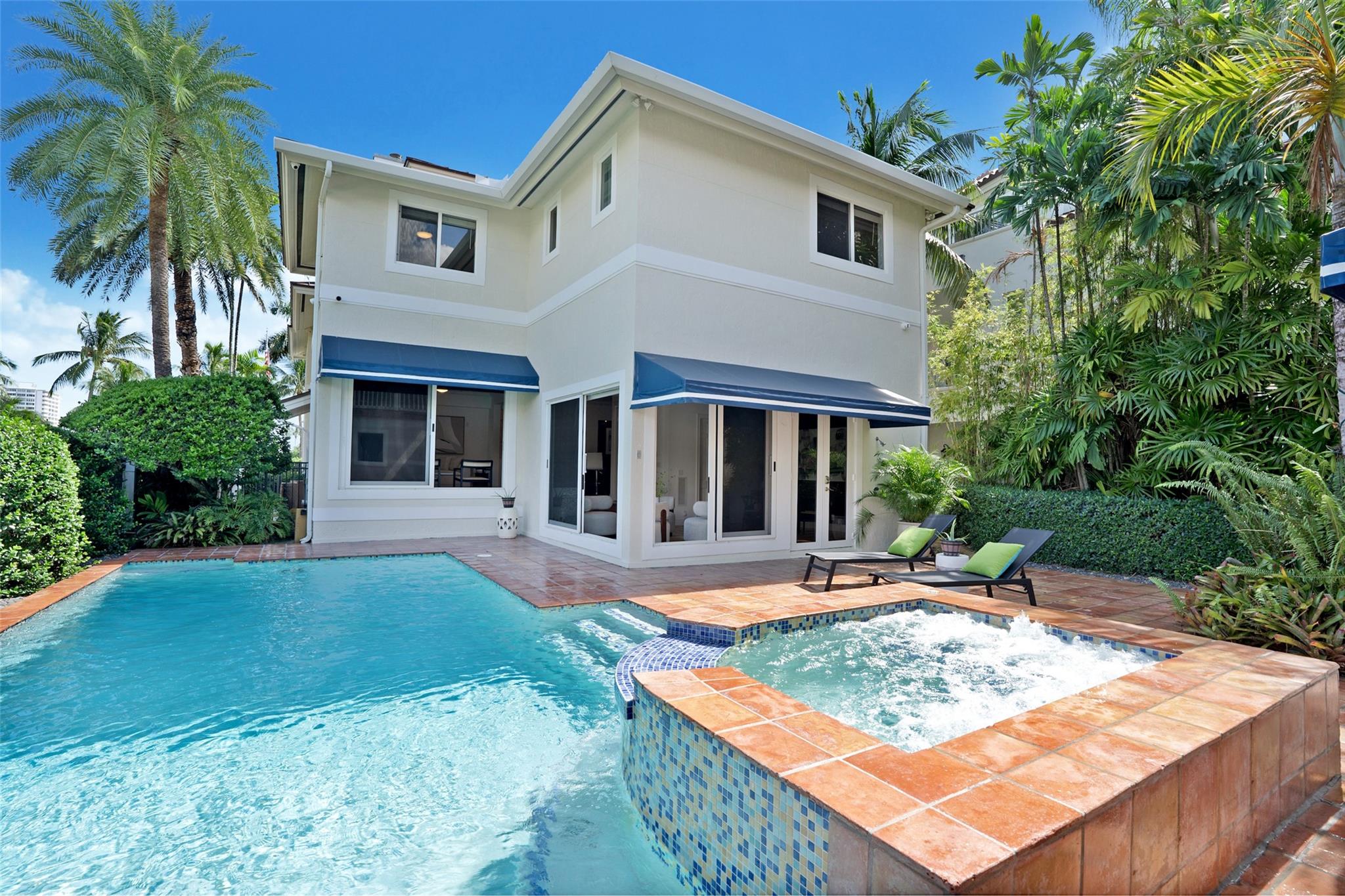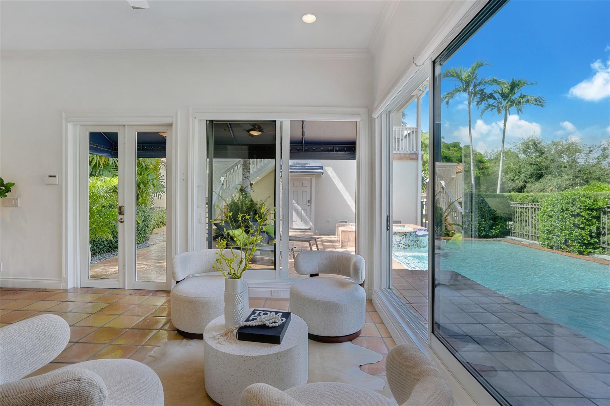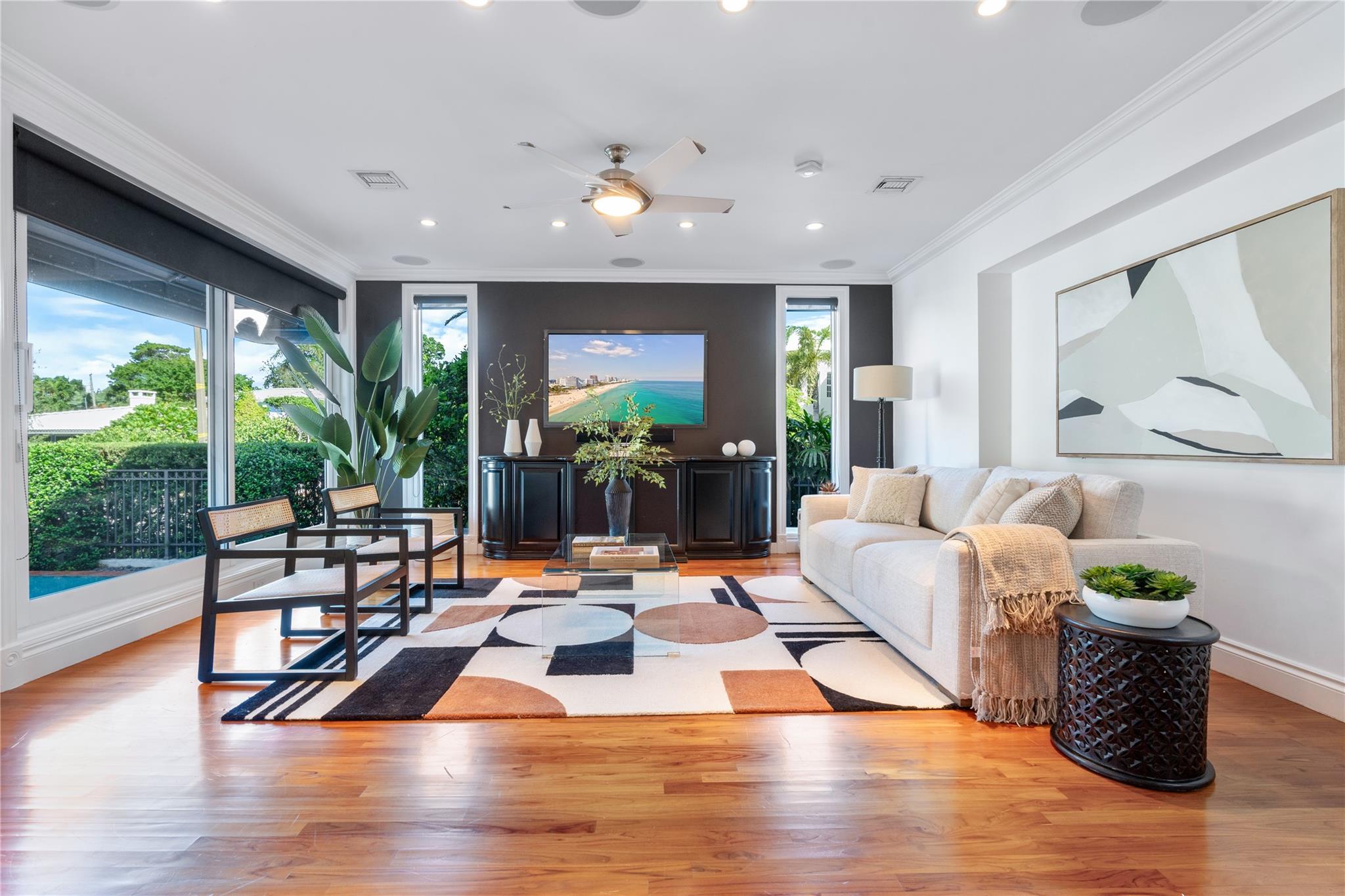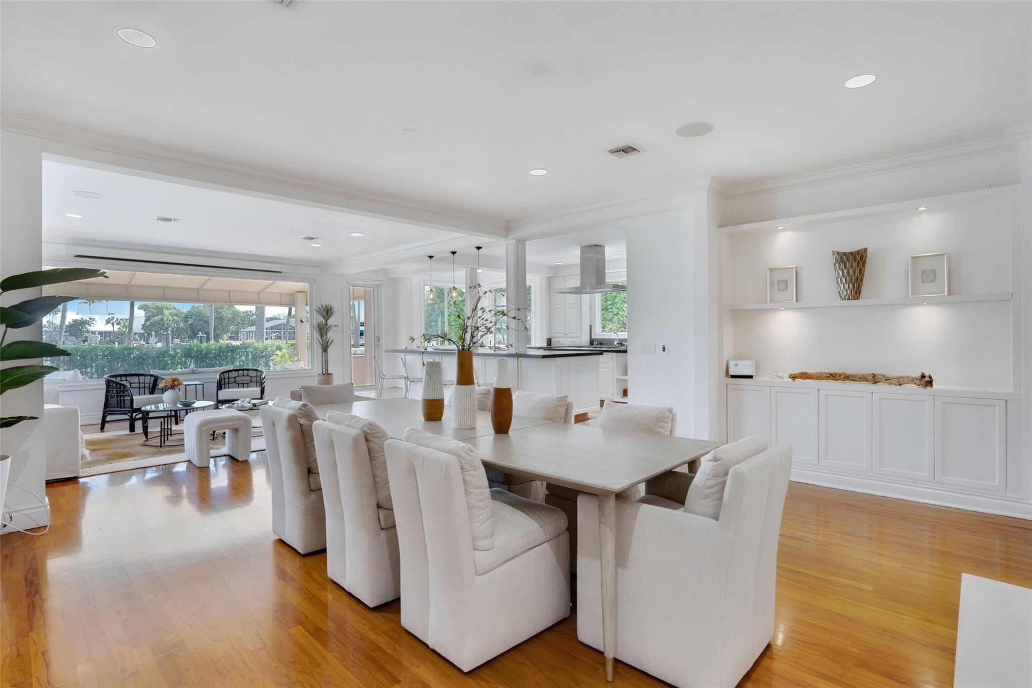 A rare opportunity to live on prestigious Idlewyld Dr. Enjoy unparalleled Intracoastal views and daily endless boat parade from this contemporary 2-story + 3rd floor sky lounge & rooftop deck residence. Boasting high ceilings, open floor plan seamlessly connecting the living room, dining room, breakfast nook & gourmet kitchen w/oversized island & top-of-the-line appliances. Additional: media room, bar area, office & sunroom. The primary features walk-in closets, spa-like bathroom. Outdoor: waterfront patio w/summer kitchen, heated pool & spa. New deep-water dock built to the latest regulations, in a NO-WAKE ZONE, with easy ocean access & no fixed bridges. Generator, A/C 4-car garage. Detached 2bds/2baths Guest House w/kitchen & living room. Secure Location. Steps away from dining & beaches