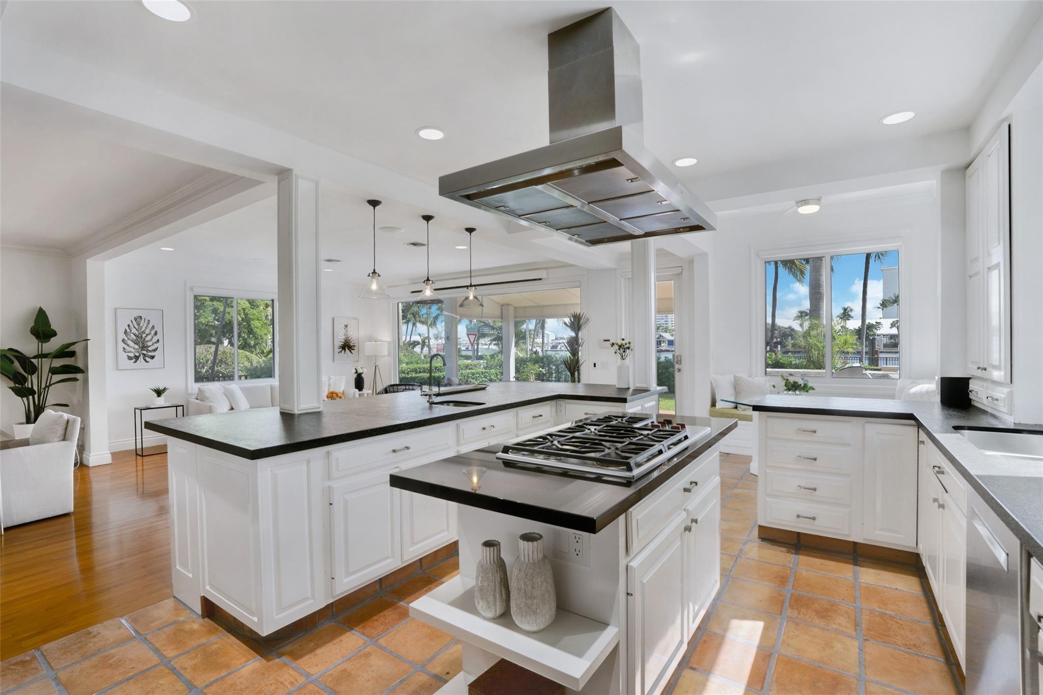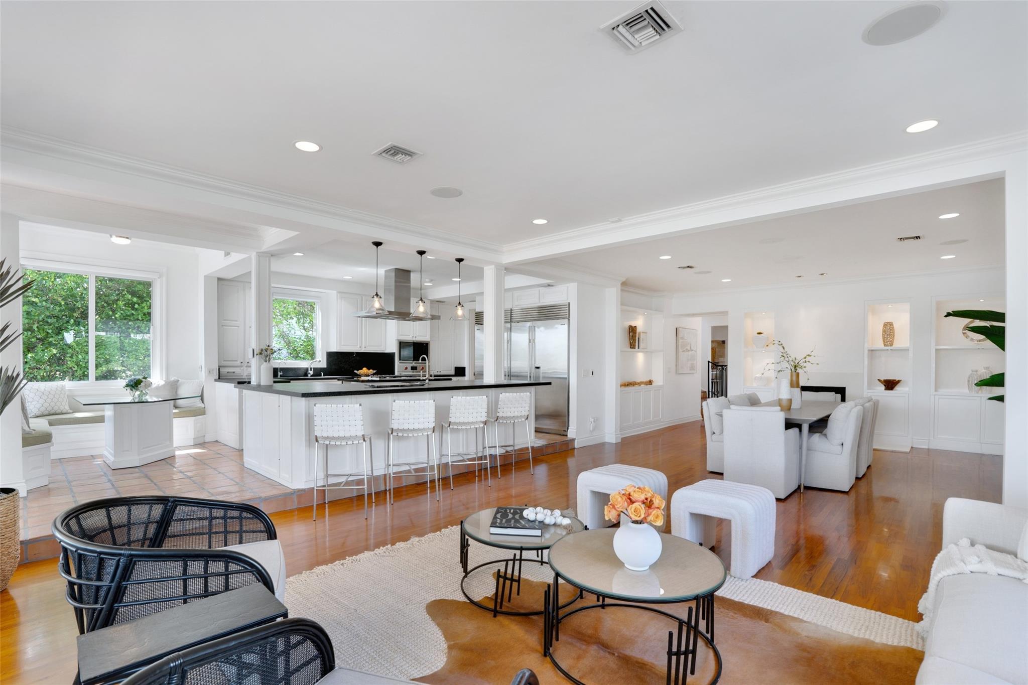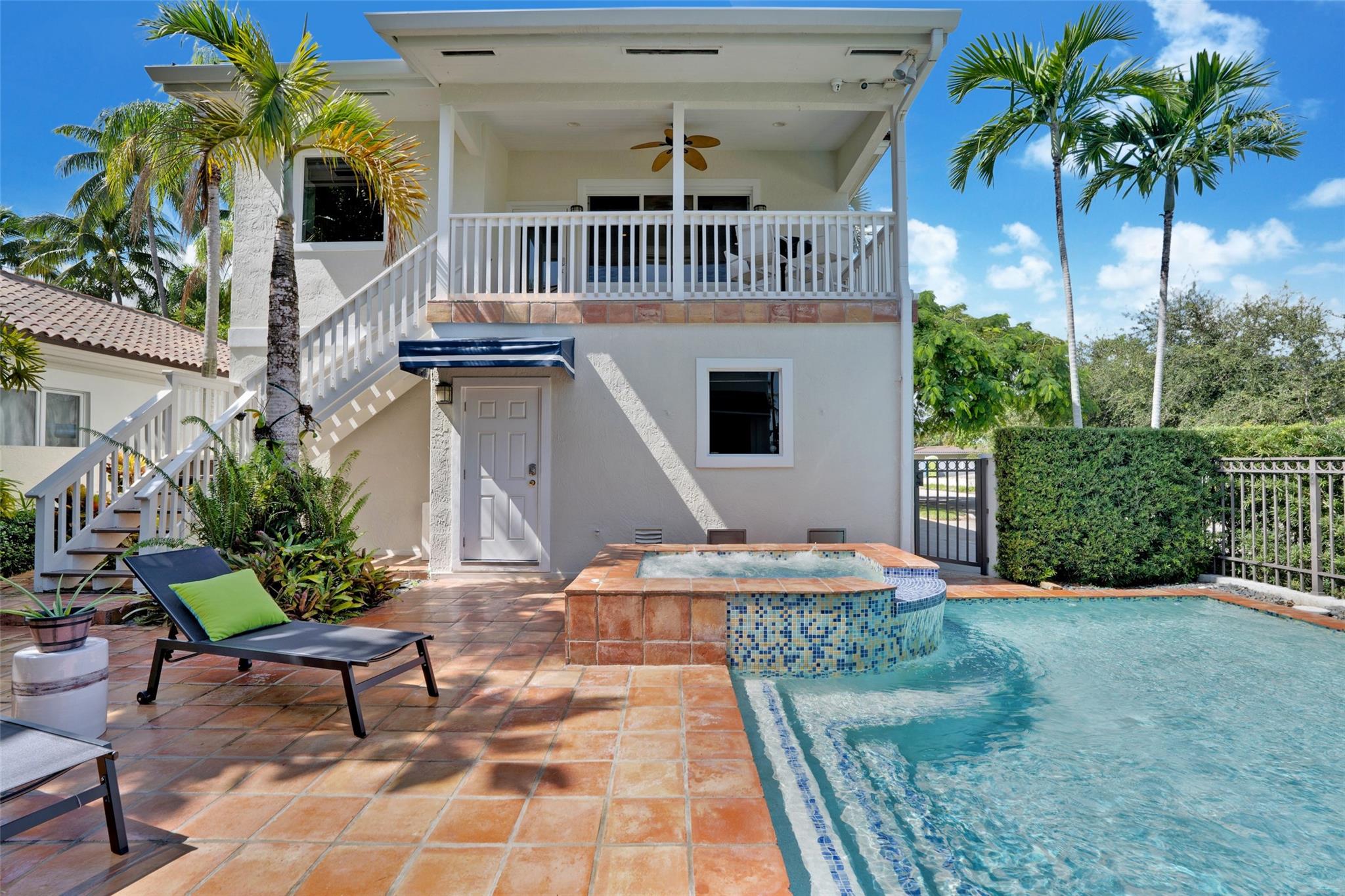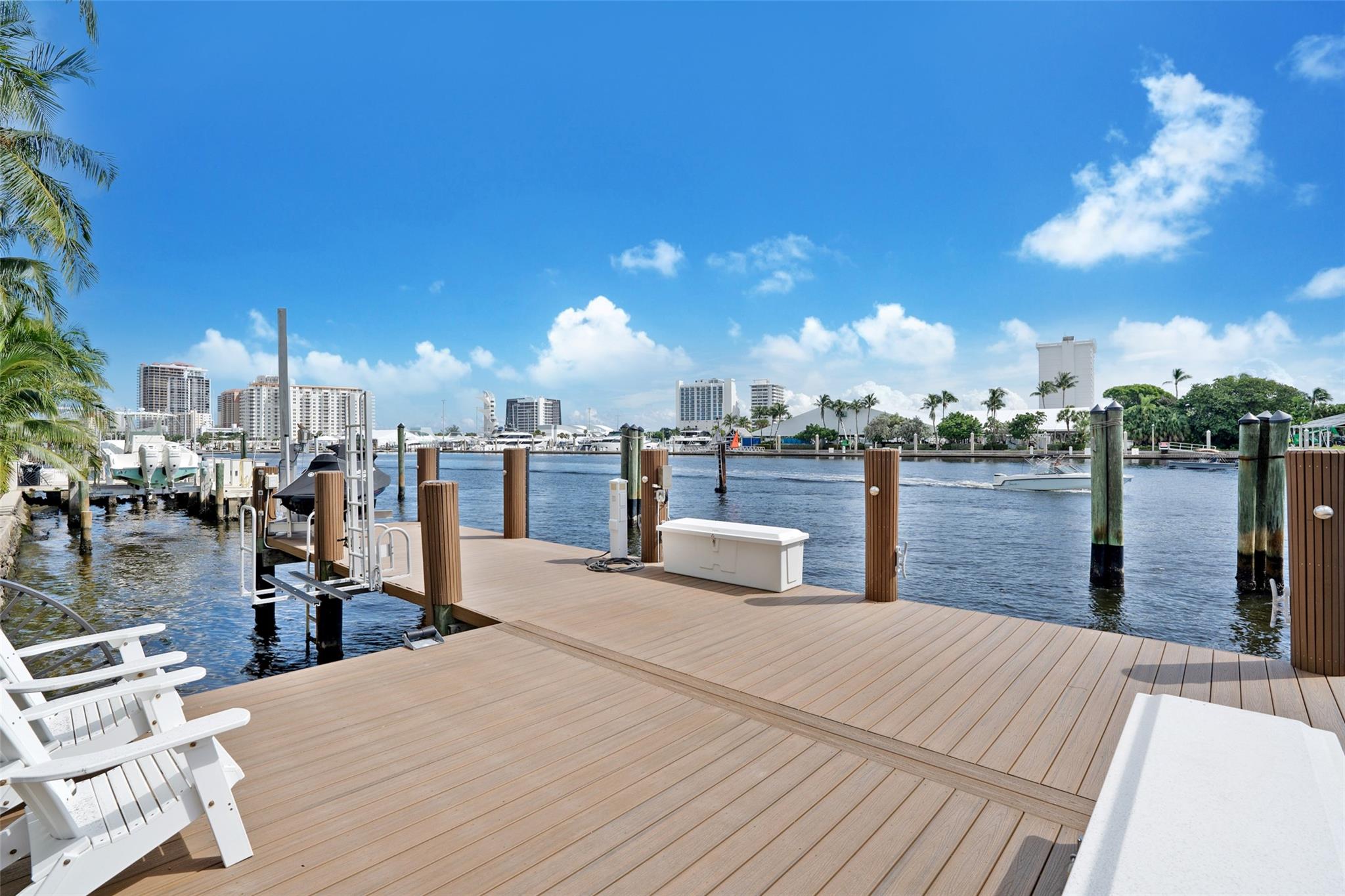 A rare opportunity to live on prestigious Idlewyld Dr. Enjoy unparalleled Intracoastal views and daily endless boat parade from this contemporary 2-story + 3rd floor sky lounge & rooftop deck residence. Boasting high ceilings, open floor plan seamlessly connecting the living room, dining room, breakfast nook & gourmet kitchen w/oversized island & top-of-the-line appliances. Additional: media room, bar area, office & sunroom. The primary features walk-in closets, spa-like bathroom. Outdoor: waterfront patio w/summer kitchen, heated pool & spa. New deep-water dock built to the latest regulations, in a NO-WAKE ZONE, with easy ocean access & no fixed bridges. Generator, A/C 4-car garage. Detached 2bds/2baths Guest House w/kitchen & living room. Secure Location. Steps away from dining & beaches