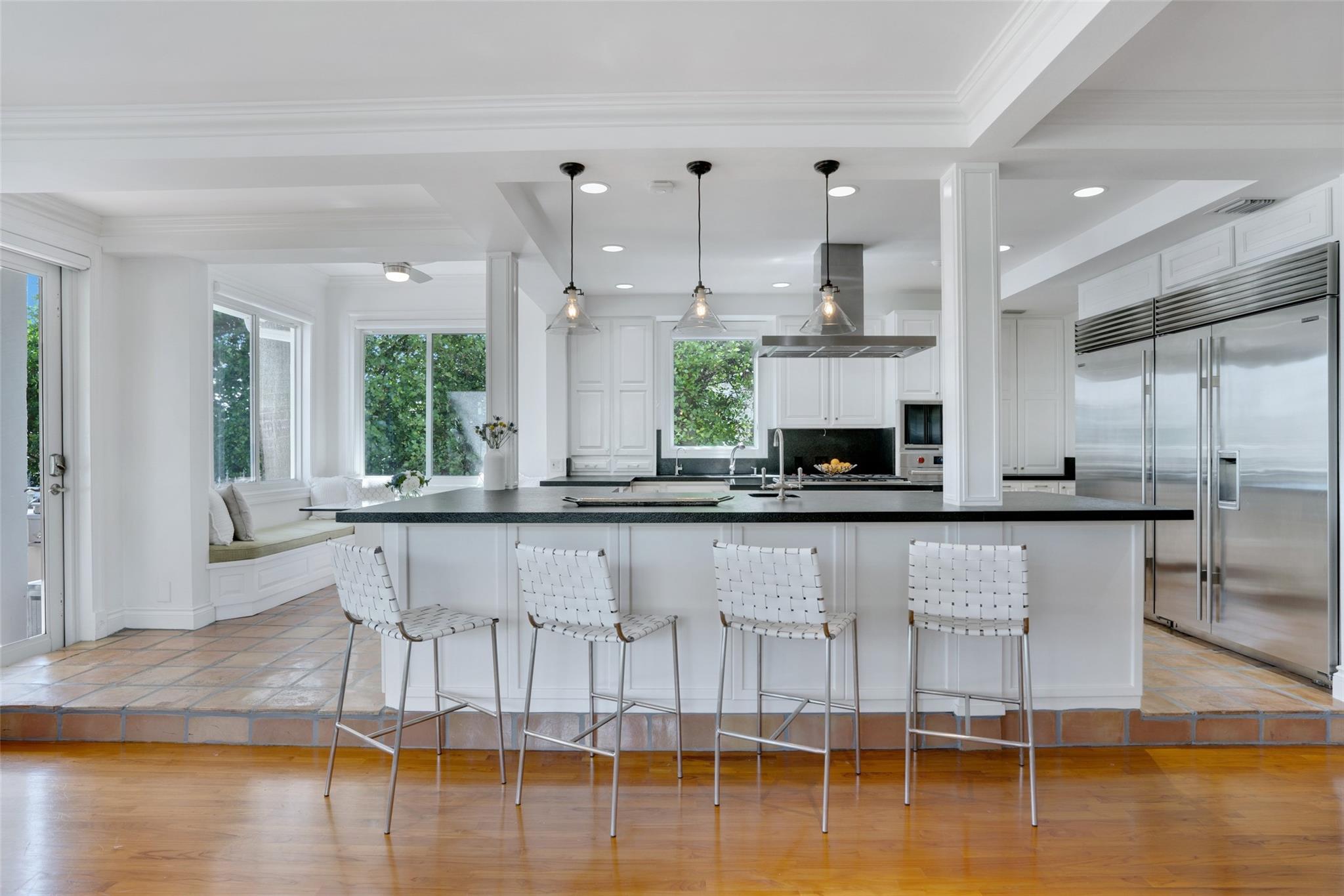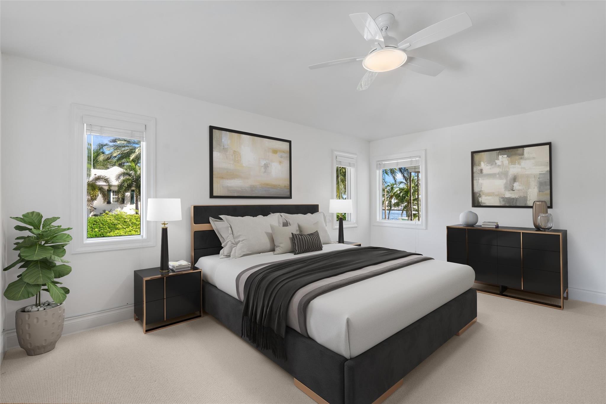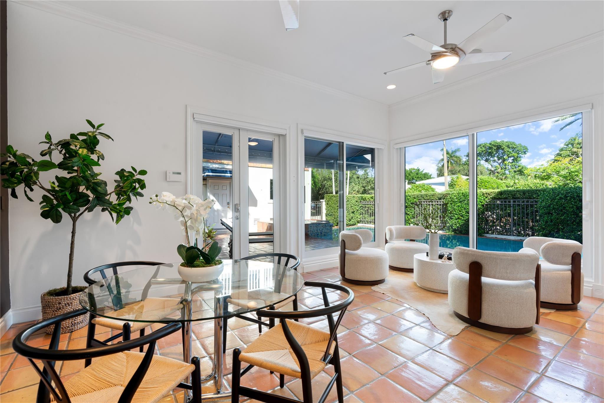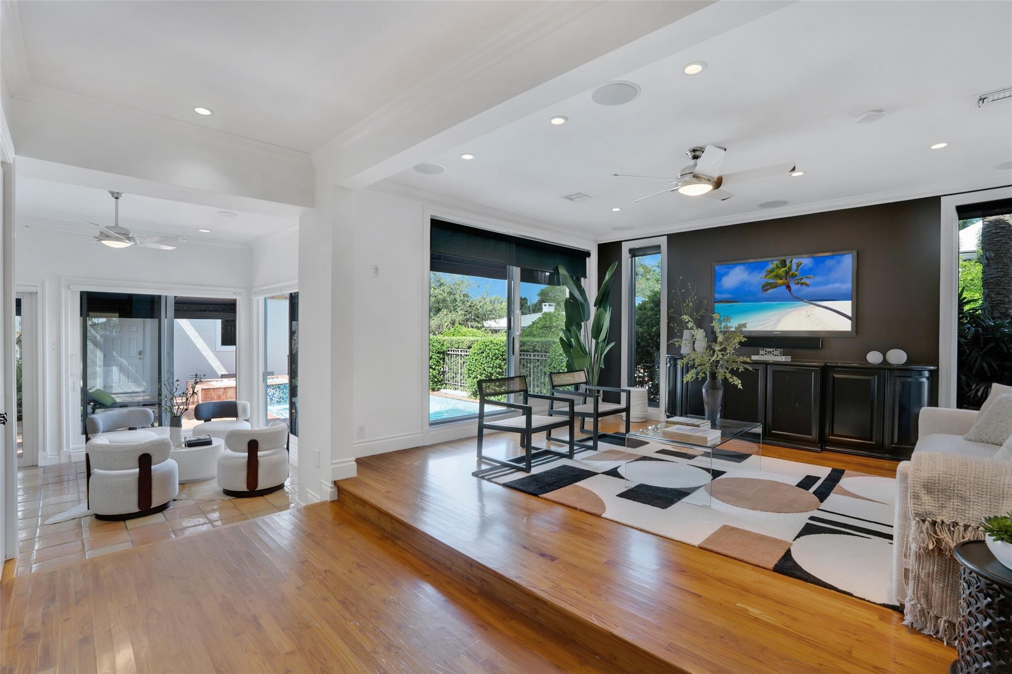 A rare opportunity to live on prestigious Idlewyld Dr. Enjoy unparalleled Intracoastal views and daily endless boat parade from this contemporary 2-story + 3rd floor sky lounge & rooftop deck residence. Boasting high ceilings, open floor plan seamlessly connecting the living room, dining room, breakfast nook & gourmet kitchen w/oversized island & top-of-the-line appliances. Additional: media room, bar area, office & sunroom. The primary features walk-in closets, spa-like bathroom. Outdoor: waterfront patio w/summer kitchen, heated pool & spa. New deep-water dock built to the latest regulations, in a NO-WAKE ZONE, with easy ocean access & no fixed bridges. Generator, A/C 4-car garage. Detached 2bds/2baths Guest House w/kitchen & living room. Secure Location. Steps away from dining & beaches