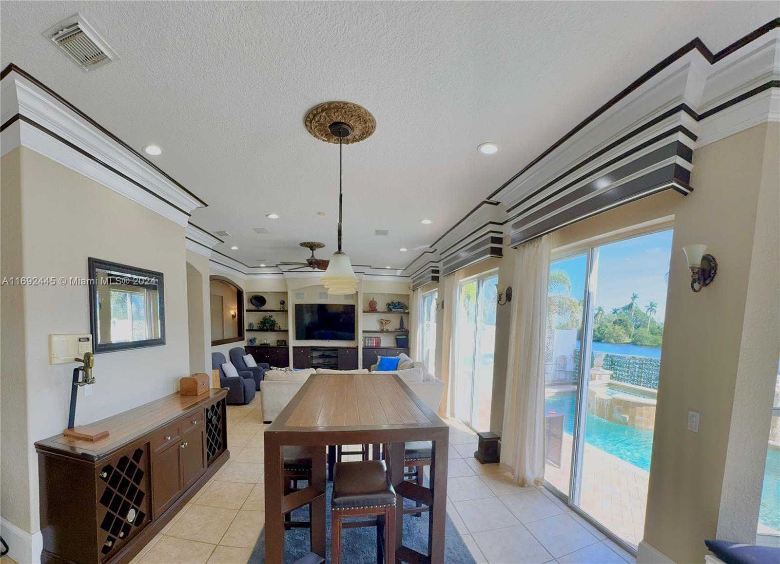 Sought-after Mapleridge community w/ stunning 4B, + in-law suite/3B residence in Fort Lauderdale. Easily convertible loft office upstairs designed by developer for +1 Bedroom. Spanning nearly 3000 sq ft, this home boasts the largest floorplan on the lake w/ breathtaking views, making it a standout gem. Spacious Master w/ serene reading room, offering a personal retreat within the home. A well-appointed in-law suite provides a private exit, ideal for multi-generational living or guest accommodations. Enjoy outdoor living at its finest w/sparkling pool, hot spa, and a tranquil coy pond, perfectly set against a picturesque lake backdrop. Includes 2-car garage and 3-car driveway, ensuring ample parking. Inside, elegant finishes and spacious rooms create a versatile space.