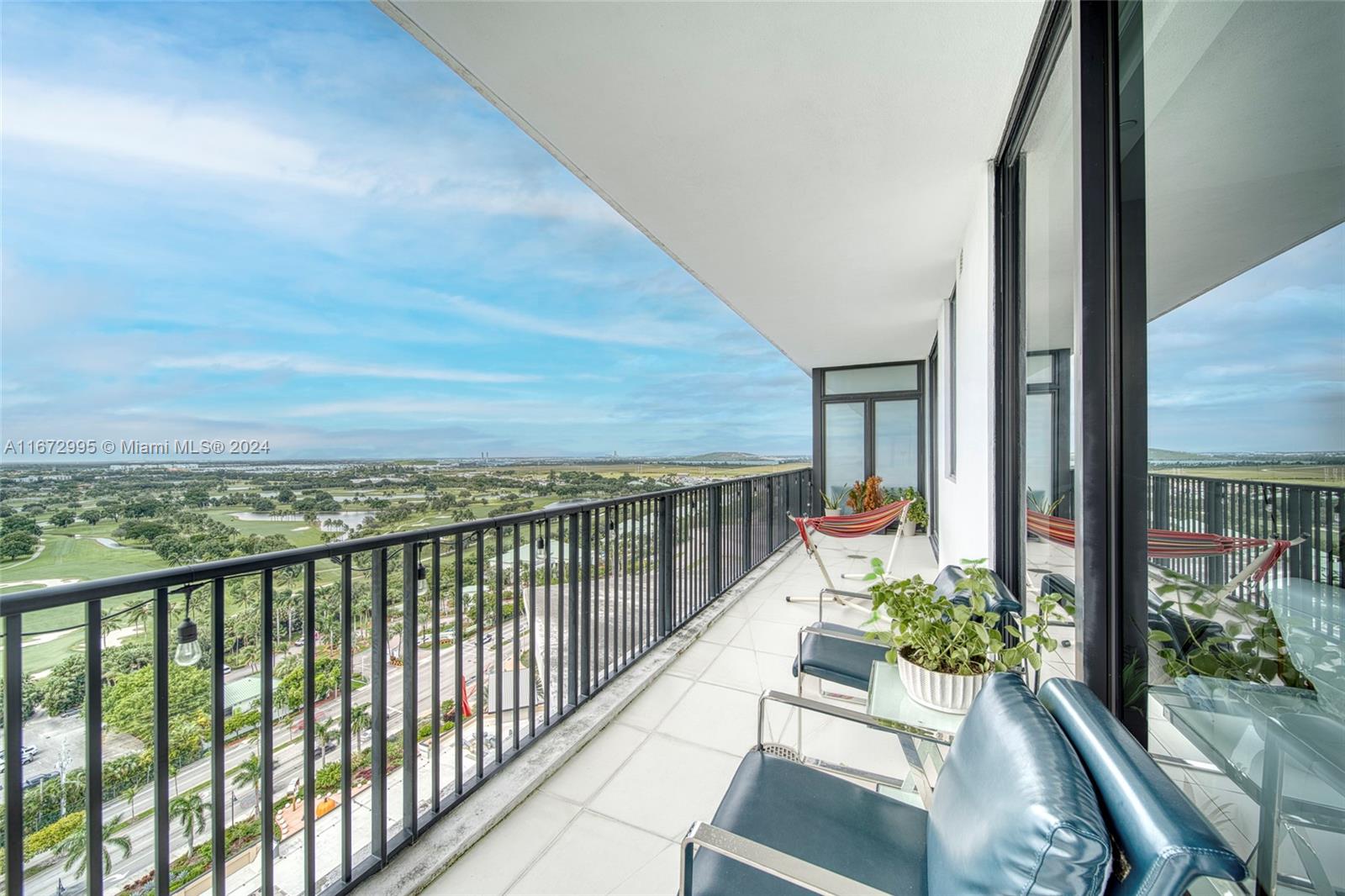 Magnificent Penthouse in Downtown Doral with uninterrupted Golf Course views and endless Sunset Views. This 2-bedroom + large den, 2 bathroom unit boasts floor-to-ceiling windows, a spacious balcony, and high-end finishes. Enjoy top-tier amenities like a gym, pool, and business center, all within walking distance to dining and retail. Maintenance includes water, cable, internet. Two parking spaces and large storage included.