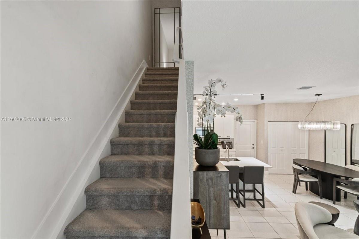 Stunning 3-Bedroom Townhouse in Doral's Vibrant Community! This beautiful 2-story townhome in offers 1,424 sqft of spacious living, featuring 3 bedrooms and 2.5 baths. The luxurious master suite includes an open balcony, carpeted flooring, and oversized windows that fill the room with natural light. The chef's kitchen boasts stainless steel appliances, elegant wooden cabinetry, an eat-in counter, and quartz countertops. Washer and Dryer inside the unit and an attached 2-car garage. The amazing Clubhouse is convieniently close to the property and provides incredible amenities for the entire family, including a fitness center, running track, indoor basketball court, and a pool with a sundeck and splash area for kids. Experience luxury living in the heart of Downtown Doral.