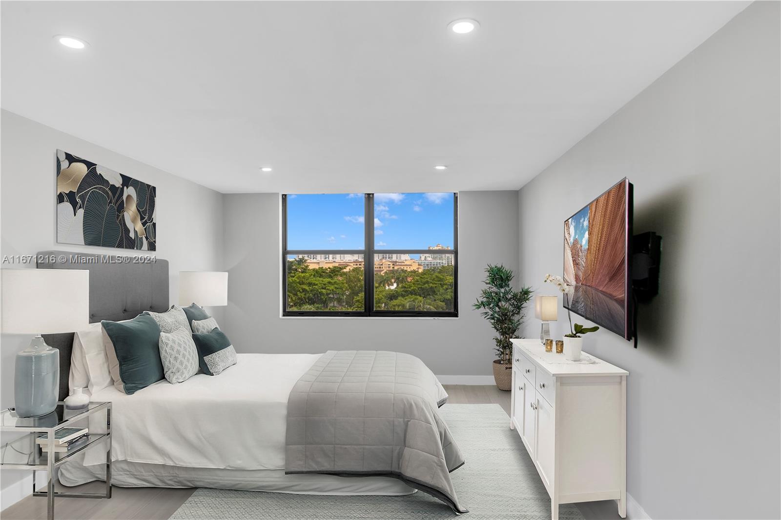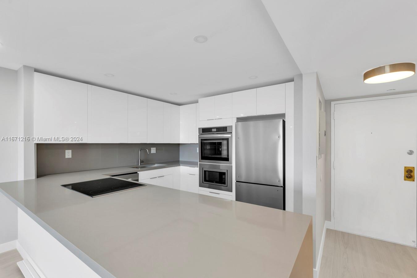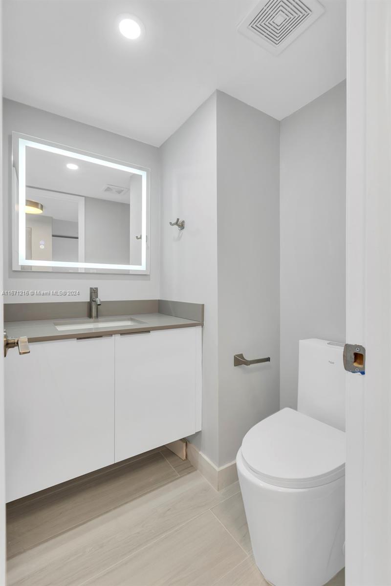 Total remodeled unit, new kitchen, new bathrooms, new lighting, new floors, amazing views of the bay and the swimming pool with open kitchen. Plenty of closet spaces. Building centrally located in Aventura with amazing water views.