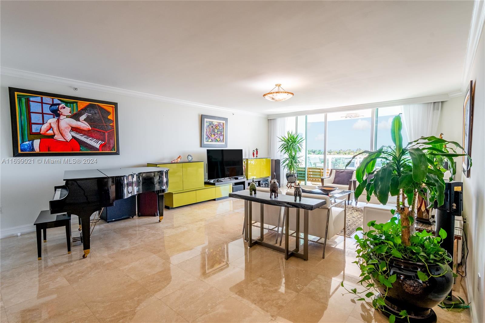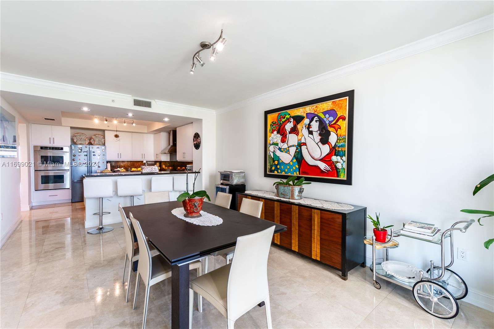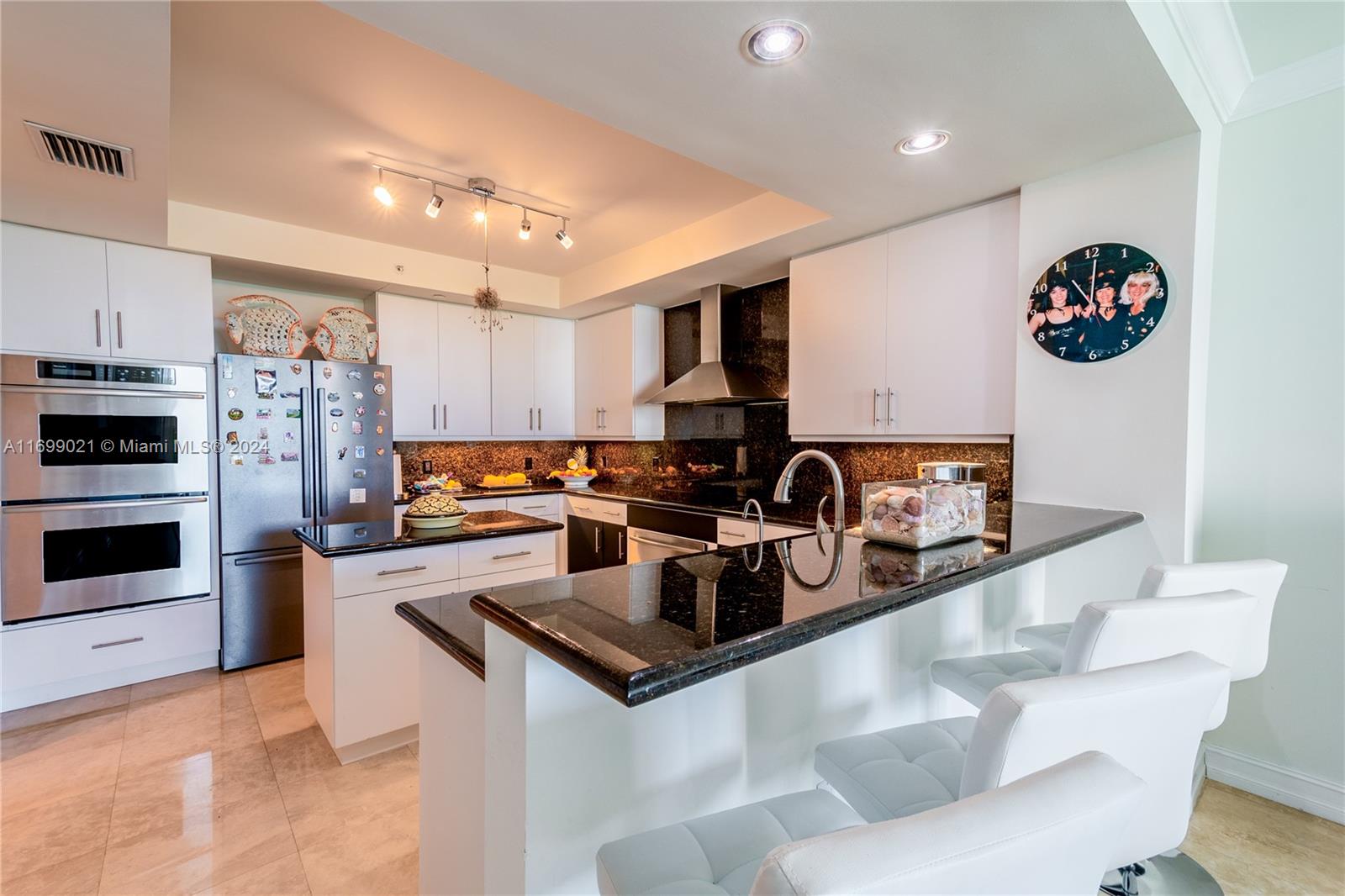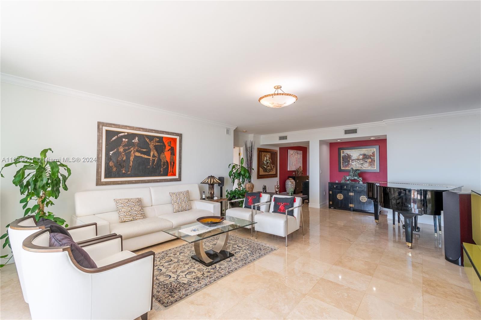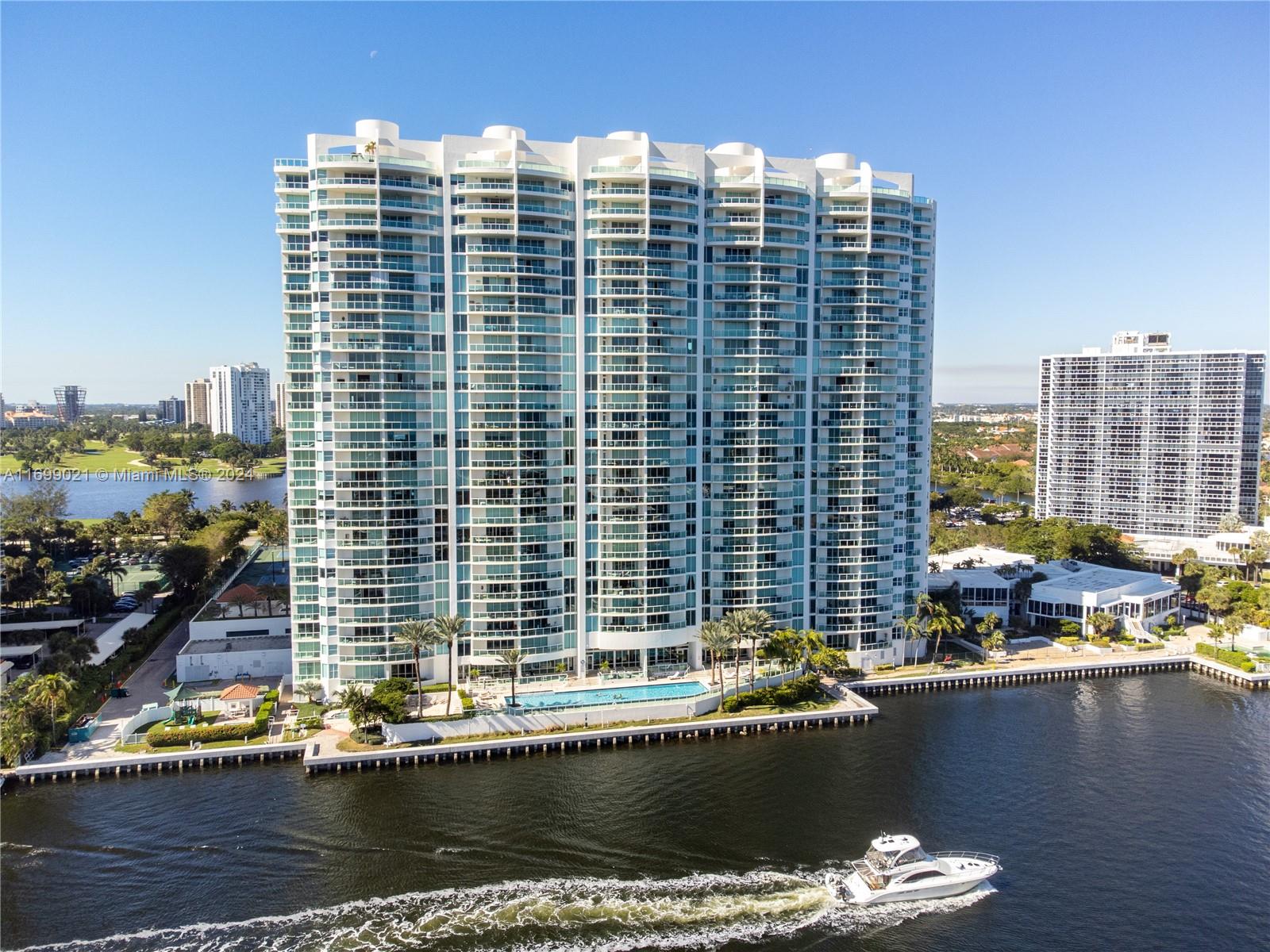 Take your private elevator up to this very refined and spacious 2,973 sf condo where you will be greeted by breathtaking views of the Intracoastal Waterway, the Atlantic Ocean, and the majestic Turnberry Golf Course! This 2 suites + a spacious Den condo is located in the heart of Aventura and boasts a flow-through floor plan with east to west views, marble floors and a recently renovated designer kitchen with NEW APPLIANCES and a jacuzzi master bathroom including a NEW AIR CONDITIONER UNIT +ELECTRICT BLINDS. You will enjoy relaxing on your large terrace watching the boats sail by, or on your second terrace overlooking the sparkling lakes and golf course. Amenities include 2 pools, tennis courts, restaurant, valet, 2 fitness centers, theater, playground. Easy to show.