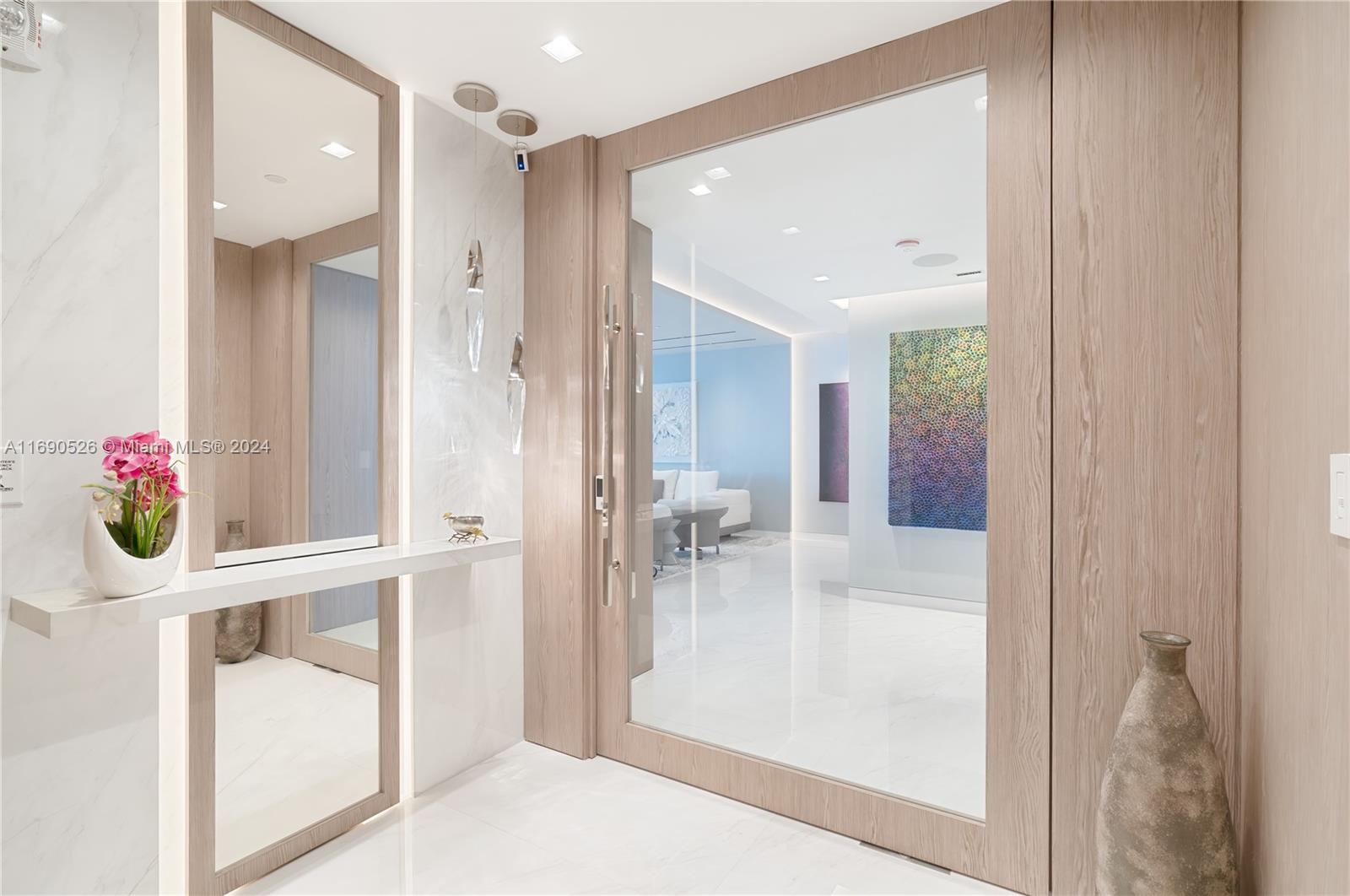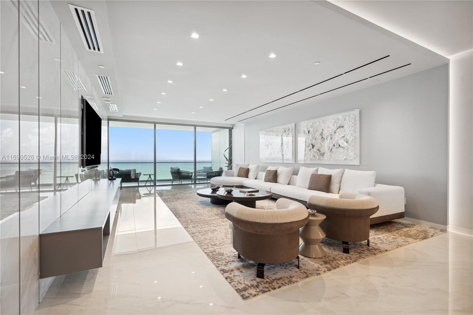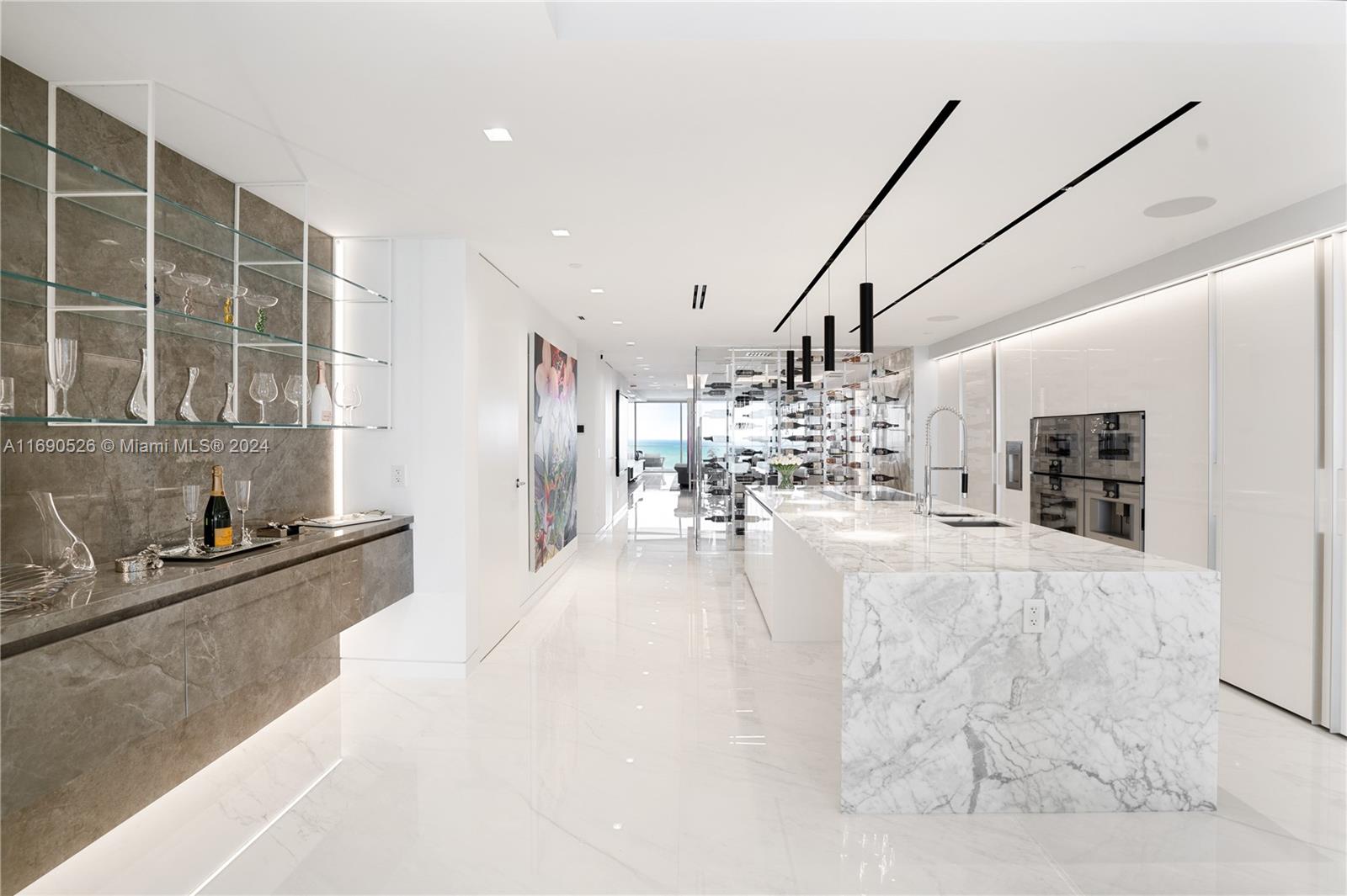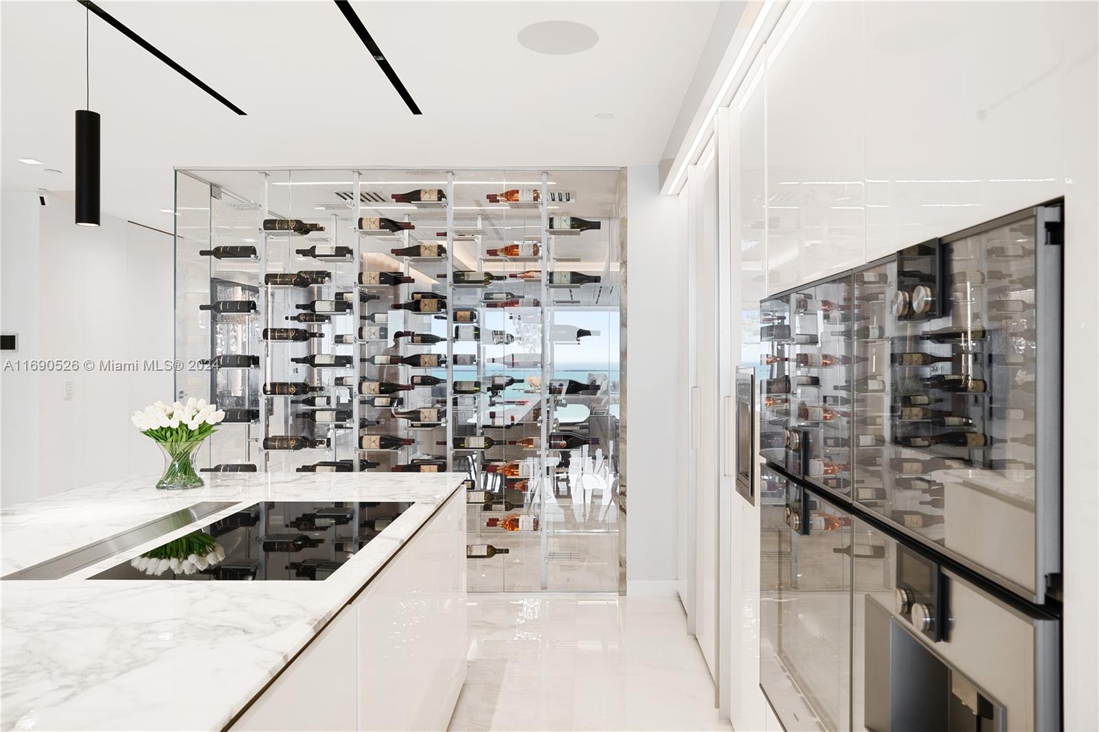 Experience unparalleled luxury at Oceana Bal Harbour 2403. Meticulously remodeled 3-bed, 3.5-bath condo, spanning 4300 sqft designed to maximize space and breathtaking views. Featuring an oceanfront master suite with a spa-like bath, dressing area, a junior master with scenic bay and city views, and soundproofing throughout for ultimate privacy. Kitchen dazzles with marble countertops, a custom bar, temperature-controlled 500-bottle wine cellar. Reconfigured HVAC, plumbing & electrical systems. Schonbek crystal chandeliers, WAC trim-less lighting, custom imported solid wood doors & stone paneling, grand entrance with custom pivot door. Seamless indoor-outdoor living with Porcelanosa floors extending to balconies. Control 4 home automation for lighting, sound, cameras & motorized blinds.