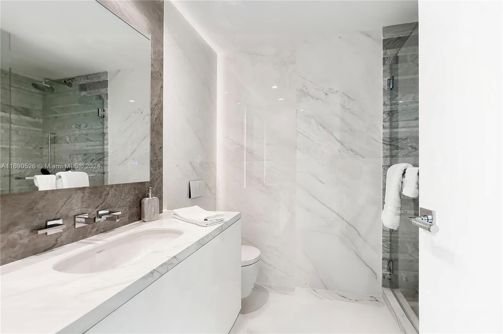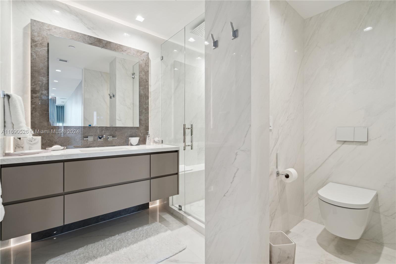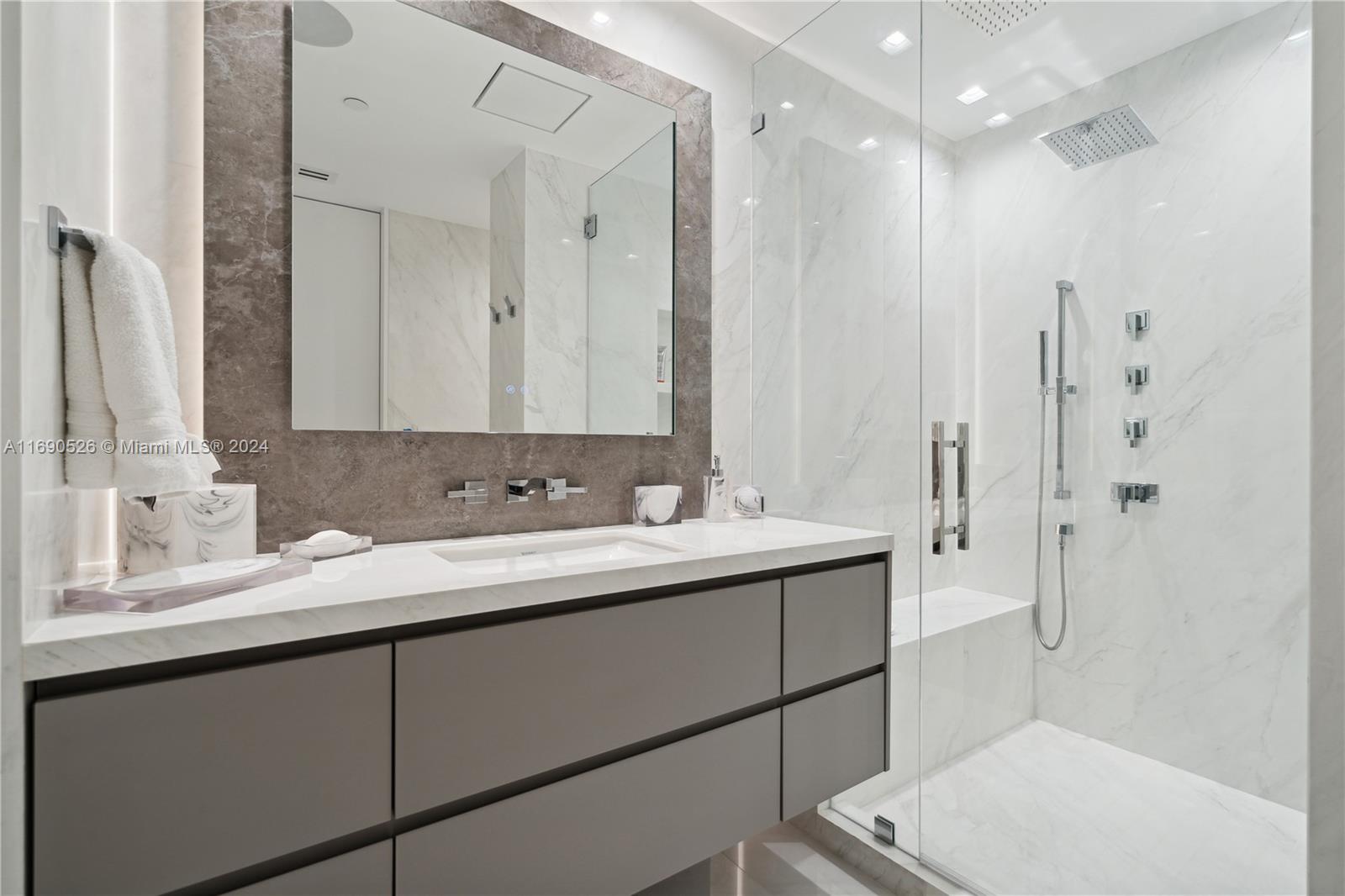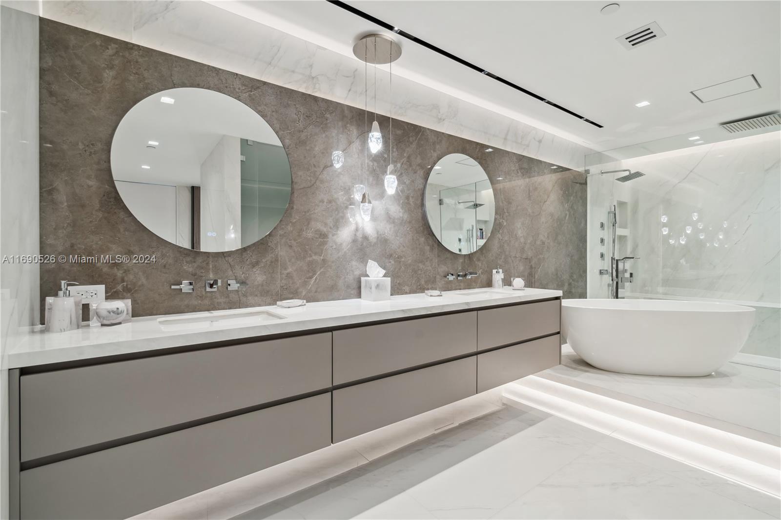 Experience unparalleled luxury at Oceana Bal Harbour 2403. Meticulously remodeled 3-bed, 3.5-bath condo, spanning 4300 sqft designed to maximize space and breathtaking views. Featuring an oceanfront master suite with a spa-like bath, dressing area, a junior master with scenic bay and city views, and soundproofing throughout for ultimate privacy. Kitchen dazzles with marble countertops, a custom bar, temperature-controlled 500-bottle wine cellar. Reconfigured HVAC, plumbing & electrical systems. Schonbek crystal chandeliers, WAC trim-less lighting, custom imported solid wood doors & stone paneling, grand entrance with custom pivot door. Seamless indoor-outdoor living with Porcelanosa floors extending to balconies. Control 4 home automation for lighting, sound, cameras & motorized blinds.