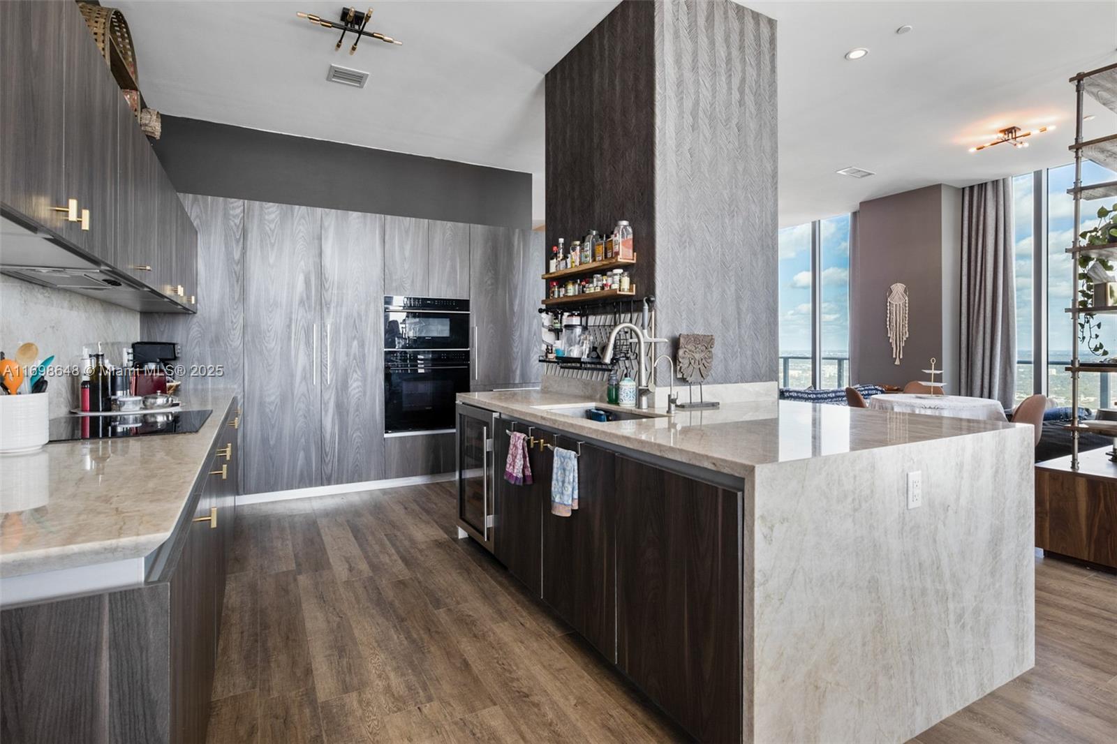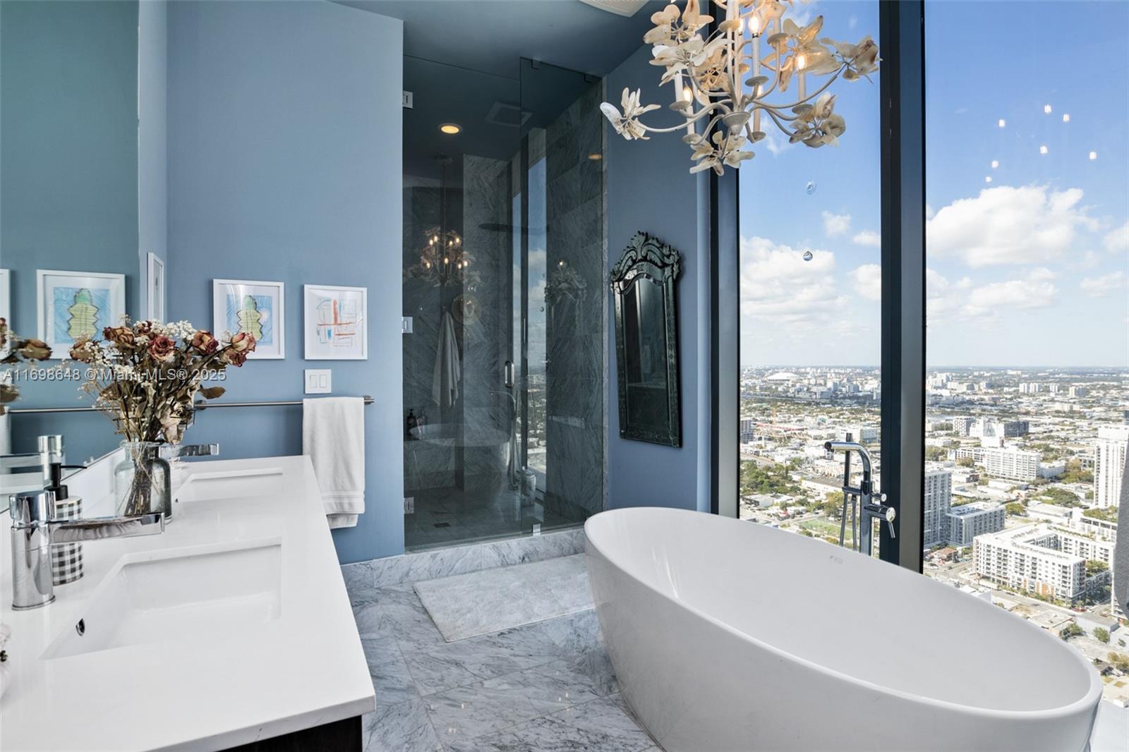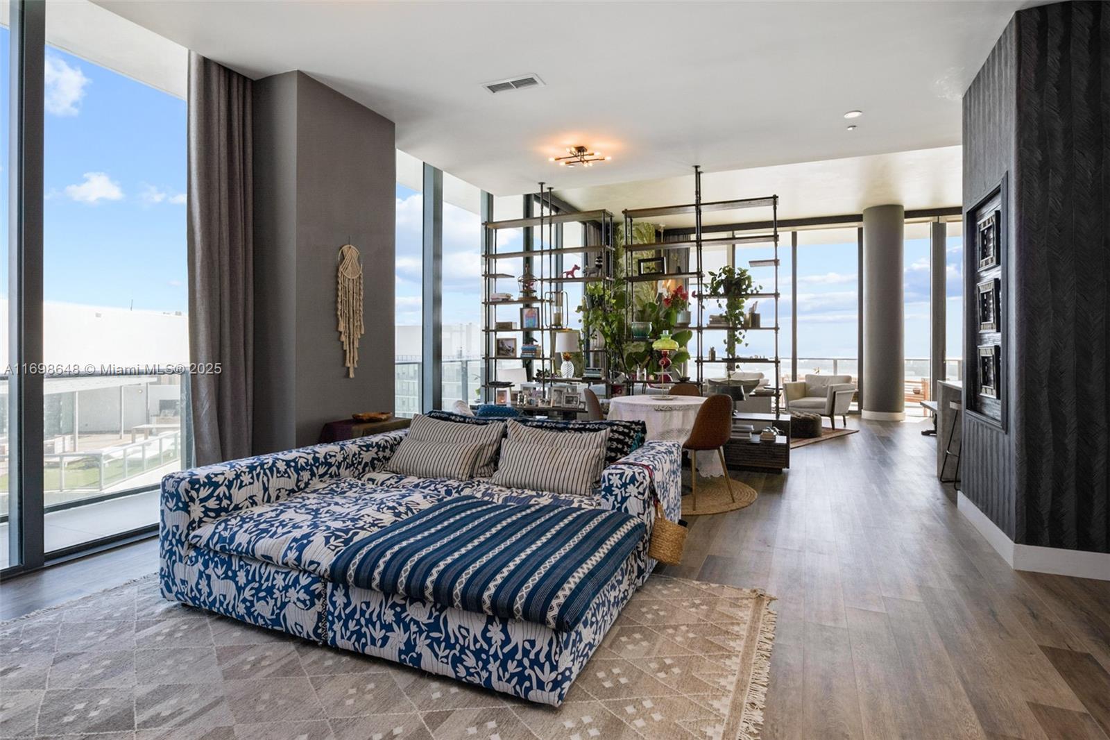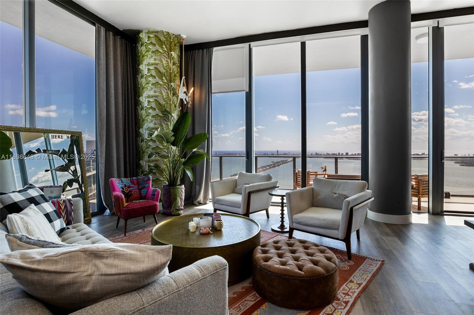 The ultimate sophisticated, eclectic, artsy and unique corner Penthouse in Edgewater. Soaring 12” ceilings, 951 sf of terrace along with a beautiful jacuzzi to relax at the end of the day enjoying endless views of Miami, Miami Beach and the Atlantic Ocean. This 4 bedrooms and 4.5 bathrooms residence is finished with a high-end Italian kitchen and bathrooms, a Subzero refrigerator, wolf appliances and 2 parking spaces assigned. Gran Paraiso designed by Piero Lissoni offers unparalleled amenities that include a 100 ft.diameter pool, 2 tennis courts, virtual reality golf, bowling alley, game room, Hammam Spa, movie theather, party room, cigar lounge, kids pool, bbq are and much more. Tenant occupied with a 45 day kick out clause. Easy to show.