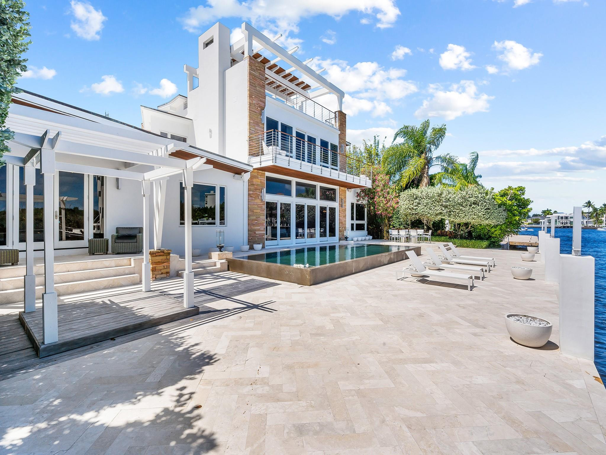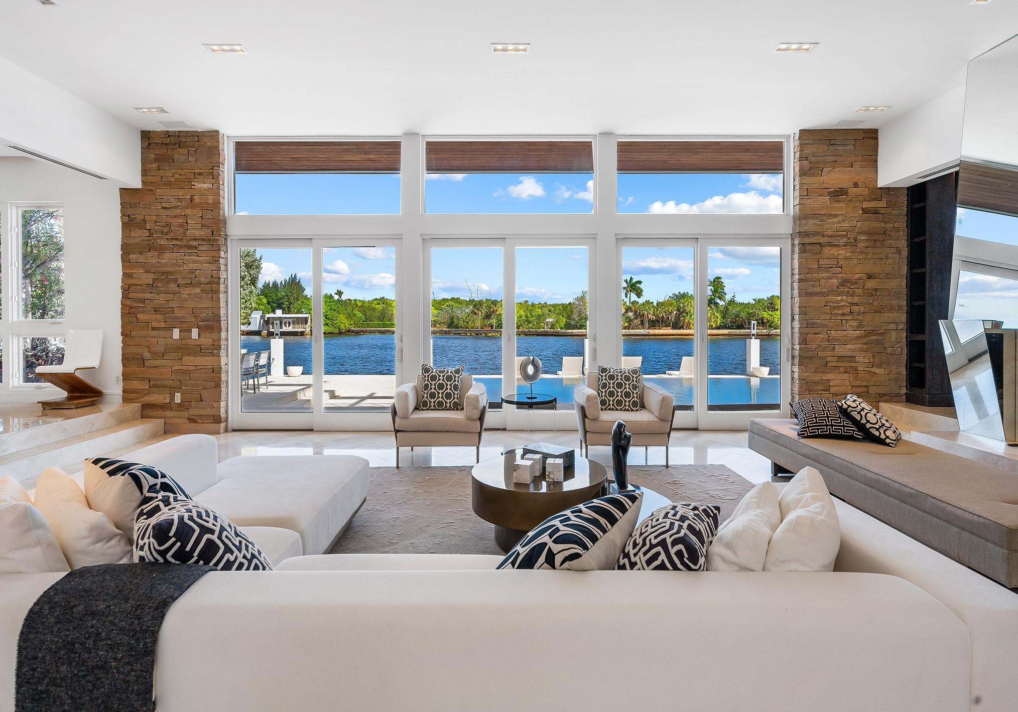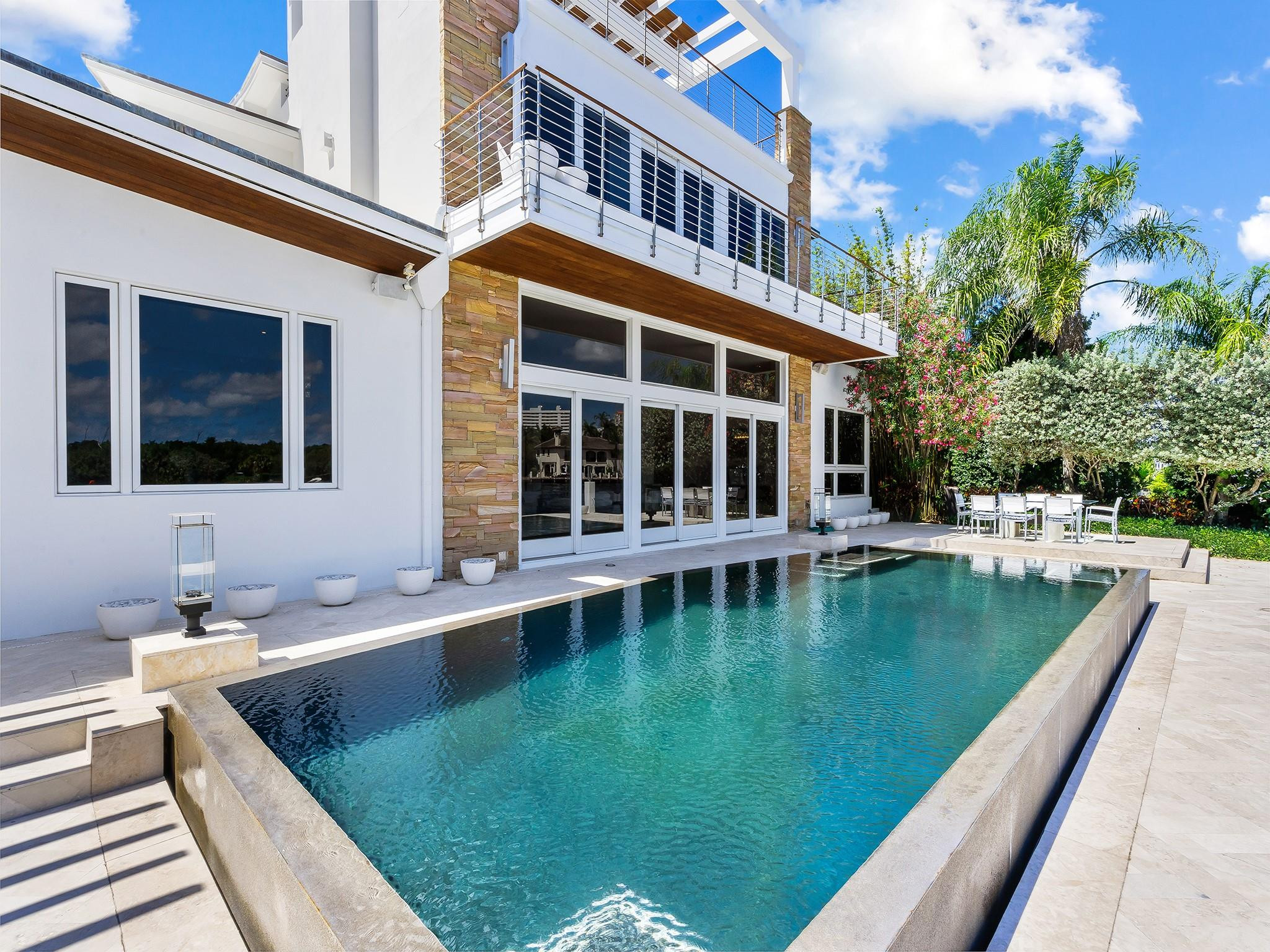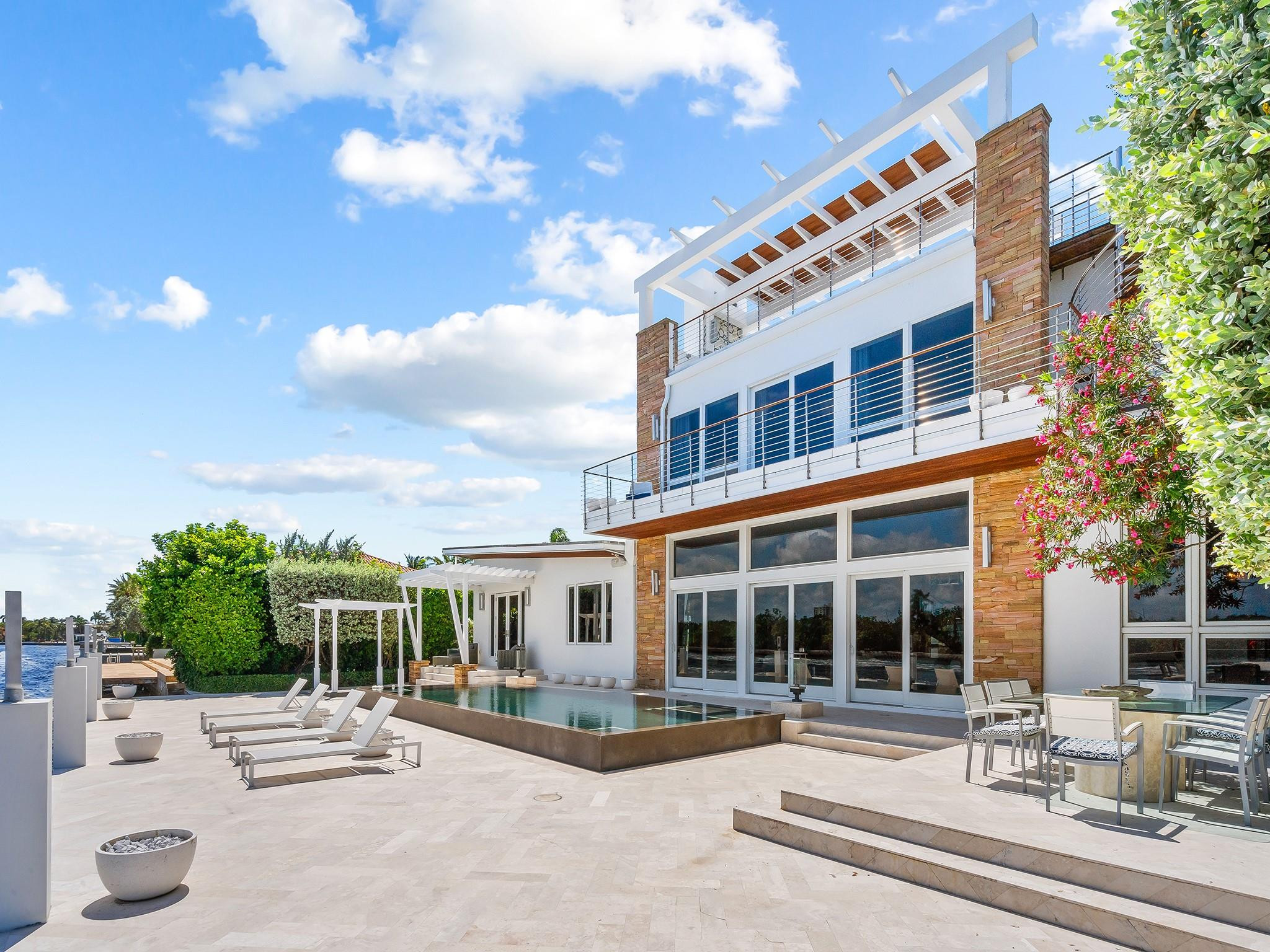Luxury redefined in this contemporary waterfront estate, situated on 100 feet along the Intracoastal waterway. Every element has been curated to deliver an elevated modern lifestyle with open concept living spaces that harmoniously blend multiple entertaining areas. The luminous floor plan is enhanced by soaring ceilings, walls of glass & multiple doorways bridging indoor & outdoor living spaces. Panoramic wide waterway views from the oversized pool & patio area, multiple balconies & the roof top terrace. The culinary kitchen offers tremendous storage, a large center island, gas cooktop & upgraded appliances. Relish in the oversized primary suite with breathtaking sunrises over the Intracoastal, 2 walk-in closets & a spa inspired bathroom. Feature list available. Sq. Ft. from Appraiser.