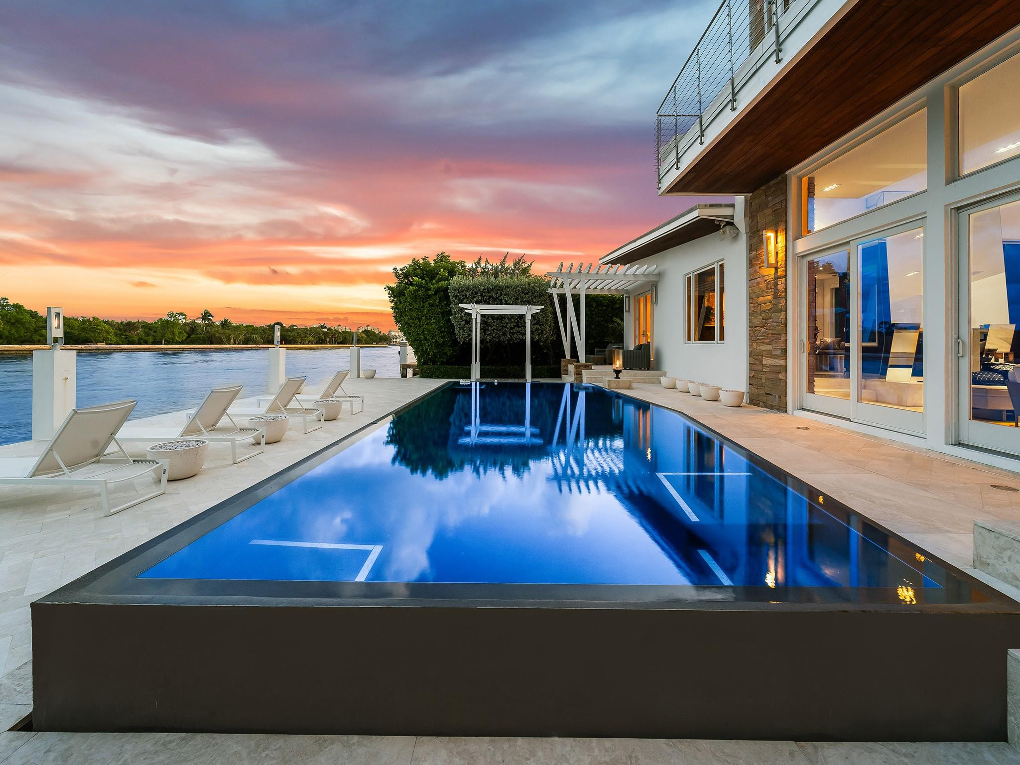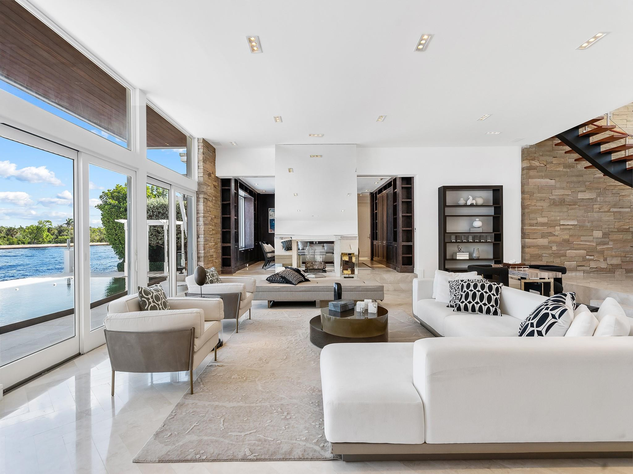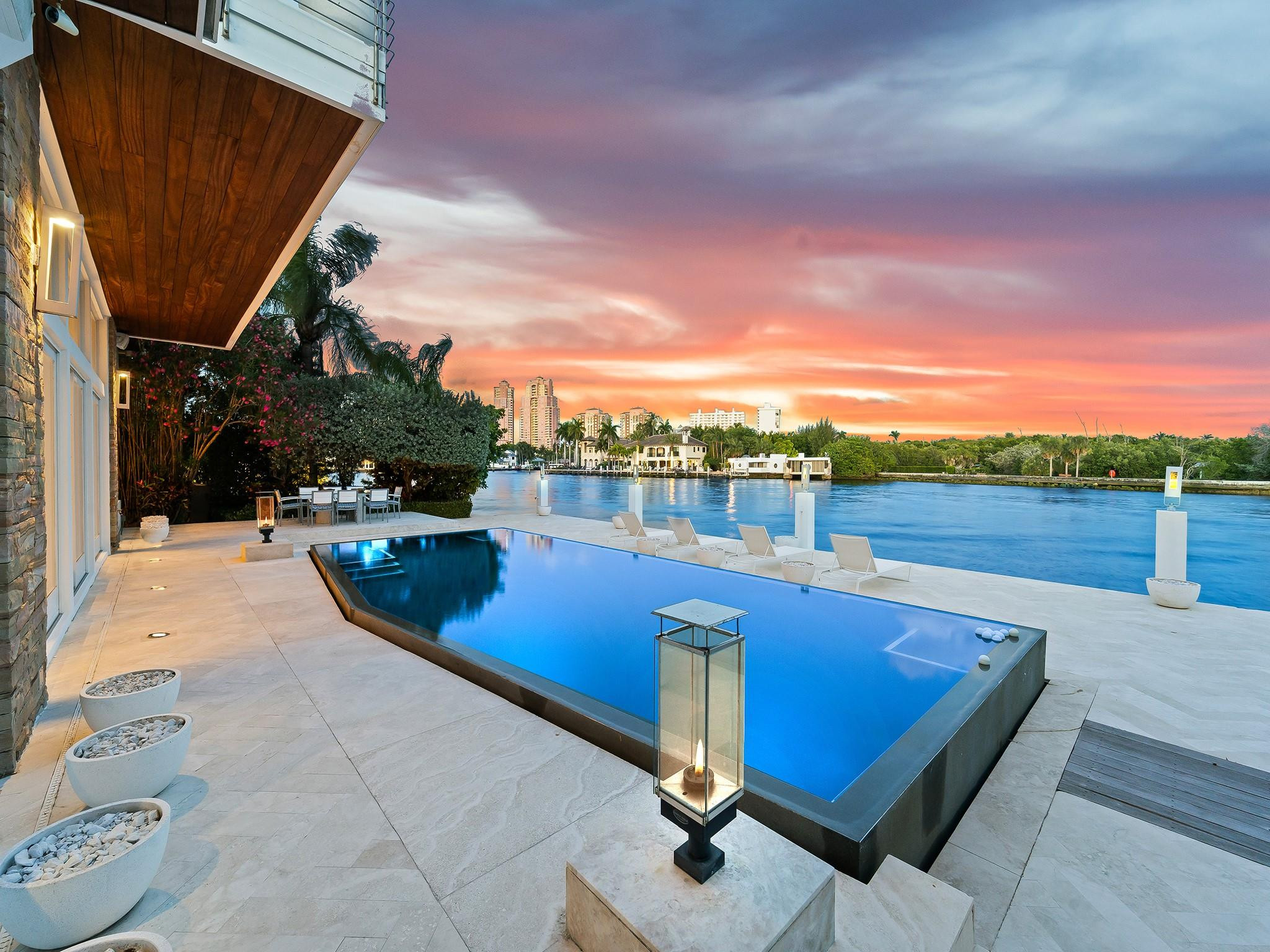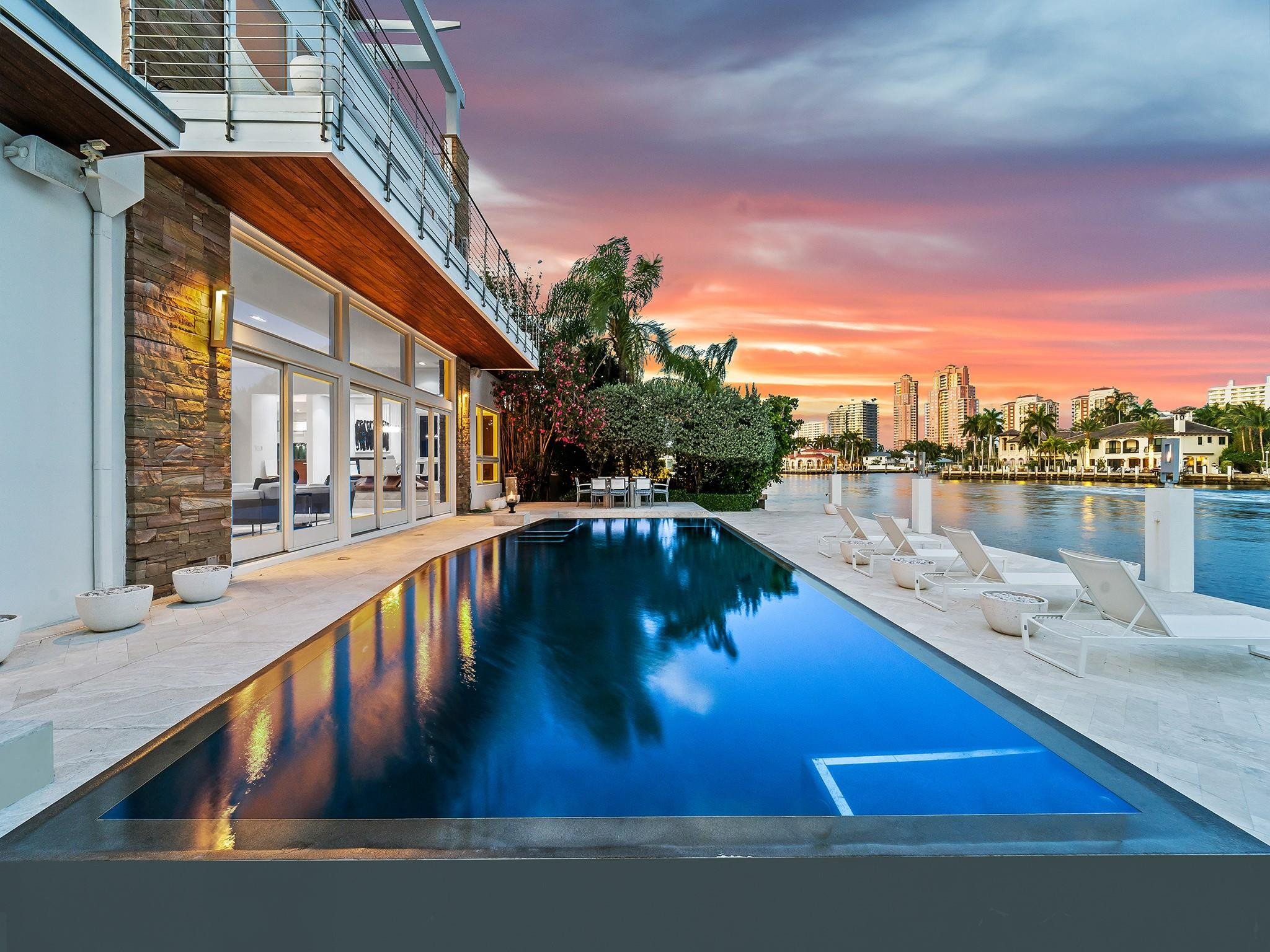 Luxury redefined in this contemporary waterfront estate, situated on 100 feet along the Intracoastal waterway. Every element has been curated to deliver an elevated modern lifestyle with open concept living spaces that harmoniously blend multiple entertaining areas. The luminous floor plan is enhanced by soaring ceilings, walls of glass & multiple doorways bridging indoor & outdoor living spaces. Panoramic wide waterway views from the oversized pool & patio area, multiple balconies & the roof top terrace. The culinary kitchen offers tremendous storage, a large center island, gas cooktop & upgraded appliances. Relish in the oversized primary suite with breathtaking sunrises over the Intracoastal, 2 walk-in closets & a spa inspired bathroom. Feature list available. Sq. Ft. from Appraiser.