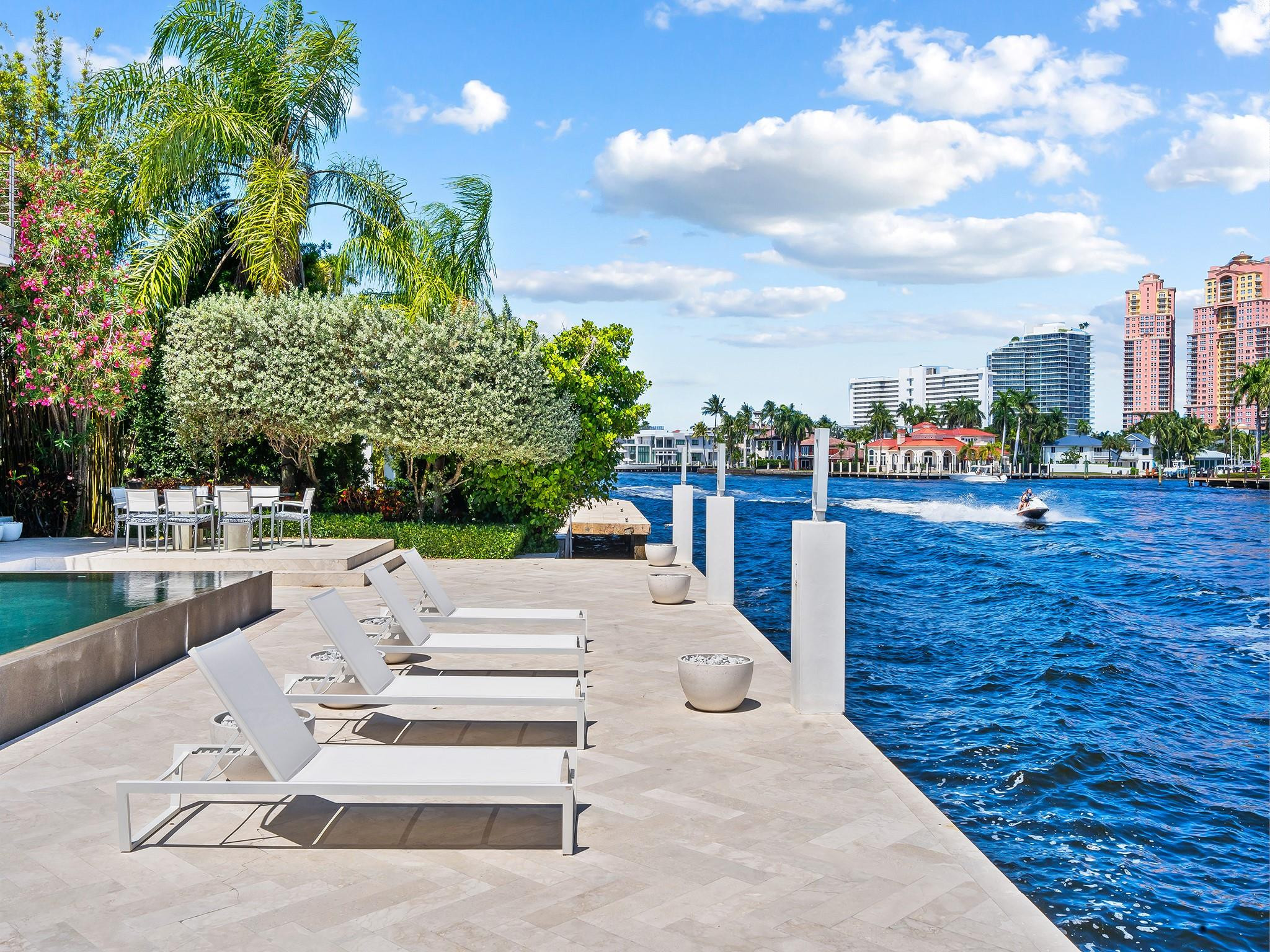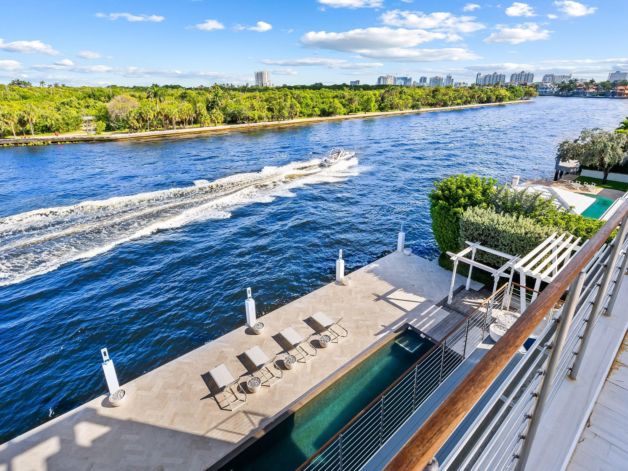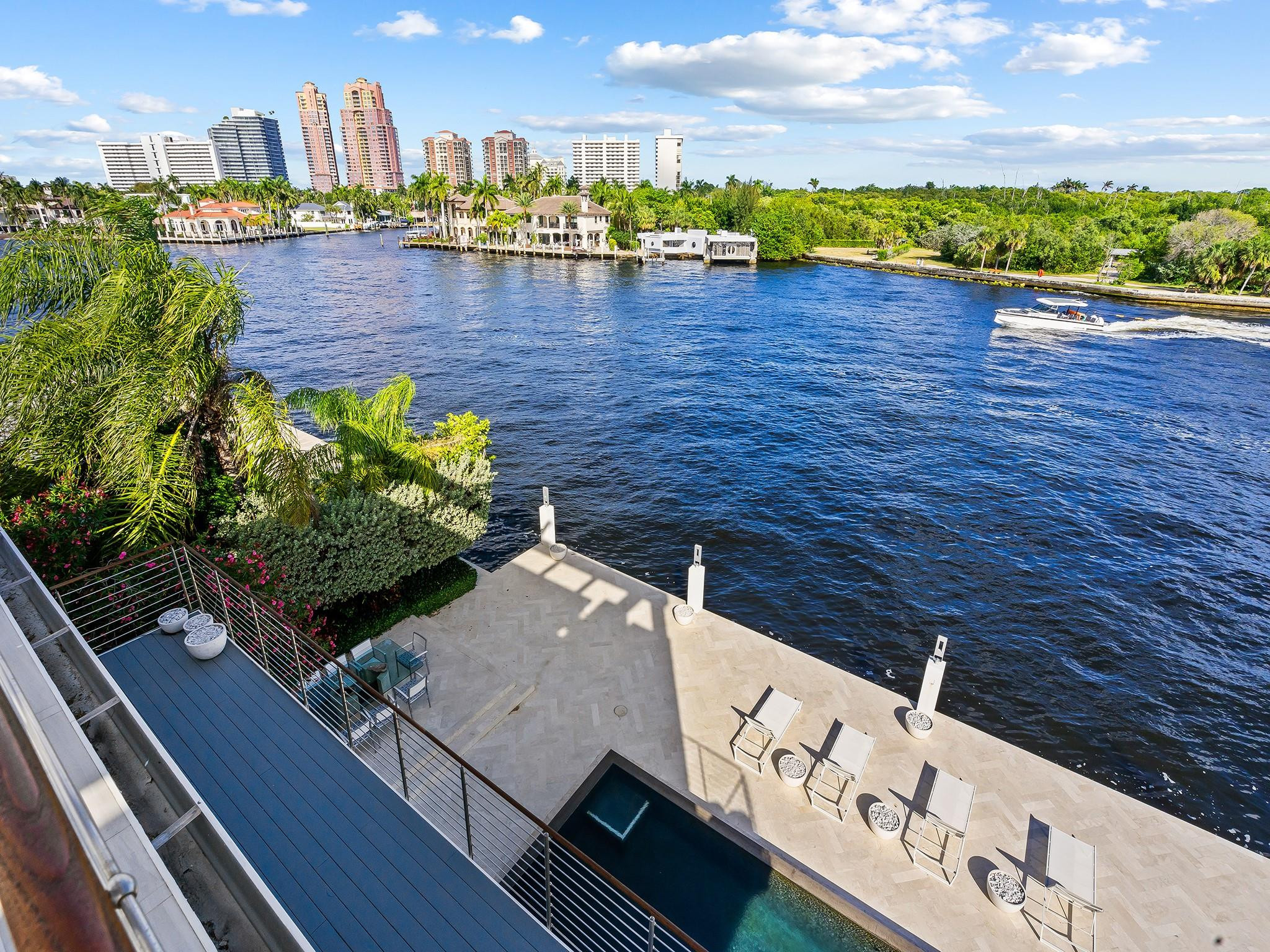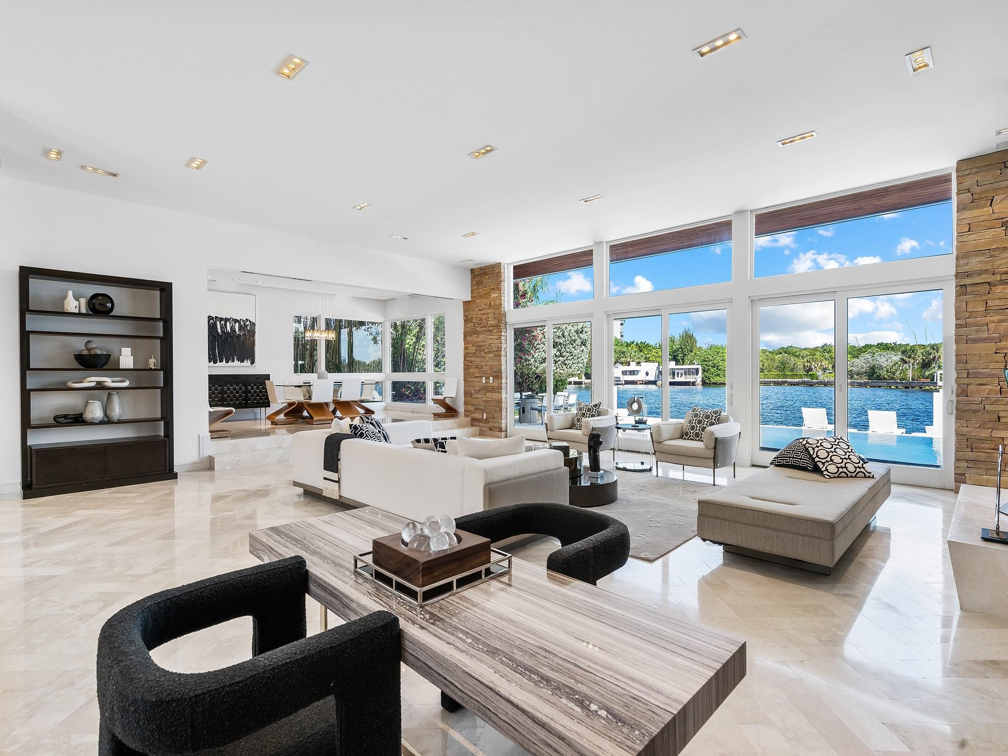 Luxury redefined in this contemporary waterfront estate, situated on 100 feet along the Intracoastal waterway. Every element has been curated to deliver an elevated modern lifestyle with open concept living spaces that harmoniously blend multiple entertaining areas. The luminous floor plan is enhanced by soaring ceilings, walls of glass & multiple doorways bridging indoor & outdoor living spaces. Panoramic wide waterway views from the oversized pool & patio area, multiple balconies & the roof top terrace. The culinary kitchen offers tremendous storage, a large center island, gas cooktop & upgraded appliances. Relish in the oversized primary suite with breathtaking sunrises over the Intracoastal, 2 walk-in closets & a spa inspired bathroom. Feature list available. Sq. Ft. from Appraiser.