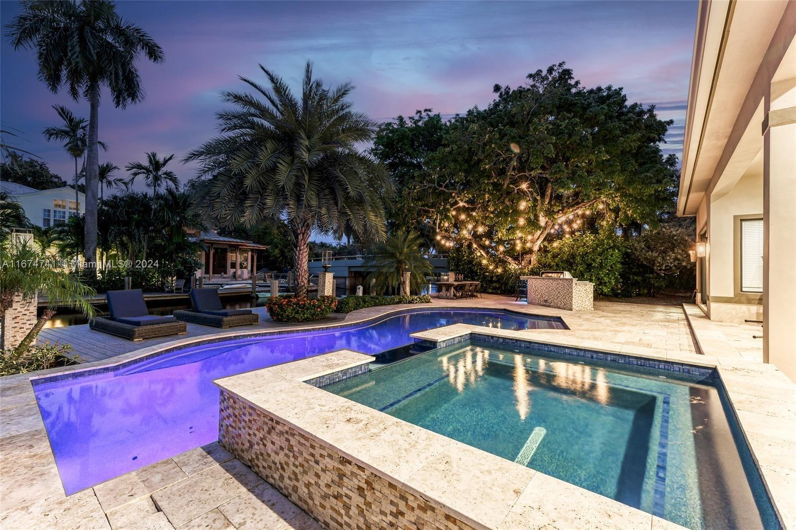 Welcome to this exquisite 2022-built waterfront retreat in the heart of Fort Lauderdale, offering the perfect blend of luxury and modern design. This 3-bedroom, 3-bath home features a spacious open-concept layout, filled with natural light and high-end finishes throughout. The state-of-the-art kitchen is a chef’s dream, equipped with premium appliances, a gas stove, and a large island ideal for entertaining. Step outside to your private paradise, complete with a summer kitchen, perfect for hosting gatherings year-round. Enjoy the heated pool and jacuzzi, set against the backdrop of serene water views. Boating enthusiasts will appreciate the 75 ft. of waterfront frontage and a private dock, providing easy access to the ocean. Two-car garage offers ample storage.