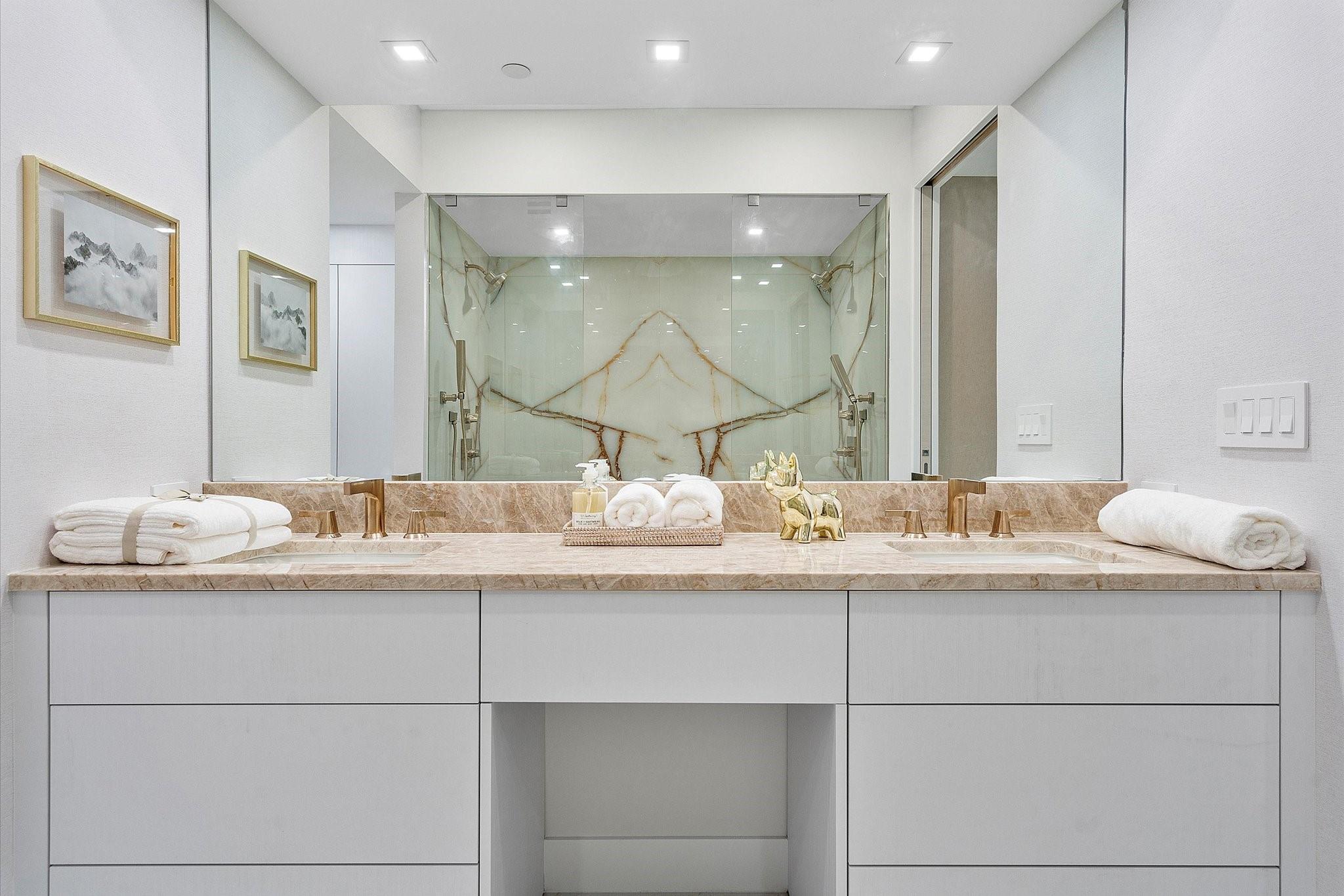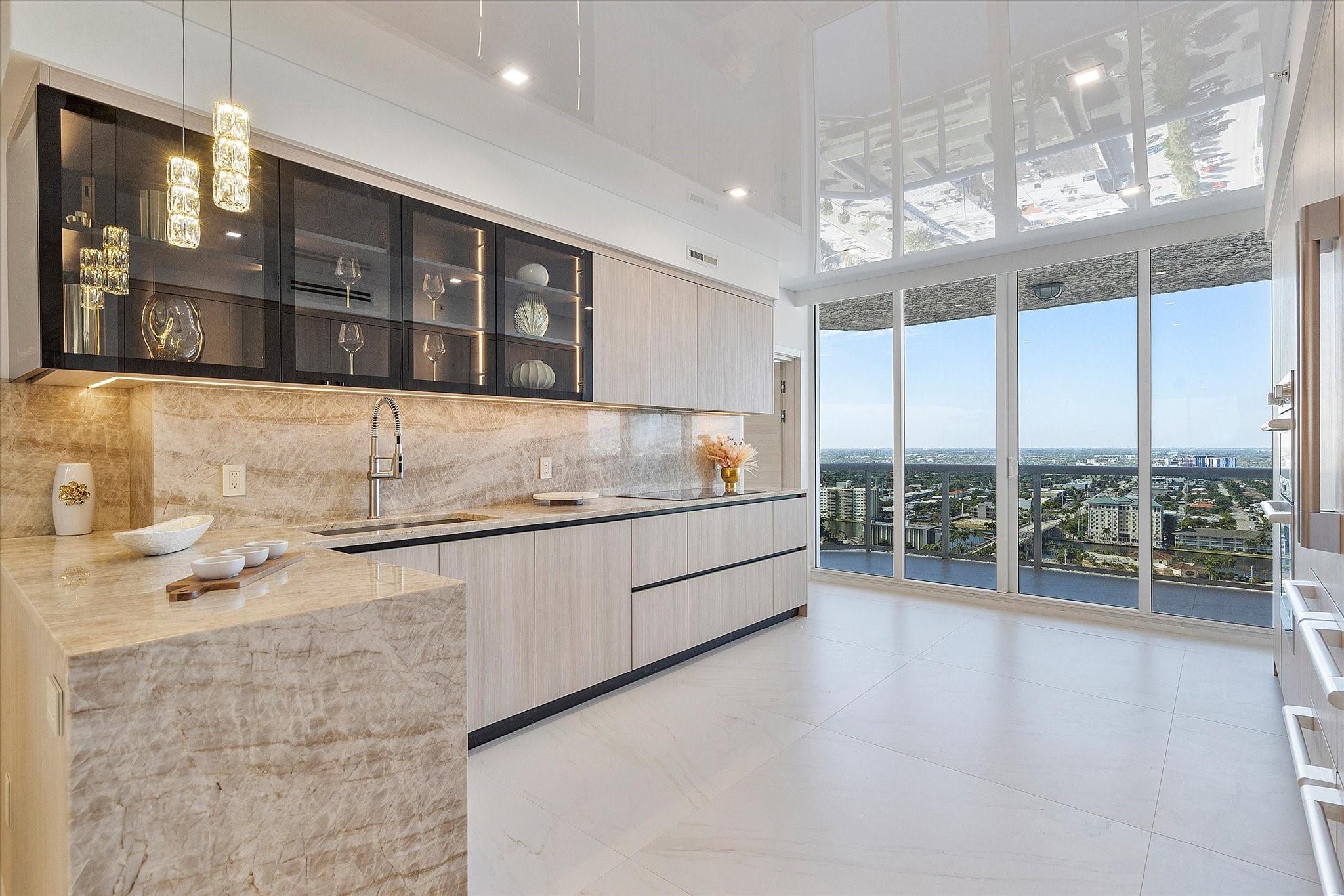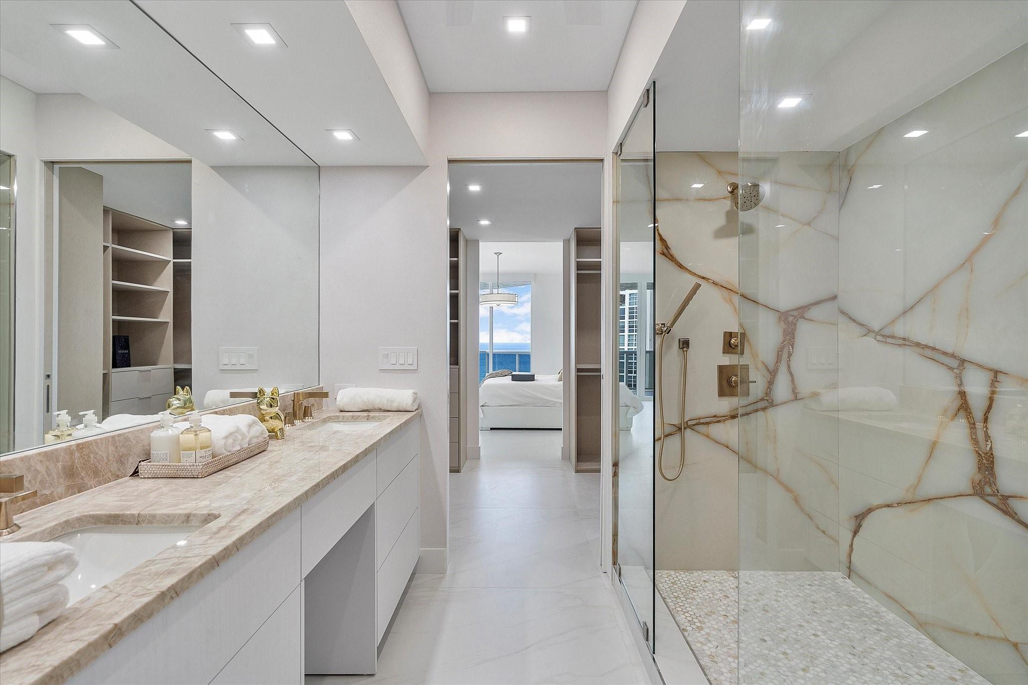 High Floor BRAND NEW Direct Ocean Fully Furnished Custom 3 Bedroom /3.5 Bath Home with ItalKraft cabinetry throughout: Open Flow Through with stretch ceilings. Custom Kitchen with Taj Mahal Slab countertops, 48" inch fridge w/4 freezer drawers, 36" induction range, steam oven, more. 4'x4' porcelain slab flooring inside and out. Primary Suite features large custom closet, New Bathroom featuring porcelain slab walls and custom vanities. 2nd & 3rd Suite features similar features. Extra powder room for guests. 2 balconies for sunrise & sunset, private elevators, glass front doors. L'Hermitage offers over 10 acres of Oceanfront/Beachfront property with tennis, fitness, fenced complex, attended beach, pool deck cafe, spas, saunas, steam rooms, massage rooms, amazing walkability & pet friendly.
