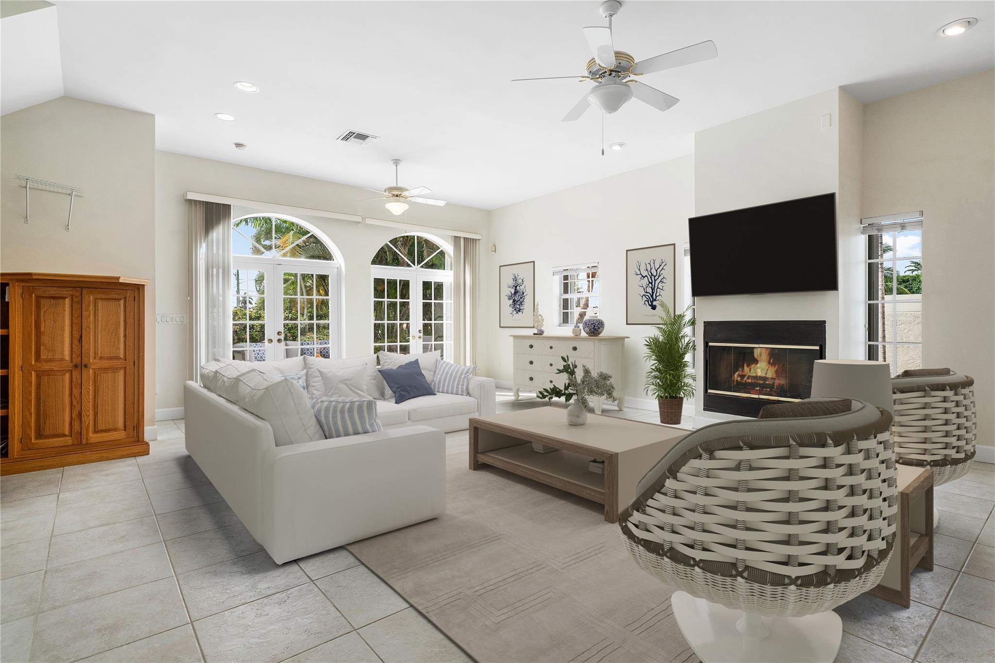 Remarkable Waterfront Home with 80' on the canal with direct access to the Ocean. Largest lot in the area on the water, corner home rebuilt in 2000 (per owners). This spacious home offers an open concept living room, soaring ceilings with Fireplace, two primary bedrooms (one on each level), 2 additional bedrooms, an entertaining kitchen, oversized laundry room. The surrounding yard has a privacy wall on all sides, mature landscaping, a large patio bar and grill with counter seating. Just a few steps away from the patio to the 80' dock with electric and water service. The canal is oversized and can accommodate a wide turning vessel. This peninsula street is accessed by a bridge where you have fast ocean access or the city life in downtown Fort Lauderdale.