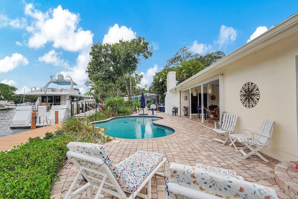 RIVERFRONT HOME - PRICE SLASHED $500,000!! 80' DIRECTLY ON SOUTH FORK OF THE NEW RIVER AFFORDS UP TO 70' OF OCEAN ACCESS, NO FIXED BRIDGES DOCKAGE FOR WIDE BEAM VESSELS. ENJOY THE YEAR ROUND BOAT PARADE FROM THIS COMPLETELY REMODELED 3 BEDROOM, 2 BATH POOL HOME WITH 1 CAR GARAGE. ALL IMPACT DOORS AND WINDOWS & A BRAND NEW ROOF! OPEN KITCHEN WITH WHITE CABINETS, GRAY GRANITE COUNTERTOPS, STAINLESS STEEL APPLIANCES, 2 BREAKFAST BARS, RECESSED LIGHTING & SLIDING GLASS DOORS TO LARGE COVERED PATIO WITH RIVER VIEW! LARGE MASTER BEDROOM & BATH. FAMILY ROOM WITH GAS FIREPLACE. PLANTATION SHUTTERS & PORCELAIN TILE. HEATED SALTWATER POOL ON RIVER FOR RELAXING. COMPLETELY FENCED BACKYARD, 50 AMP SERVICE AT DOCK. OWNER FINANCING CONSIDERED. MINUTES TO DOWNTOWN/LAS OLAS, BEACHES, AIRPORT, EXPRESSWAYS